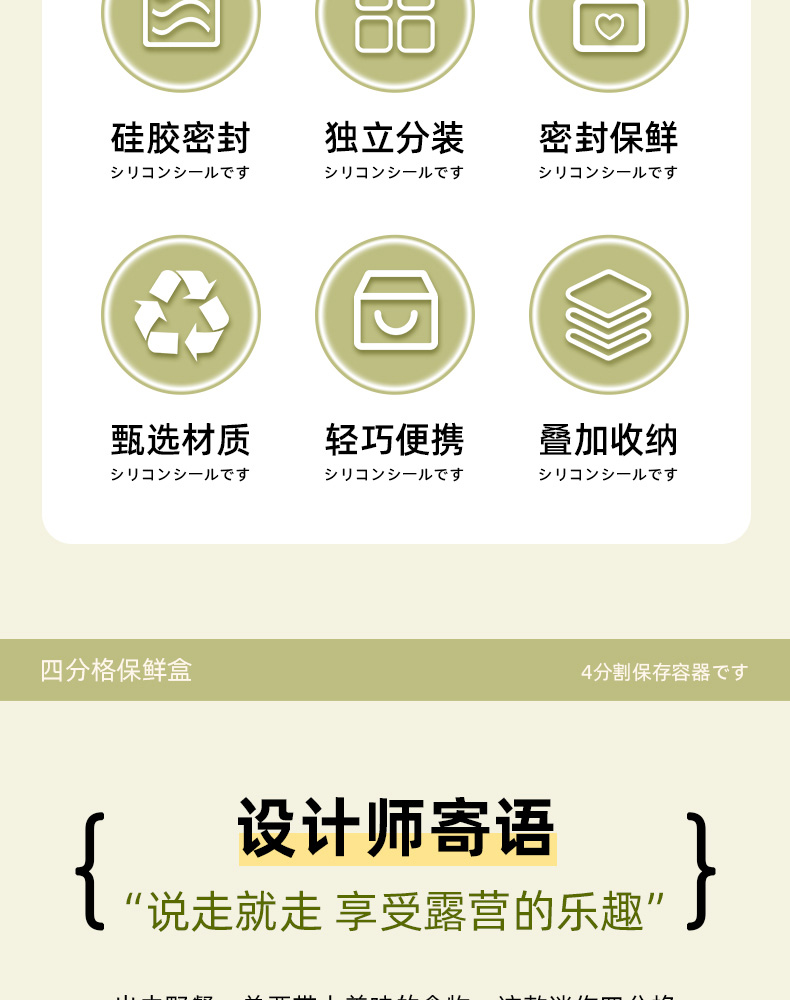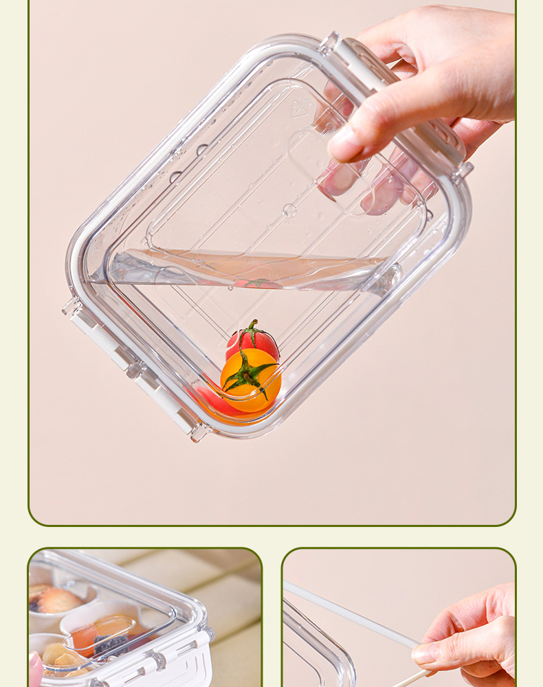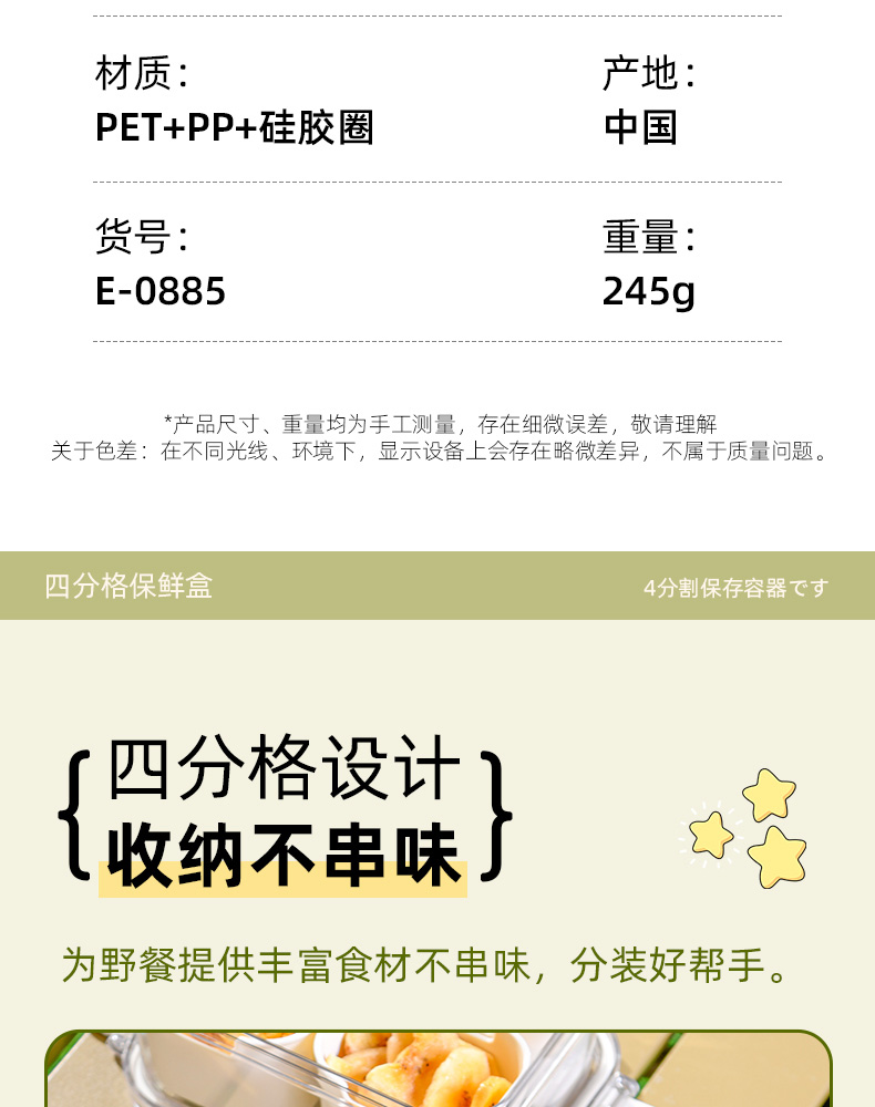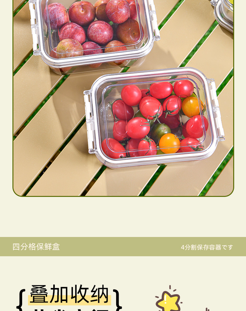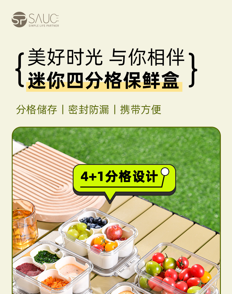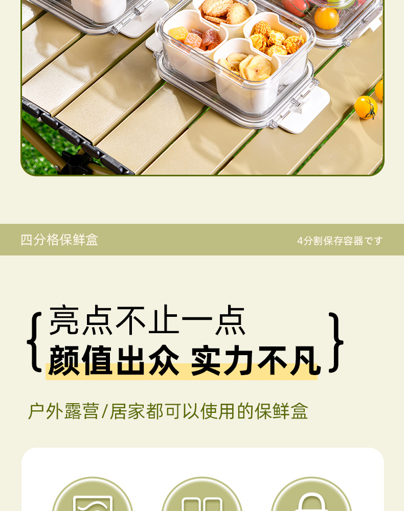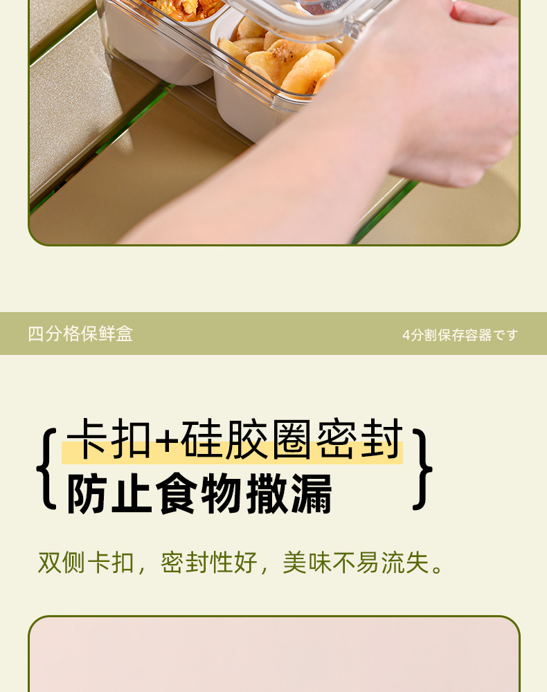 迷你四分格保鲜盒 日式迷你四分格保鲜盒食品级便携餐盒幼儿园儿童外出水果便当盒子