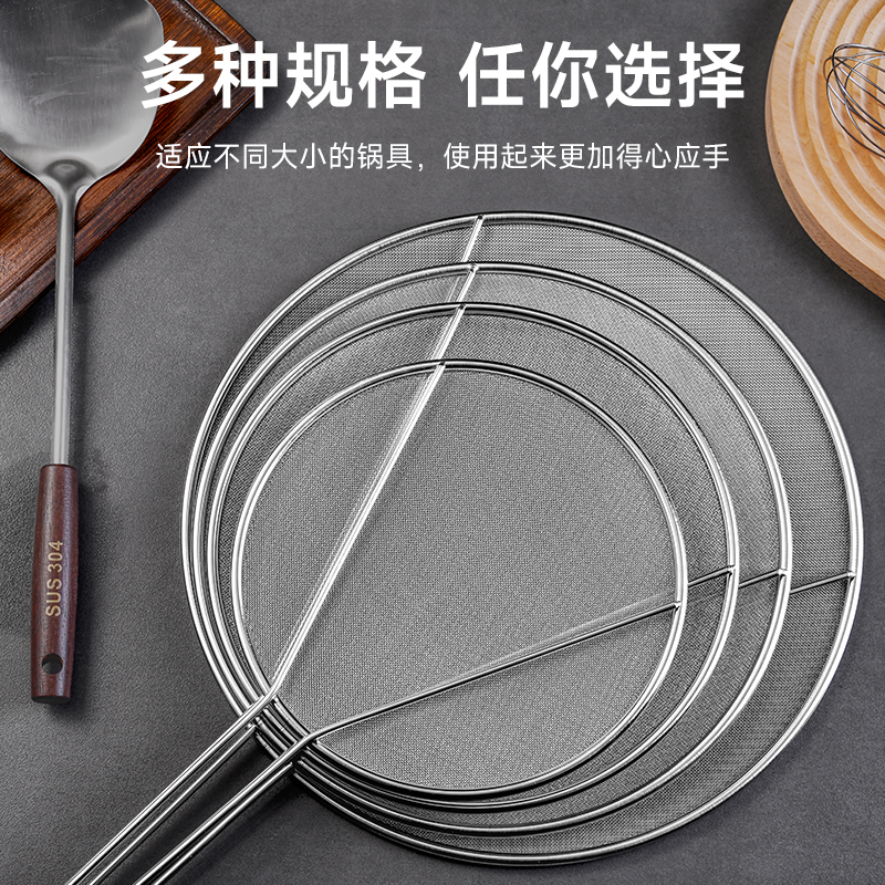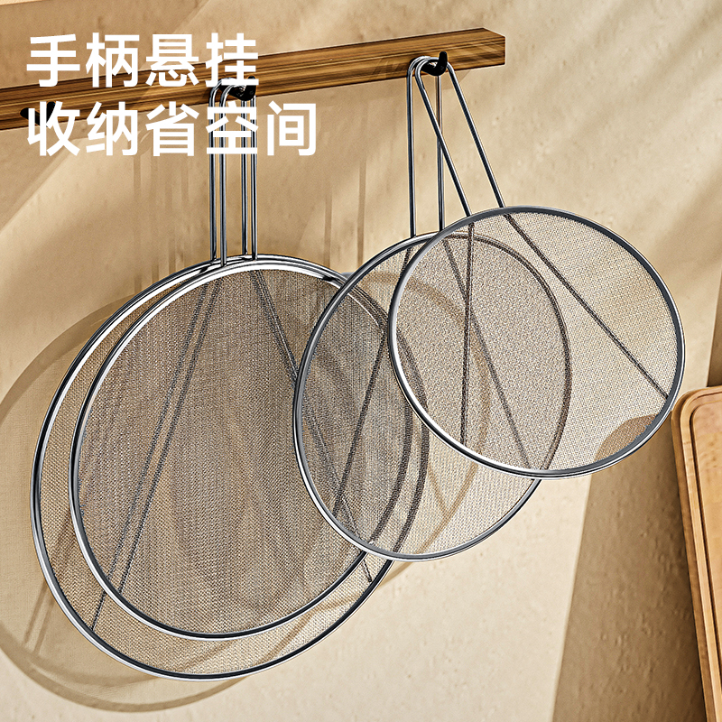 不锈钢挡油网(22CM) 不锈钢防油溅锅盖圆形厨房家用带手柄防油爆网漏防溅网油隔沥水罩