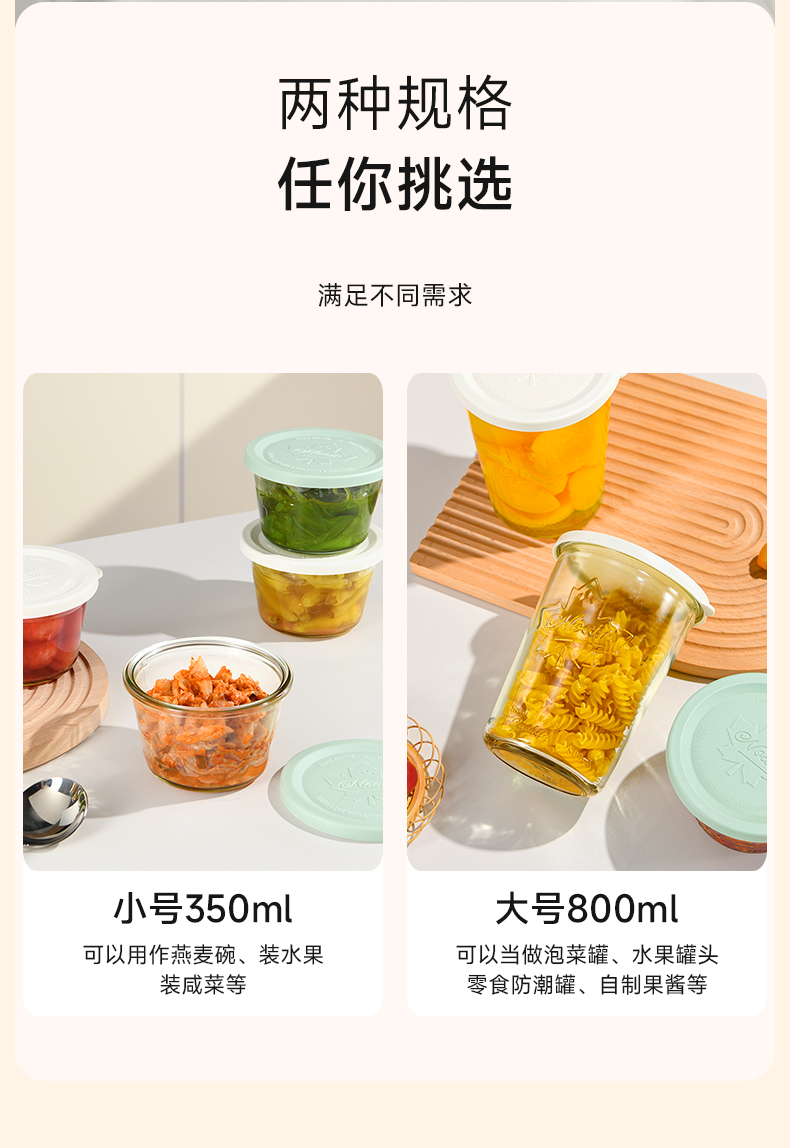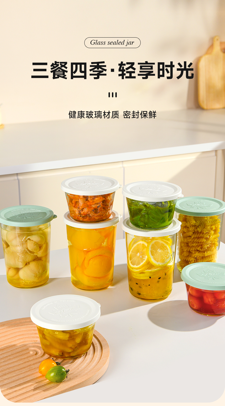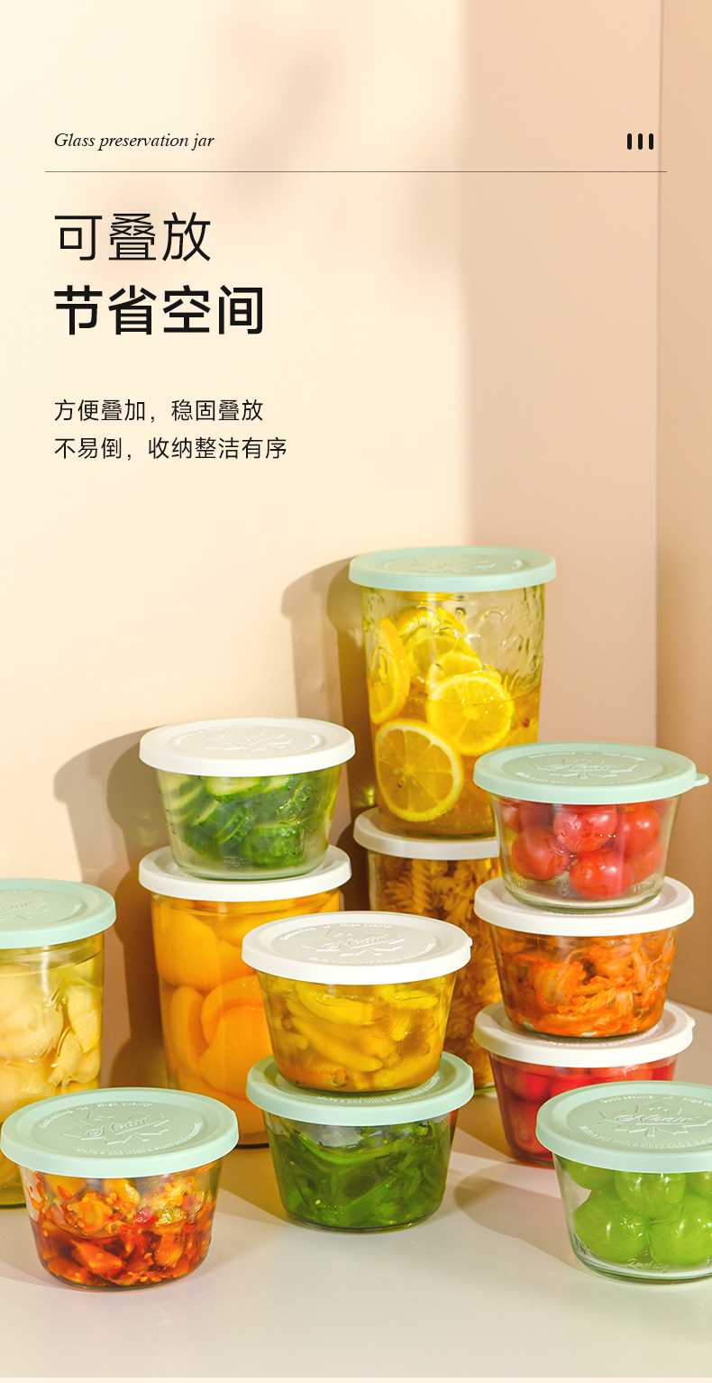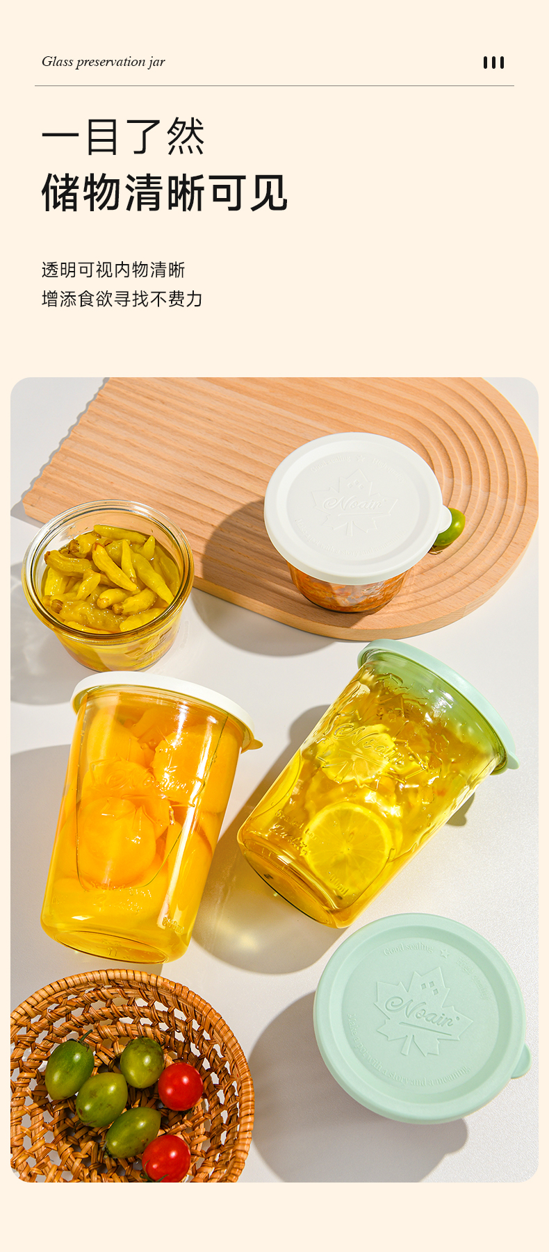 枫叶玻璃保鲜罐(350ml) 玻璃密封罐家用食品级保鲜盒水果泡菜收纳盒保鲜储物罐冷藏保鲜碗