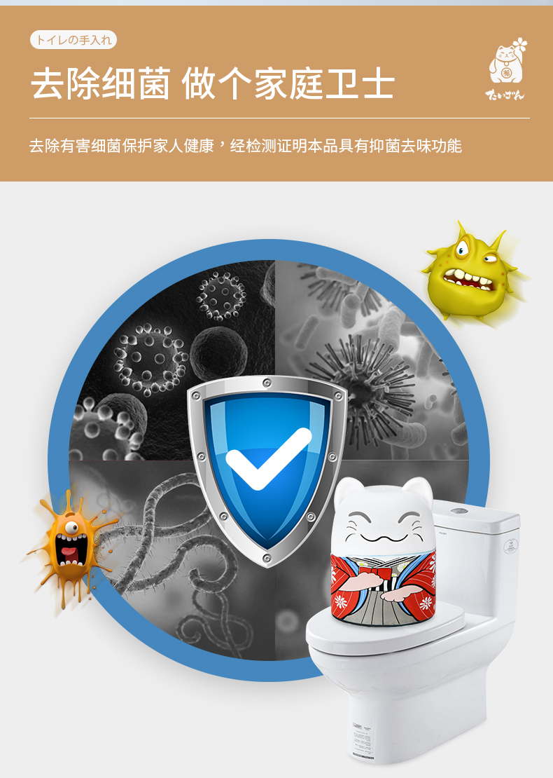 洁厕宝(招财猫款) 蓝泡泡洁厕宝厕所马桶清洁剂懒人洁厕块抑菌除垢除臭去味清香型招财猫