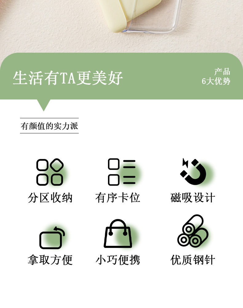 磁吸针盒(内含10支针) 磁吸新款轻奢奶油风针线盒家用高端质量家庭缝补神器套装收纳盒
