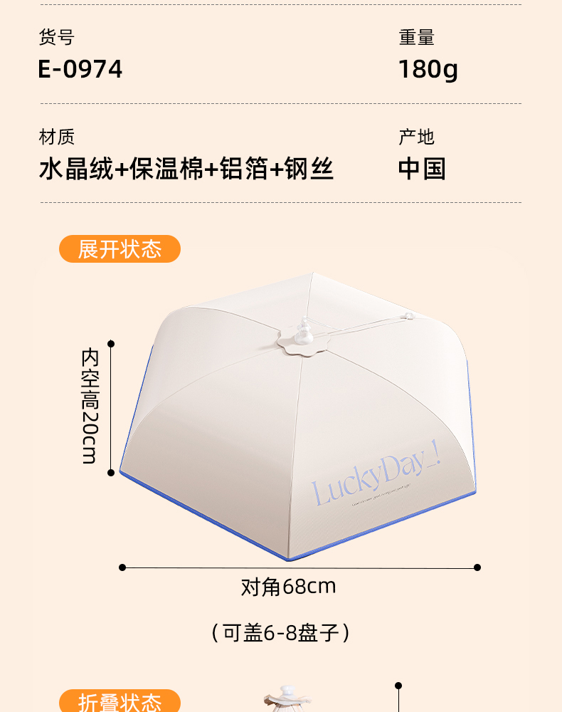 简约保温菜罩 保温饭菜神器菜盖罩可折叠家用冬天餐桌罩剩菜罩食物罩子