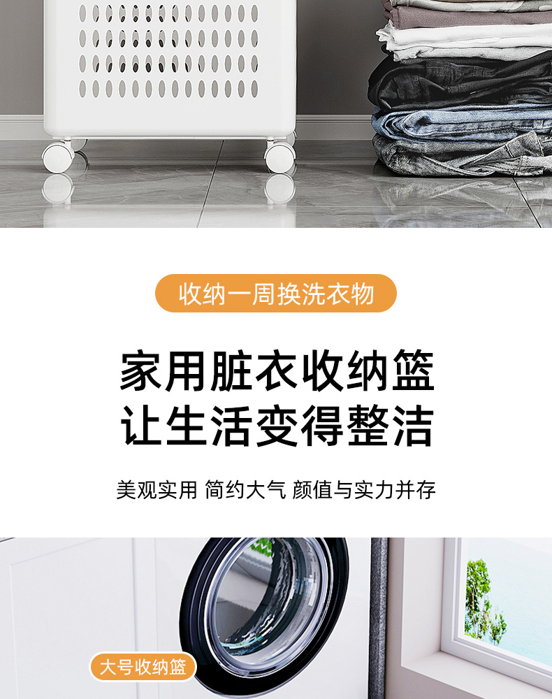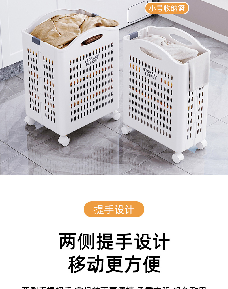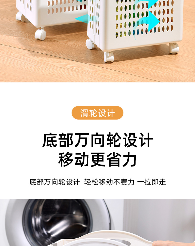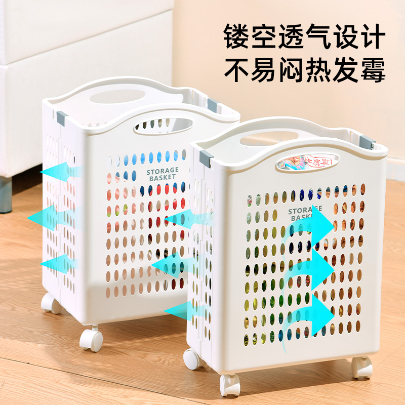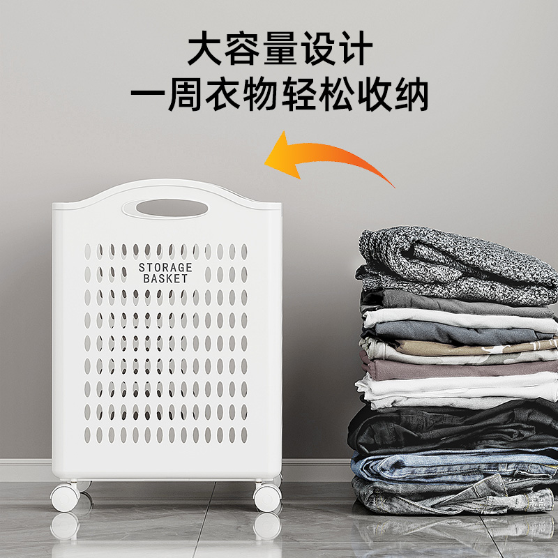 轻移动脏衣篮 大号 脏衣篓家用小推车卫生间洗脏衣服大容量衣物收纳筐浴室折叠脏衣篮
