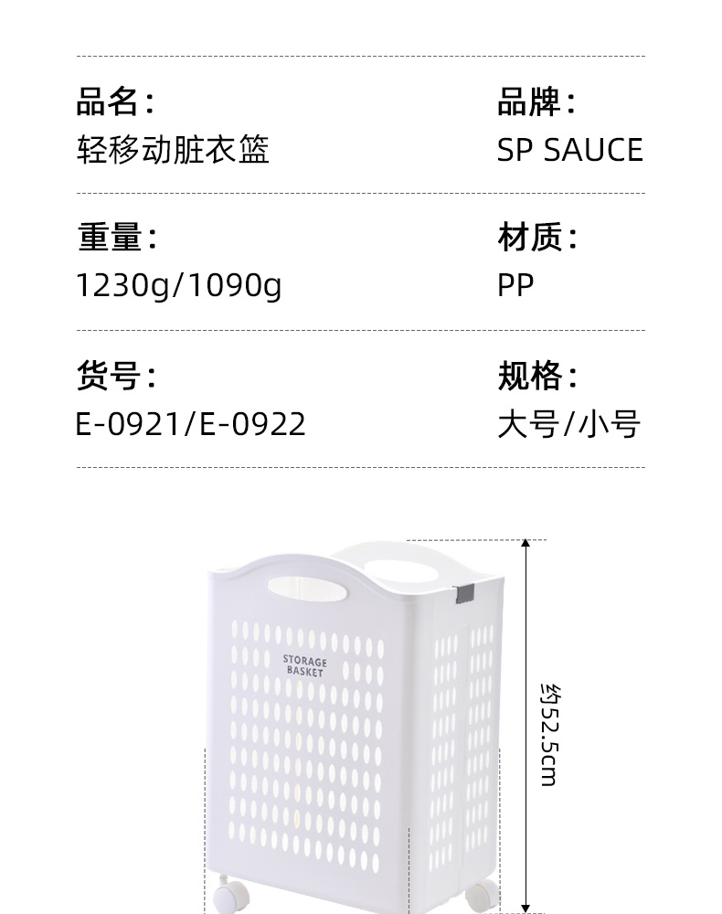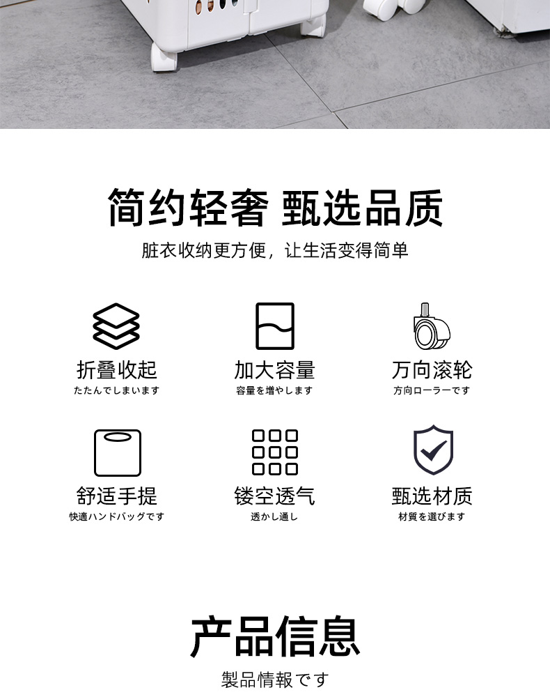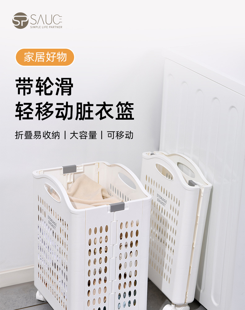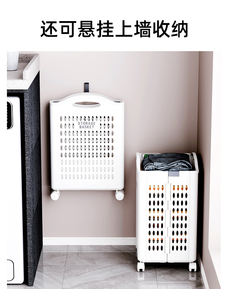 轻移动脏衣篮 大号 脏衣篓家用小推车卫生间洗脏衣服大容量衣物收纳筐浴室折叠脏衣篮