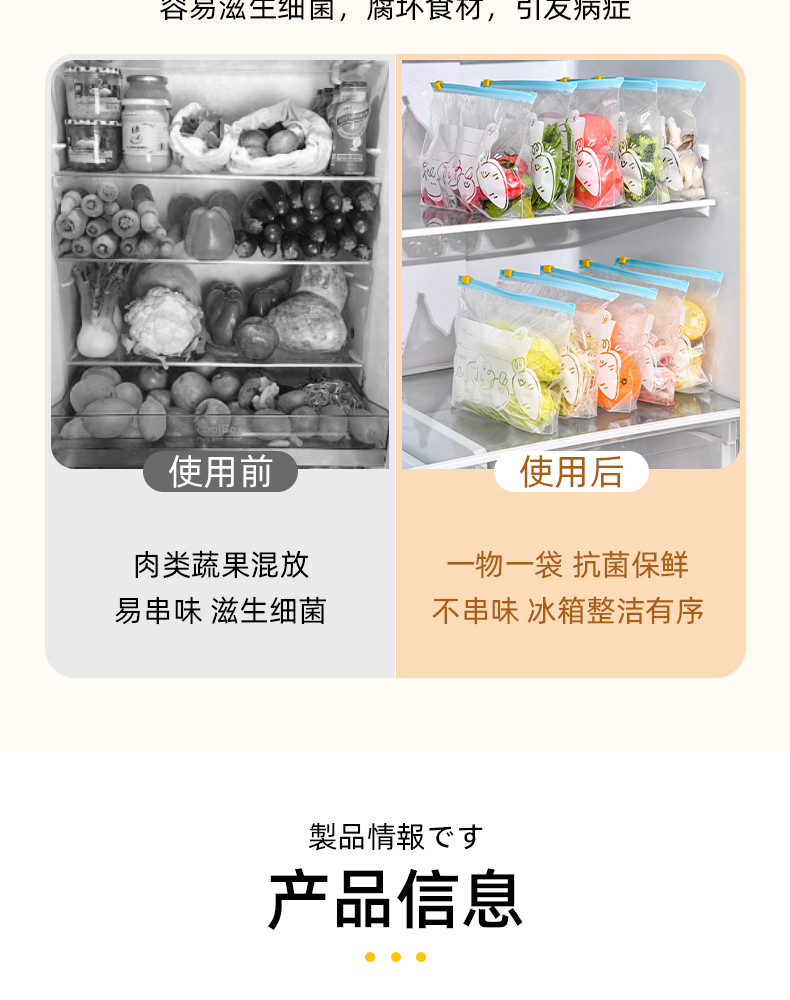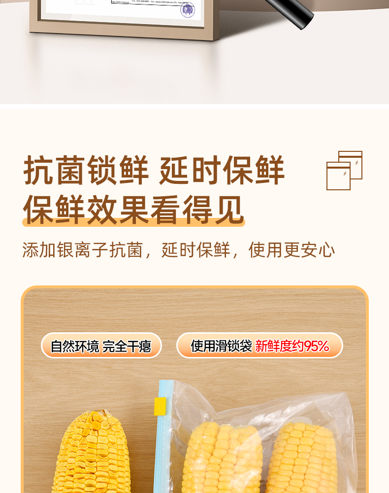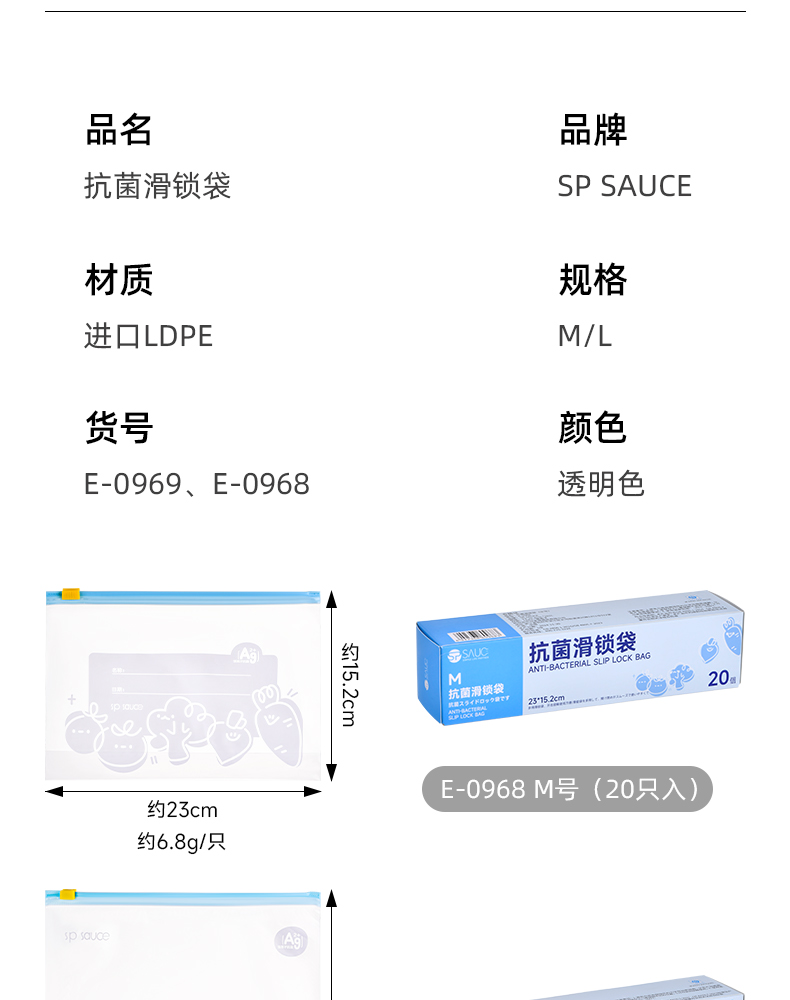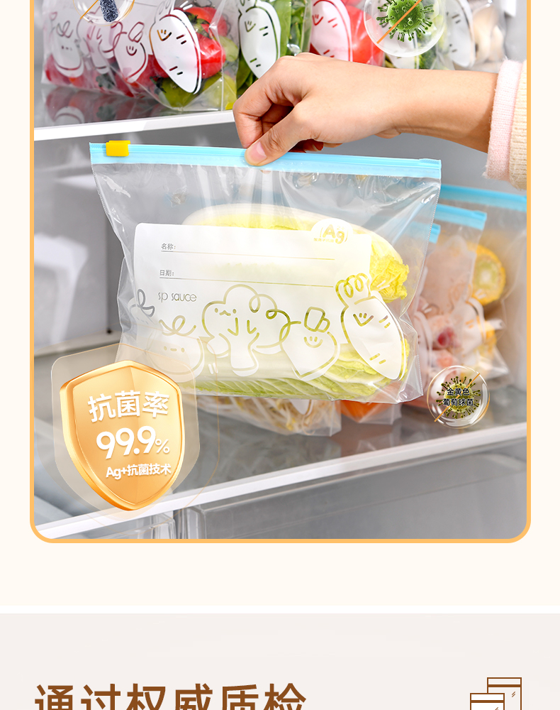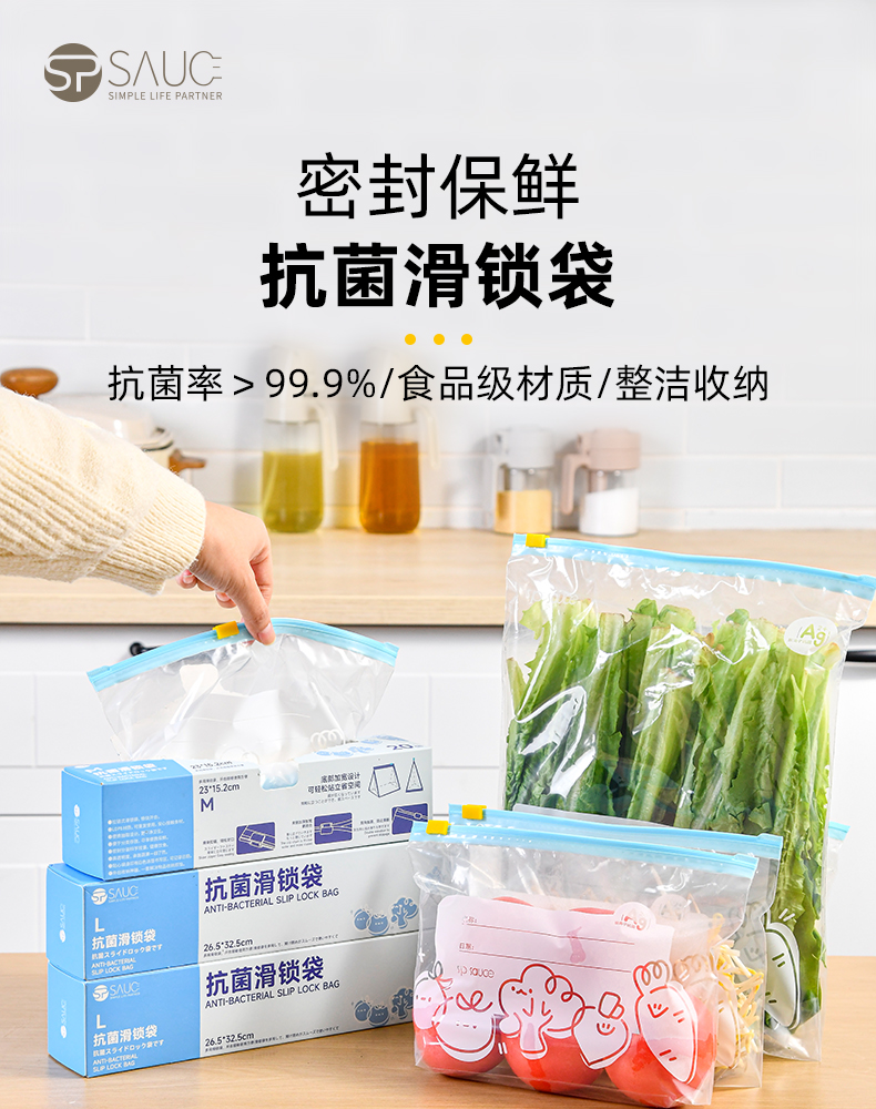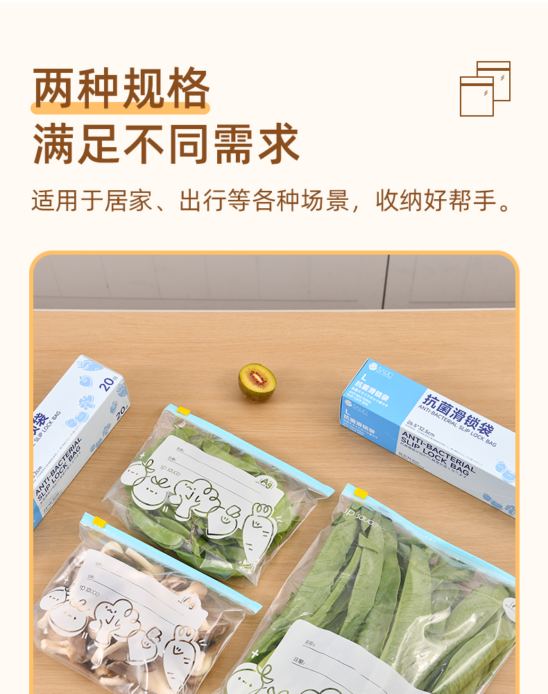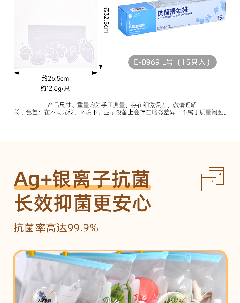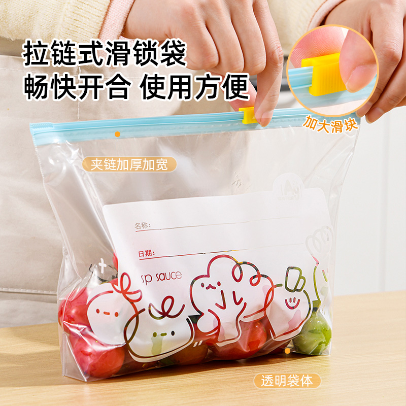 抗菌滑锁袋 大号(15只入) 抗菌密封袋保鲜食品包装袋家用加厚冰箱收纳冷冻解冻专用分装袋拉链滑锁袋