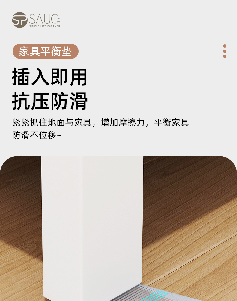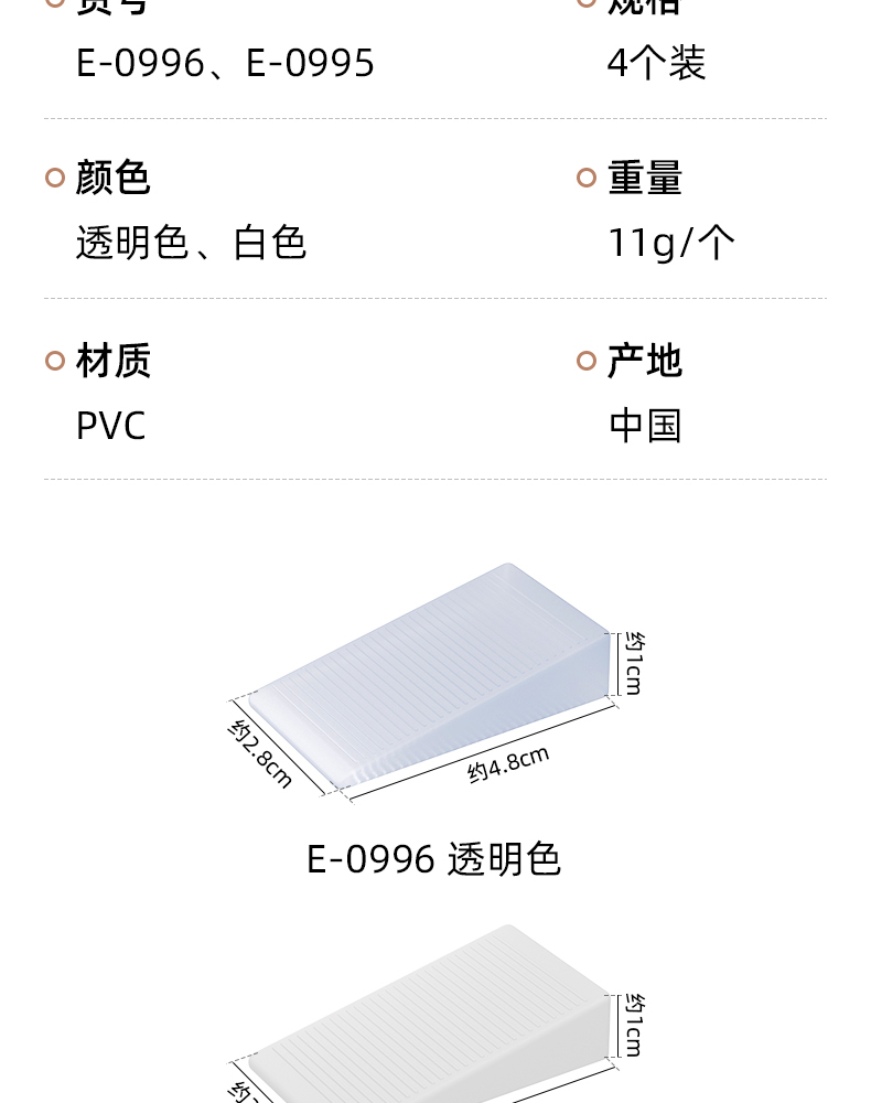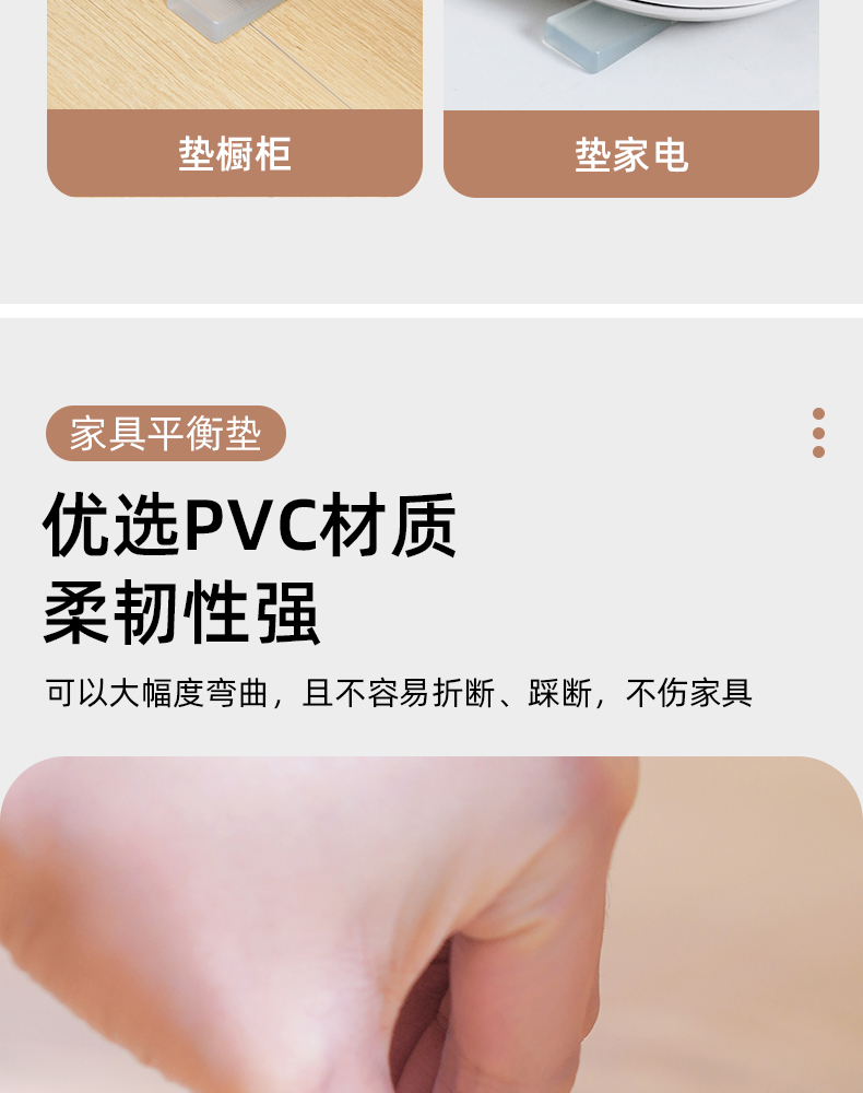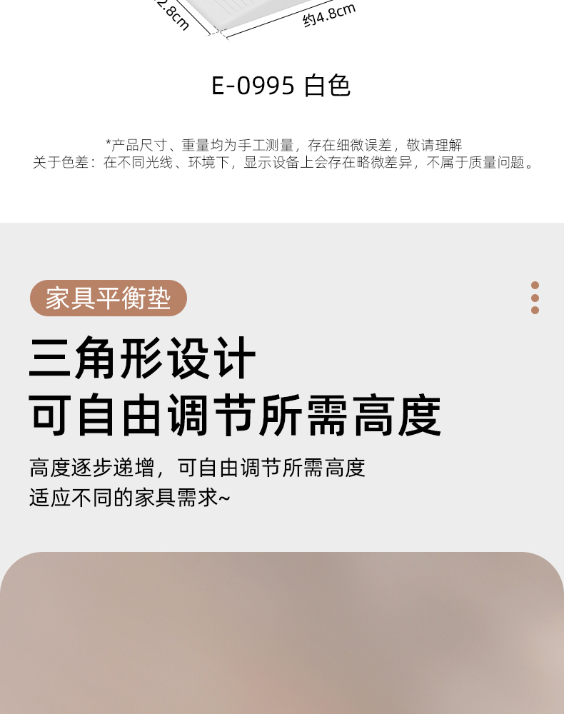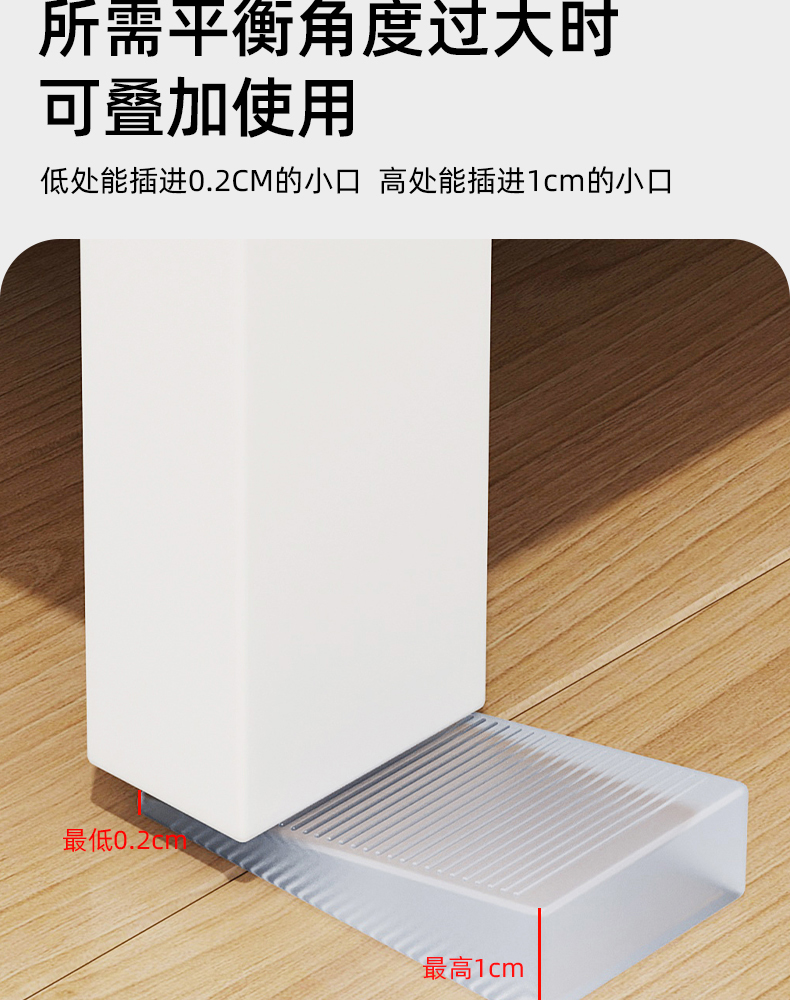 家具平衡垫(4个装) 家具水平垫片地面不平调整垫楔形柜子垫脚三角形平衡垫块倾斜垫高