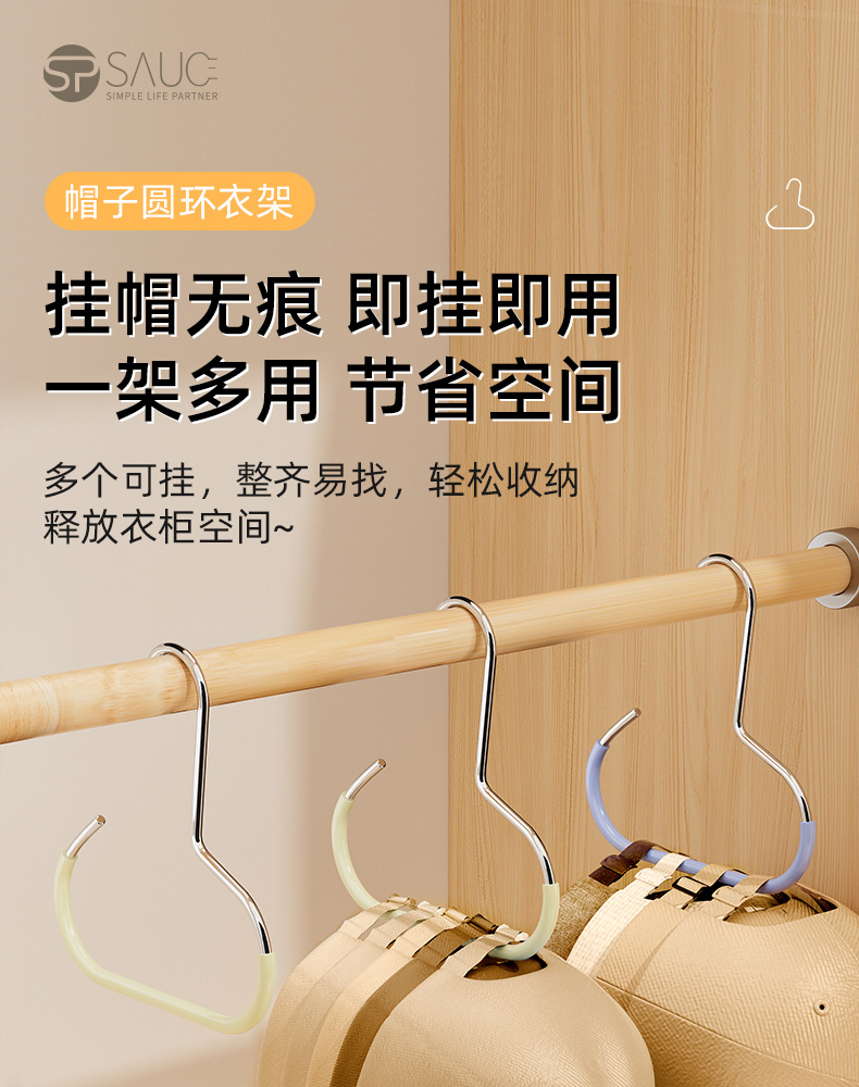 帽子圆环衣架(2只装) 帽子收纳家用鸭舌棒球帽展示架宿舍柜内吊带衣架包包挂钩挂帽神器