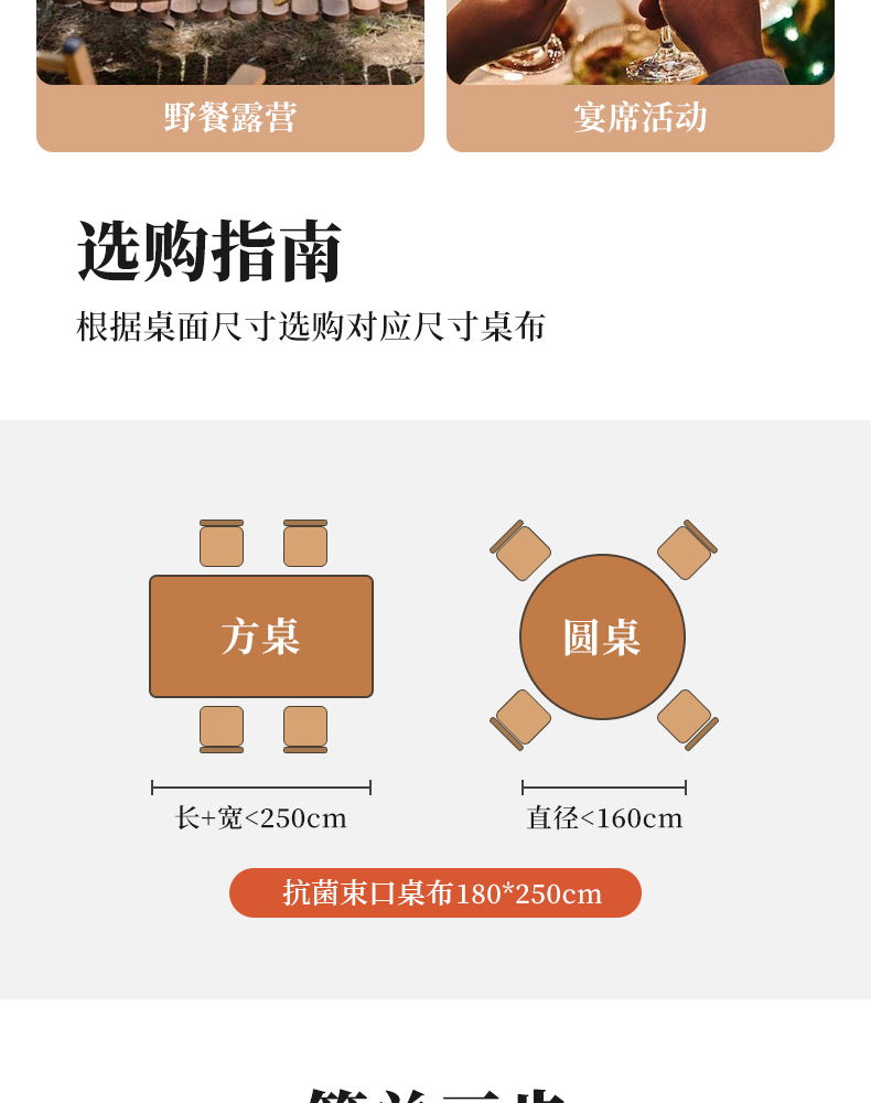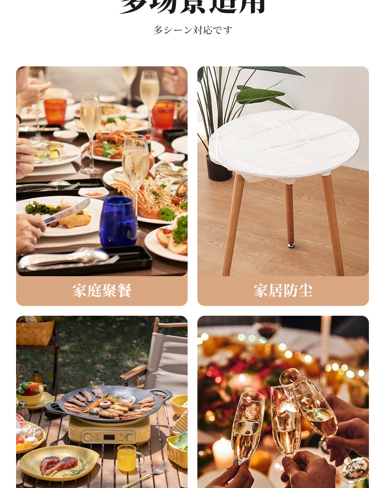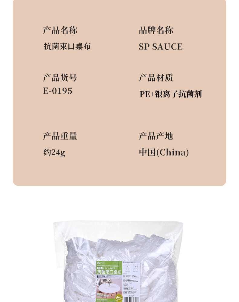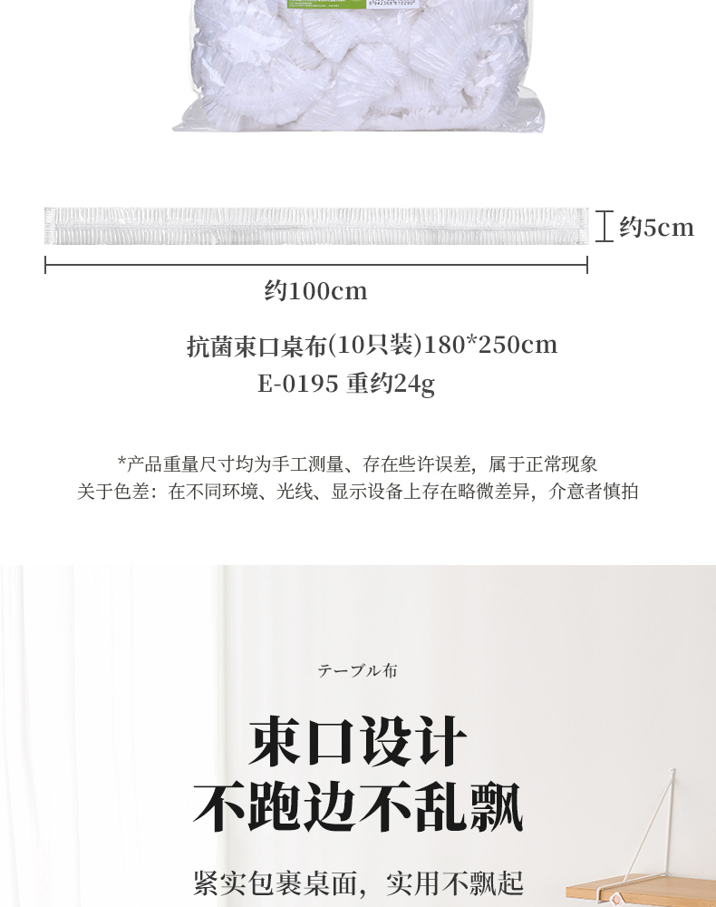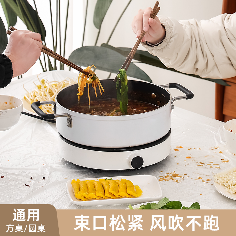 抗菌束口桌布(10枚入) 抗菌一次性束口桌布带松紧带防水防油免洗加厚食品级聚餐酒席塑料膜PE桌布