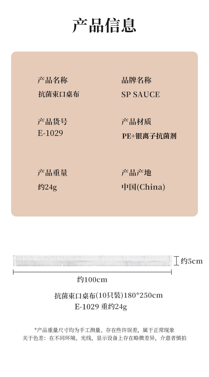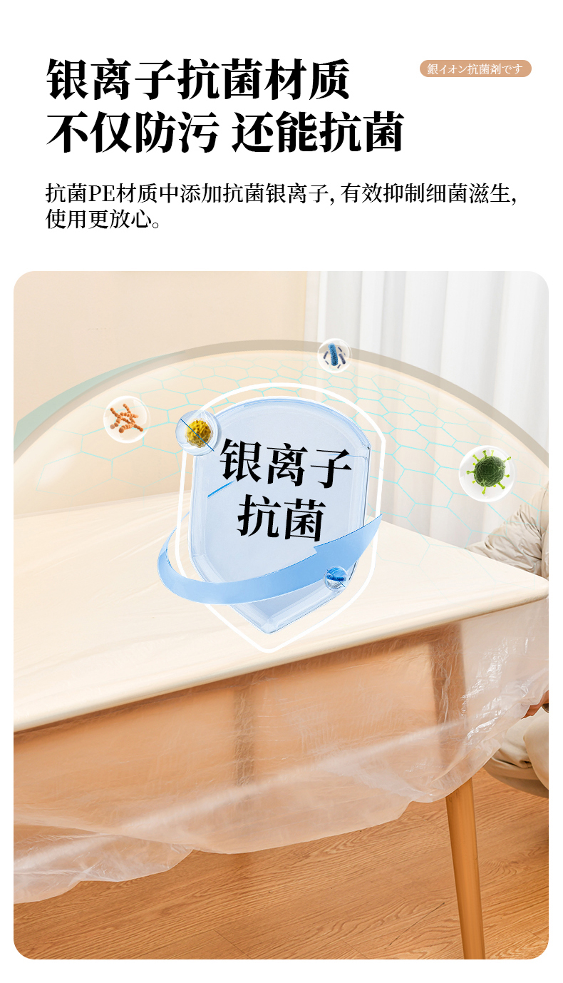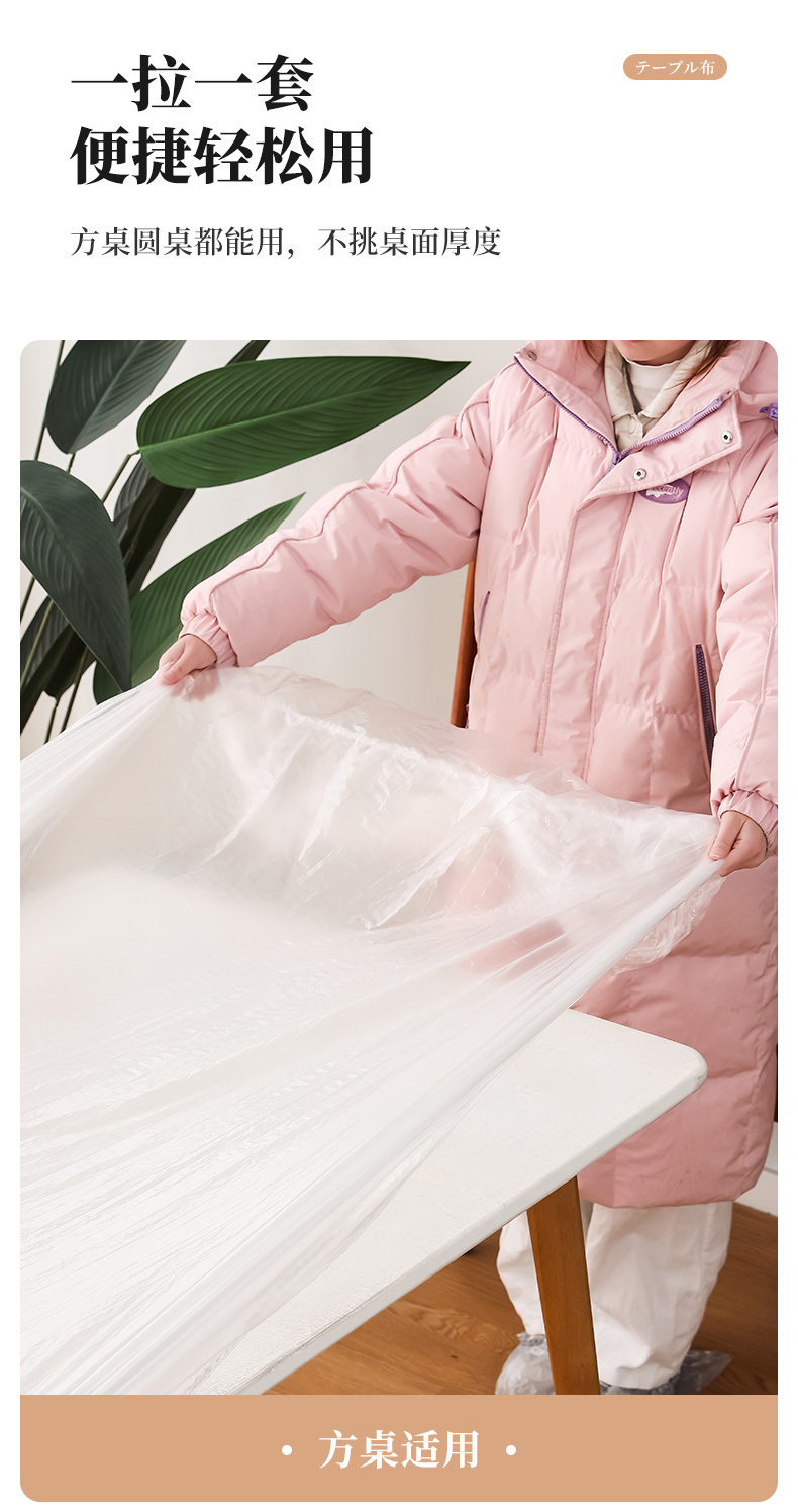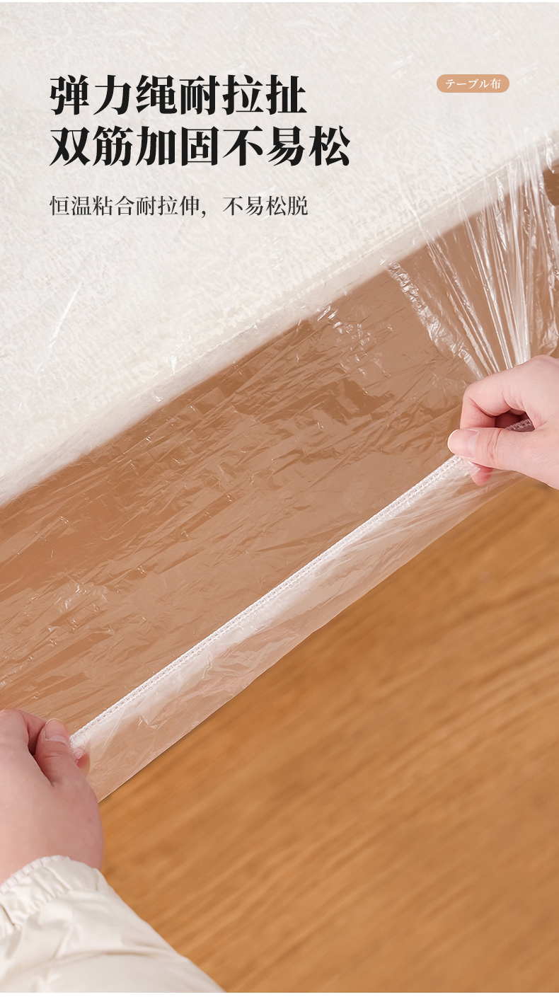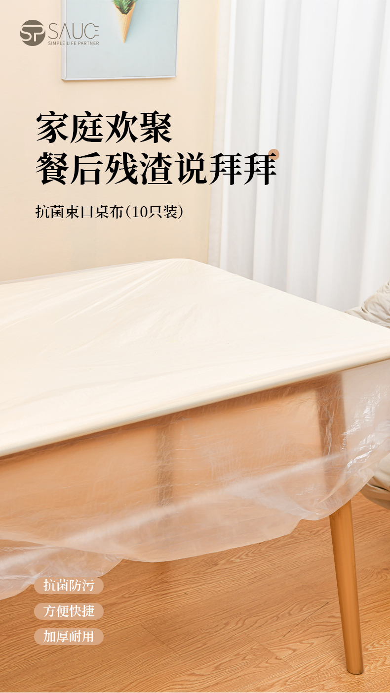 D抗菌束口桌布(10枚入) 抗菌一次性束口桌布带松紧带防水防油免洗加厚食品级聚餐酒席塑料膜PE桌布