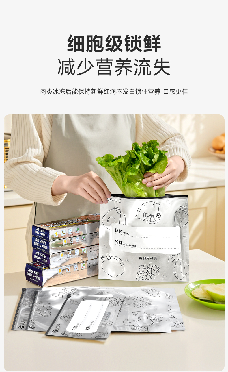 铝箔抗菌保鲜袋中号(10只入) 铝箔抗菌保鲜袋冰箱冷冻密封袋自封袋拉链式食品级封口分装袋