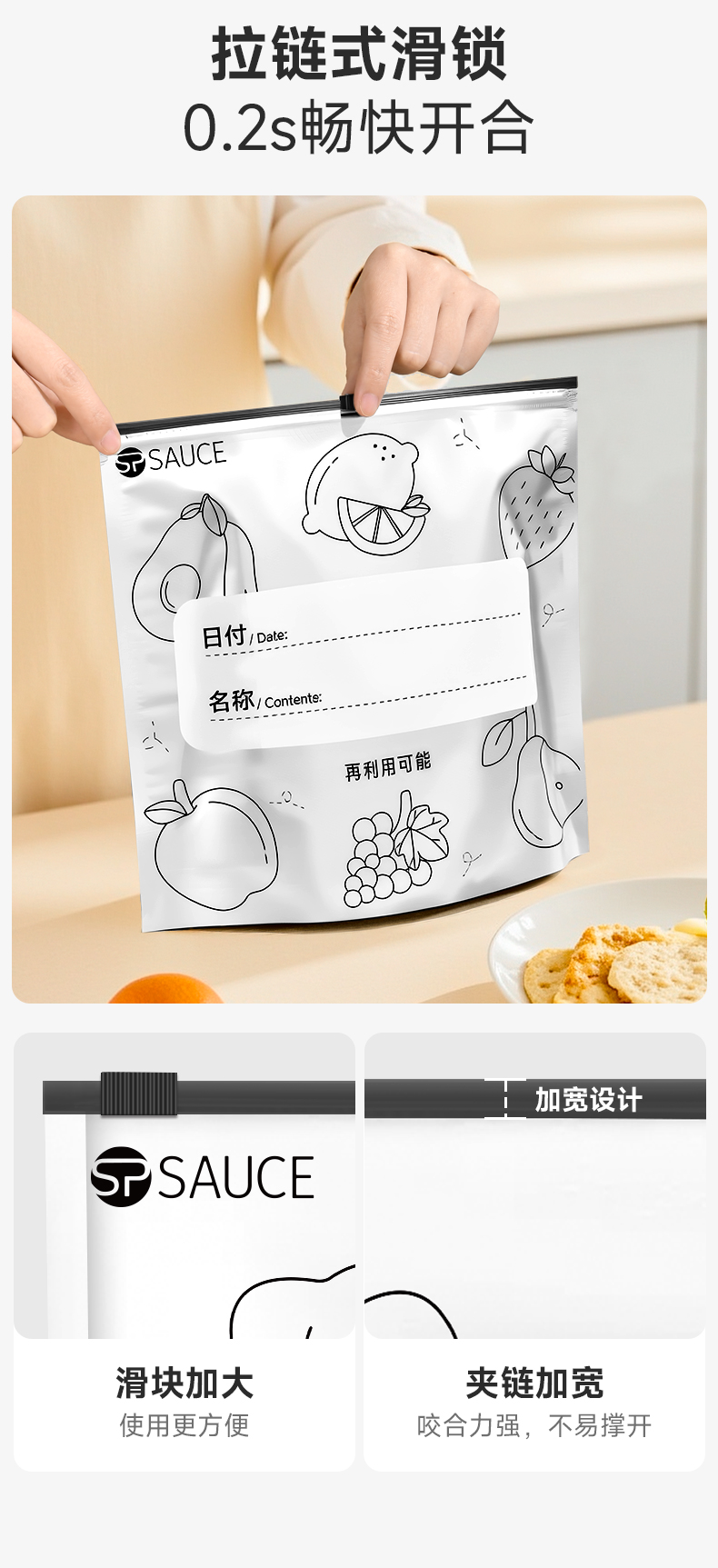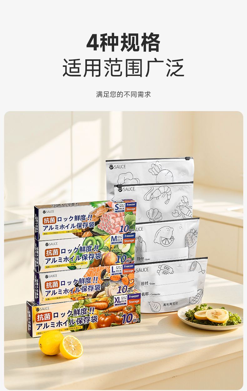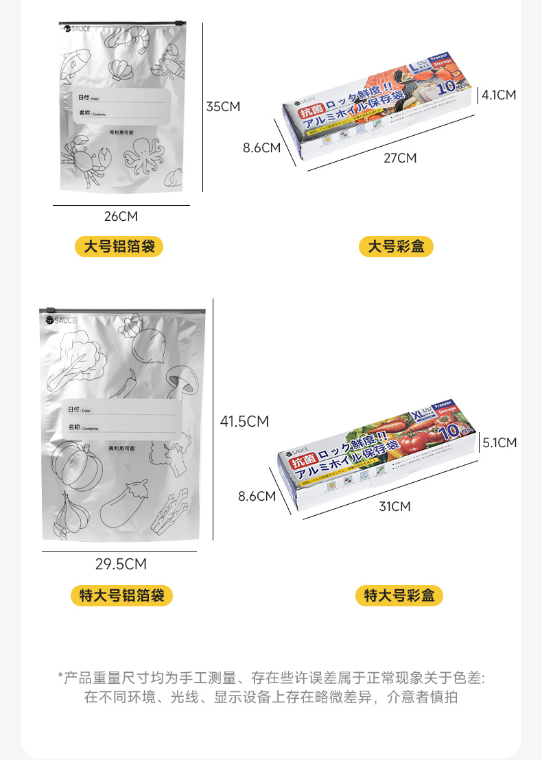 铝箔抗菌保鲜袋大号(10只入) 铝箔抗菌保鲜袋冰箱冷冻密封袋自封袋拉链式食品级封口分装袋