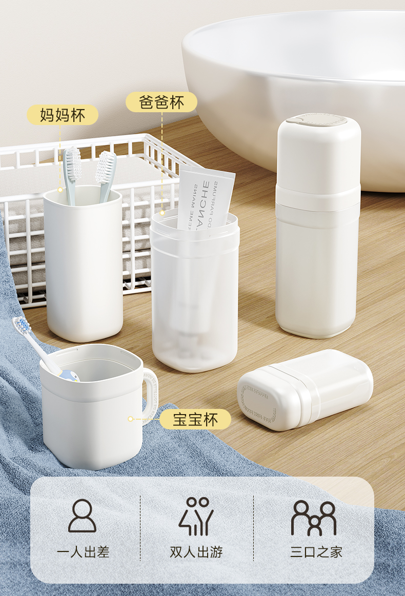 透气抗菌旅行牙具杯(两杯) 透气抗菌旅行漱口杯便携洗护套装牙膏牙刷收纳盒儿童牙具三合一
