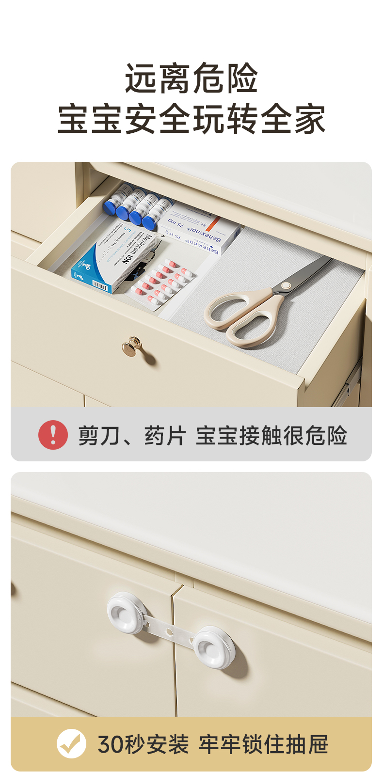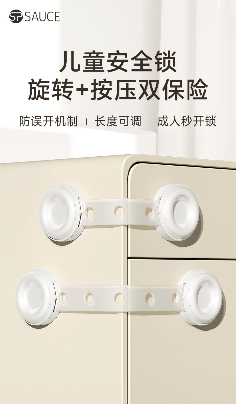 旋转式儿童安全锁 旋转式防宝宝安全锁婴儿童防护抽屉锁扣柜门冰箱柜子移门防开童锁