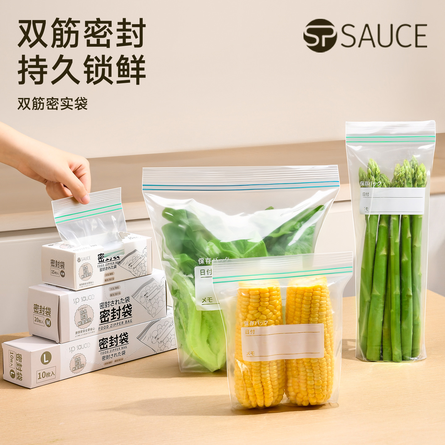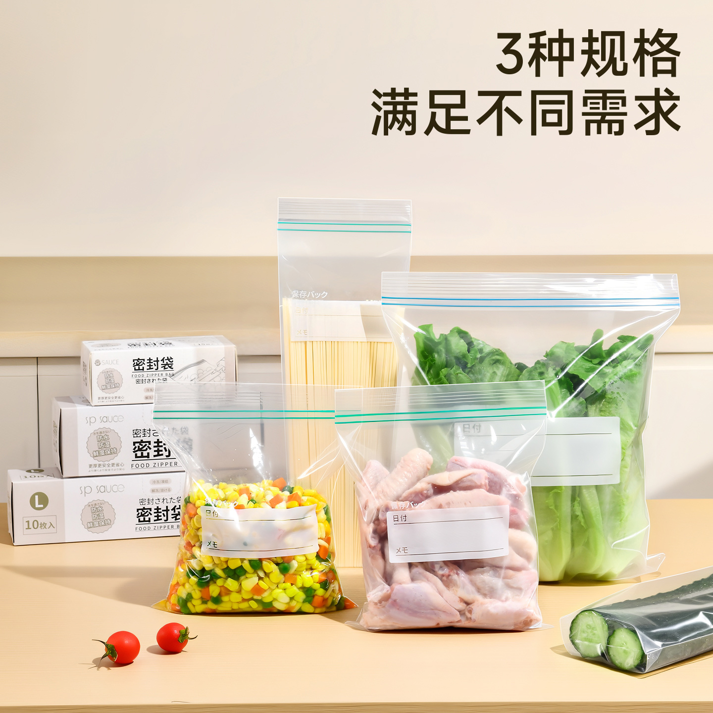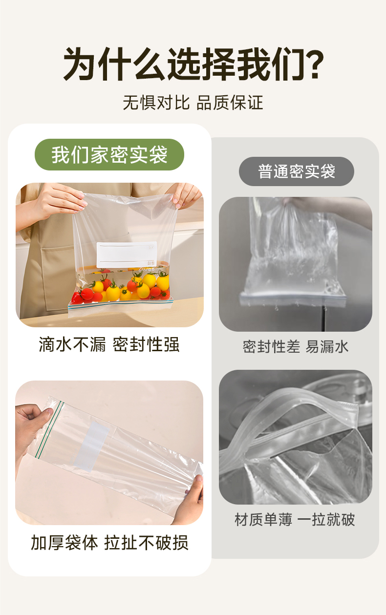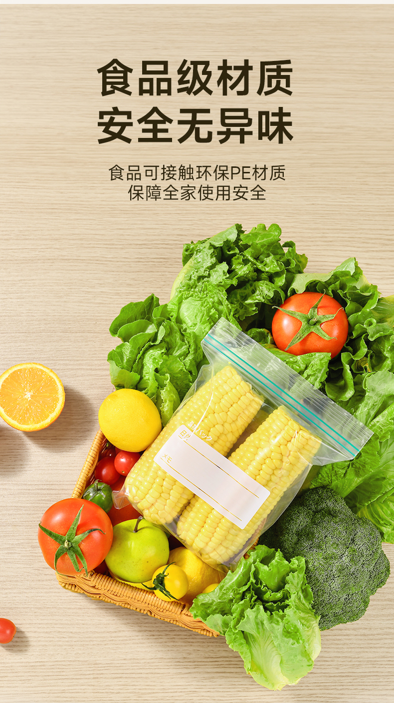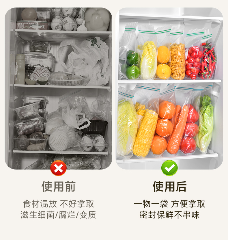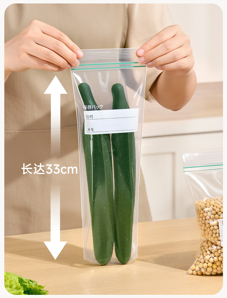 密实袋(长款) 15枚入 保鲜袋食品袋家用自封口密实袋加厚透明厨房冰箱食物密封袋子