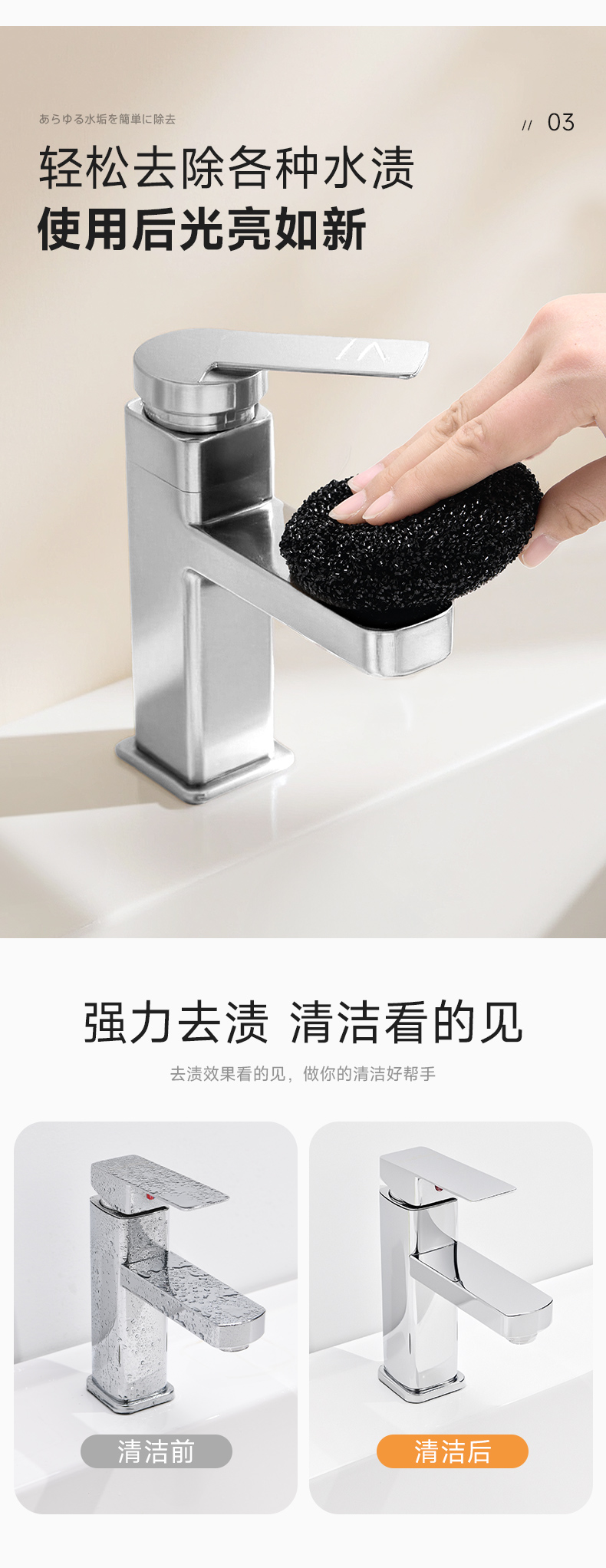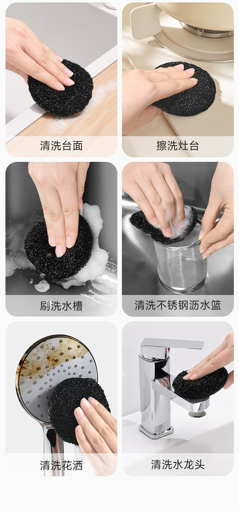 水槽清洁棉(圆形) 水垢清洁擦浴室洗手台厨房水槽水龙头花洒海绵魔力擦去污除垢神器
