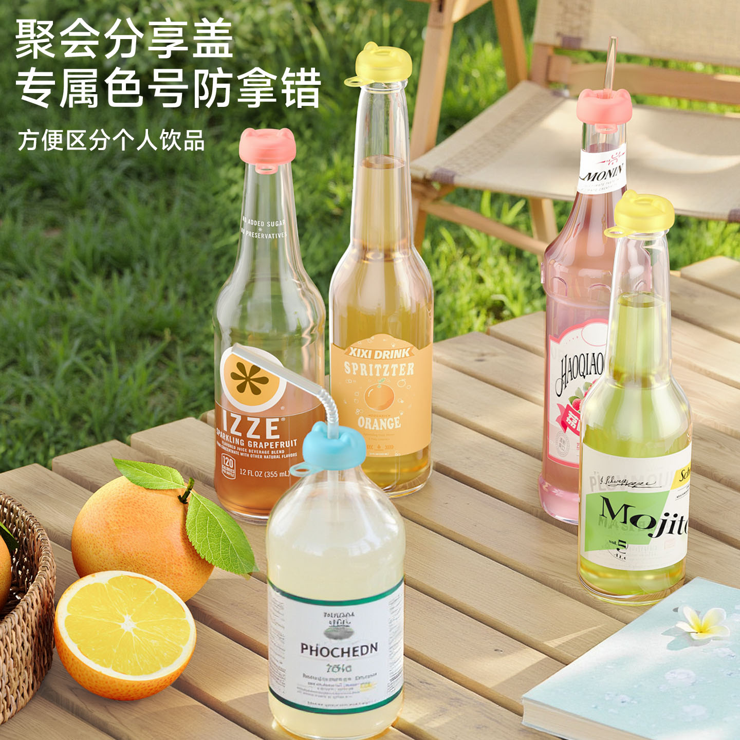 汽水瓶盖(插管+密封) 汽水瓶盖食品级硅胶防漏盖聚会饮料酒瓶通用防尘塞吸管密封切换