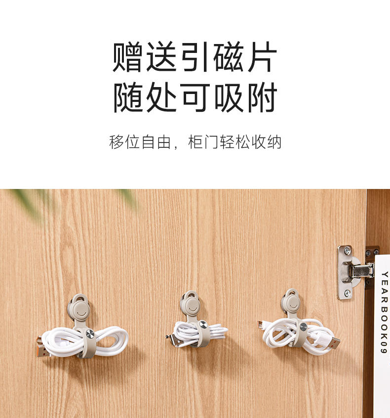 壁挂硅胶磁吸理线带 多功能壁挂式硅胶磁吸理线带数据线收纳挂线器固定器卡扣墙上整理