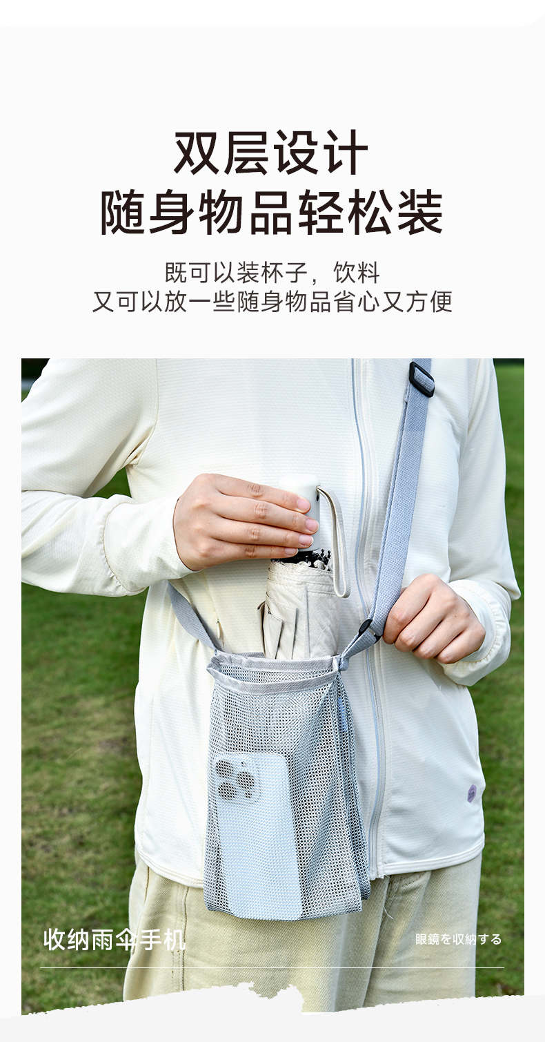 多功能双层水杯袋 多功能双层饮料瓶背带保温杯套斜挎便携手拎水壶包焖烧杯保护套通用大号手提水杯收纳袋