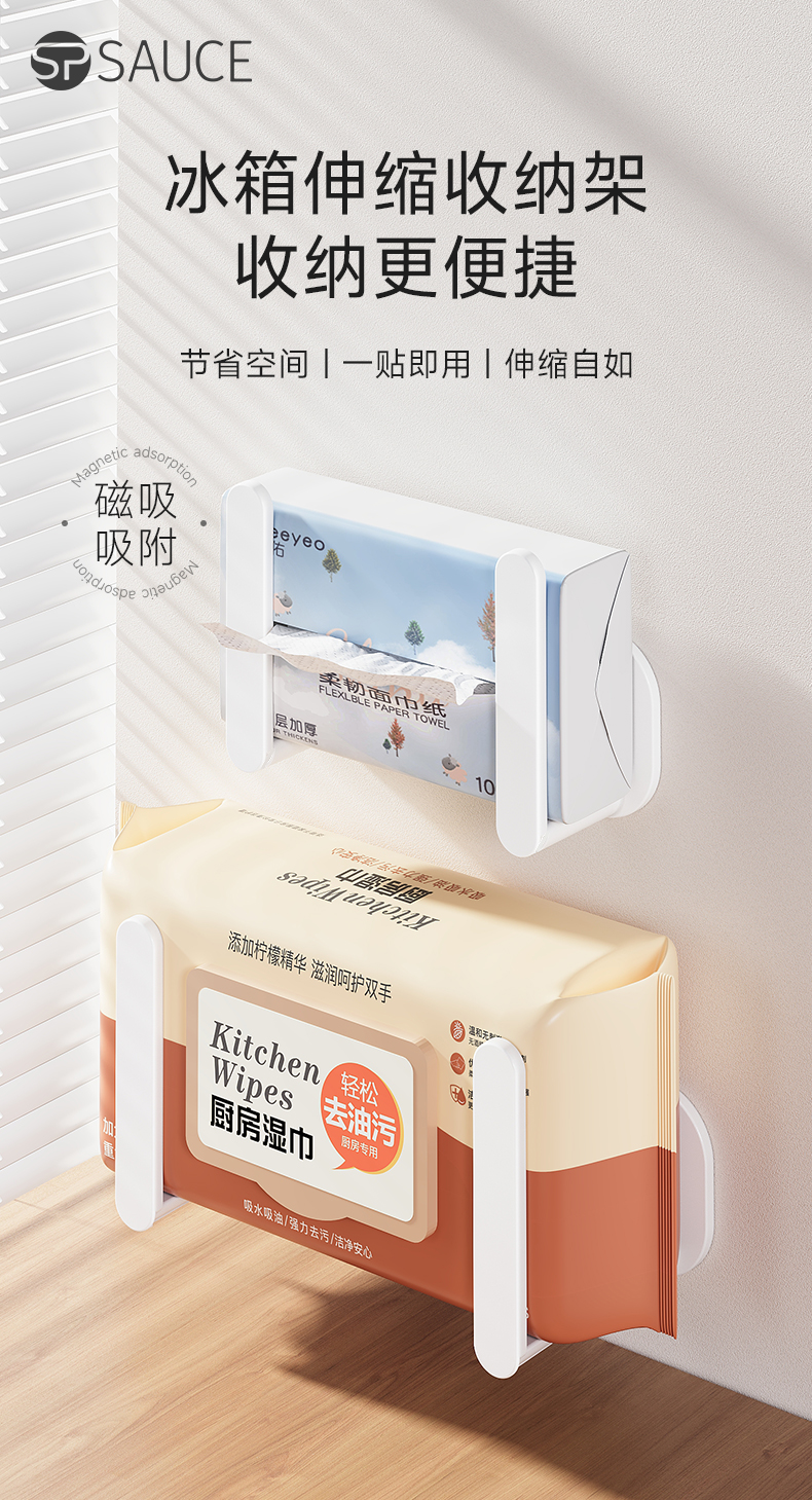冰箱伸缩收纳架(磁吸款)两个装 冰箱磁吸置物架侧面收纳神器强力磁贴壁挂保鲜膜厨房 纸巾挂架