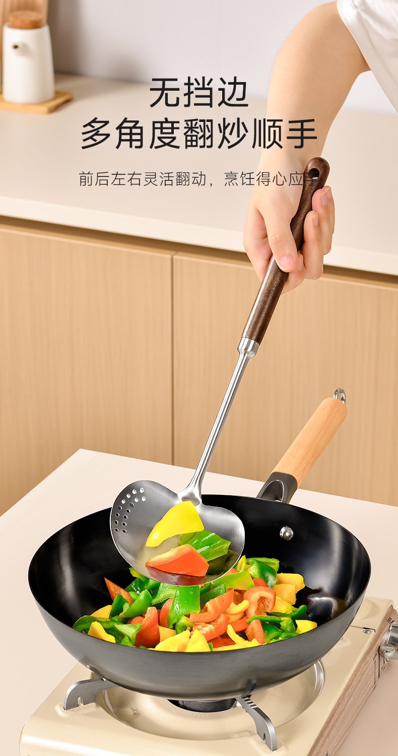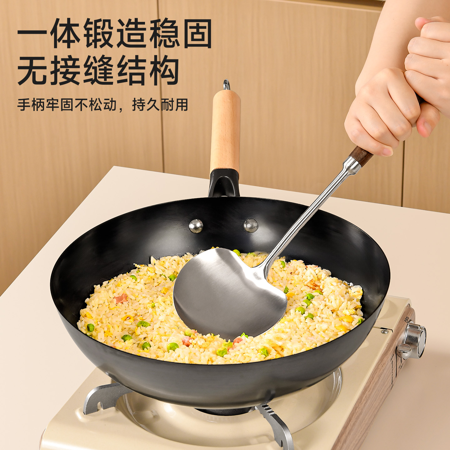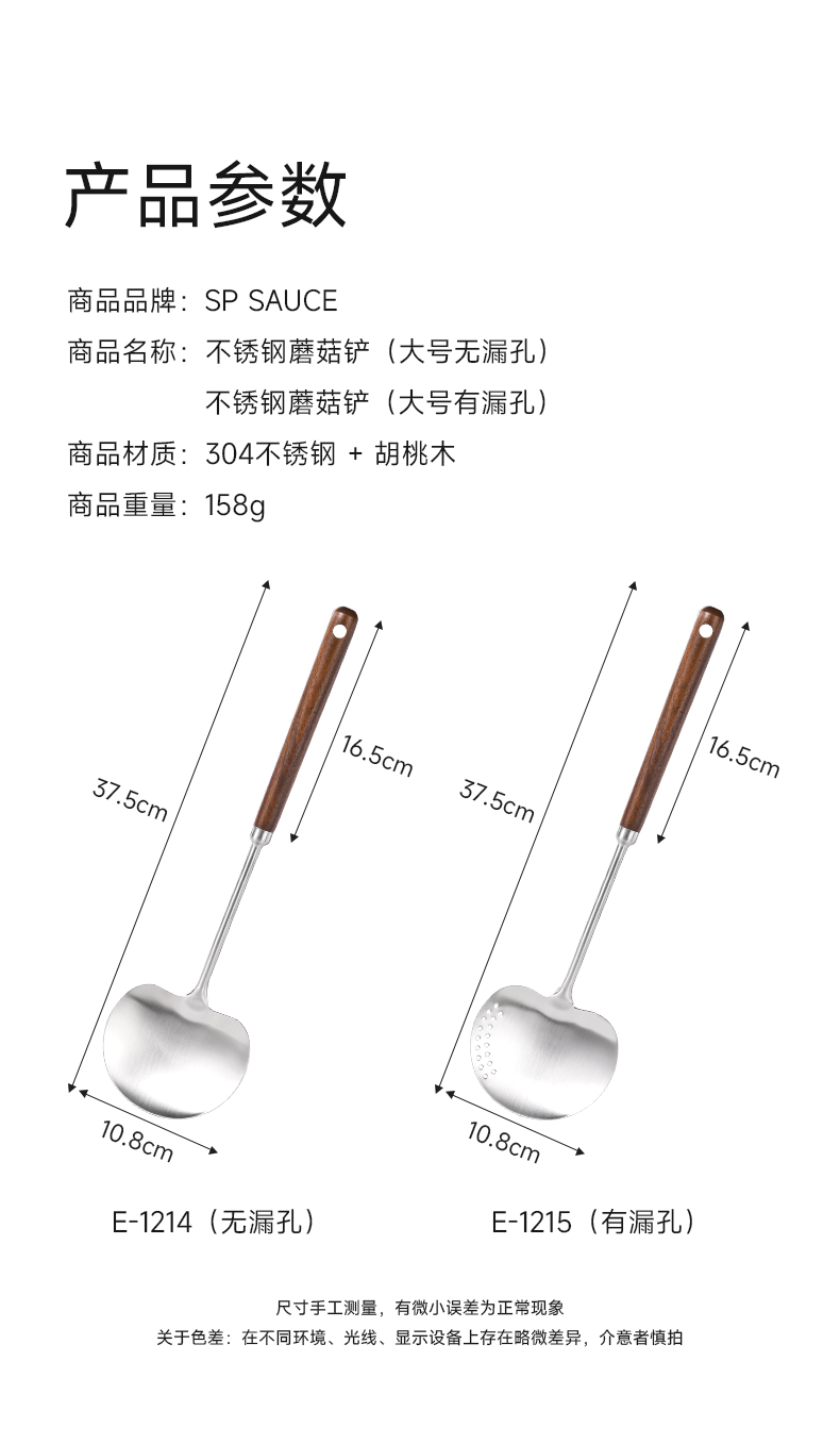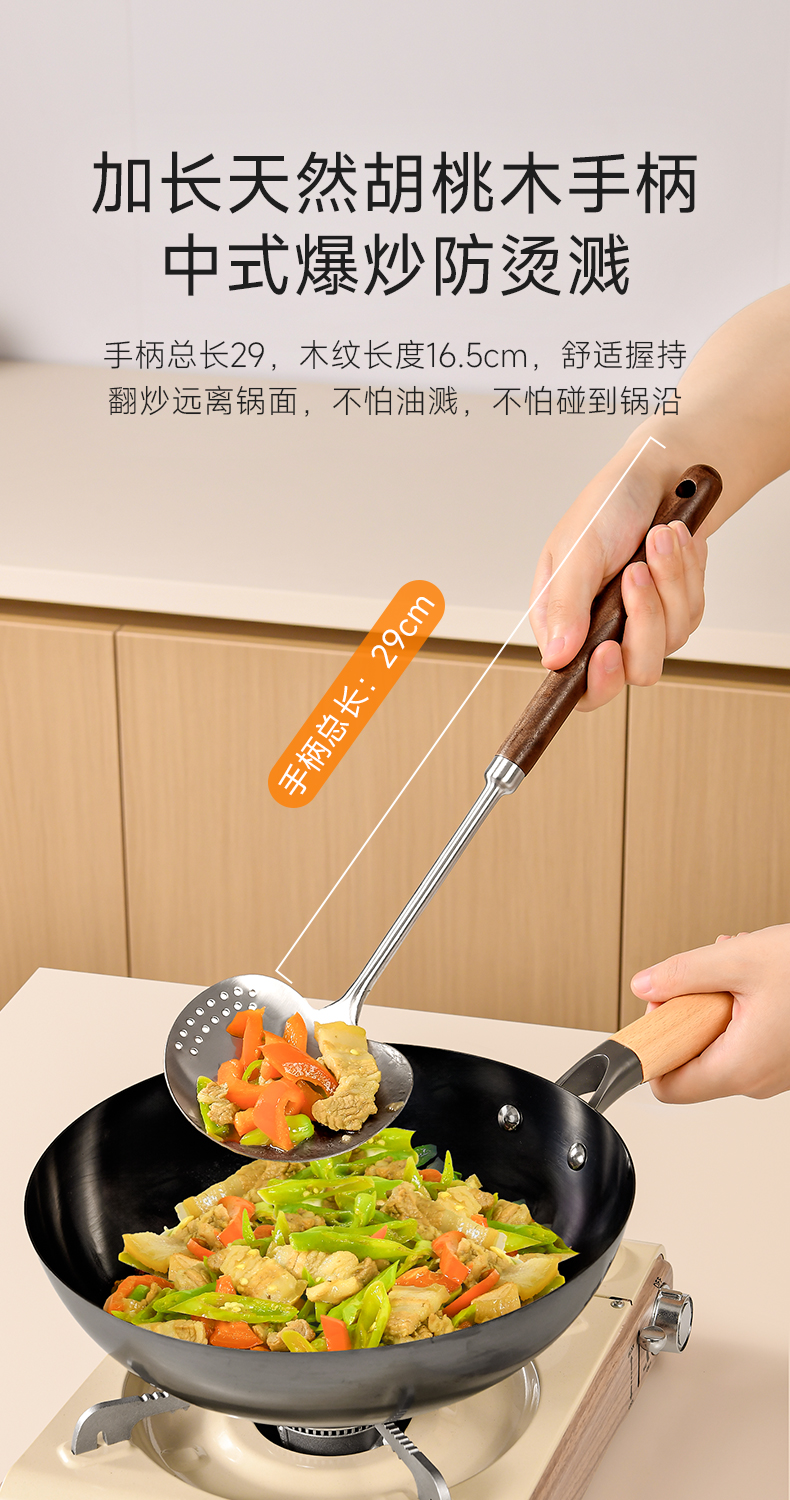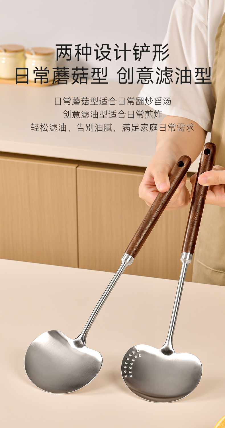 不锈钢蘑菇铲(大号无漏孔) 胡桃木蘑菇铲子不锈钢小锅铲家用炒勺铁锅铁铲炒菜勺子