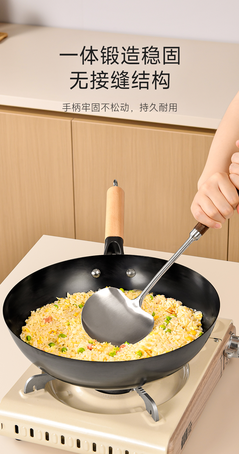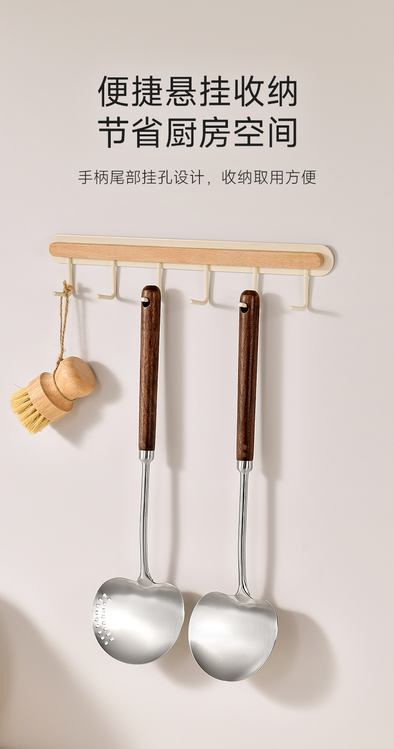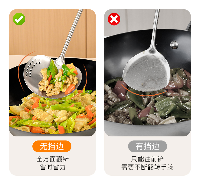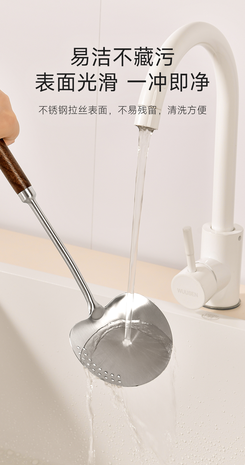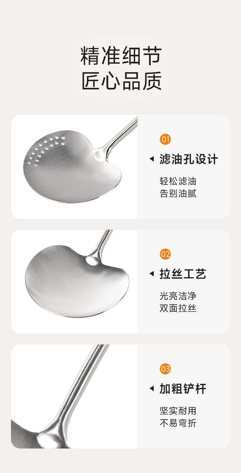 不锈钢蘑菇铲(大号无漏孔) 胡桃木蘑菇铲子不锈钢小锅铲家用炒勺铁锅铁铲炒菜勺子