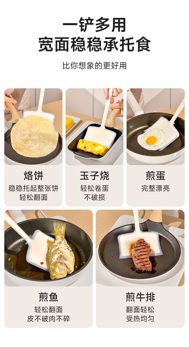 双色硅胶宽面铲 煎饼铲子烙饼专用硅胶铲食品级耐高温锅铲家用玉子烧煎蛋煎铲