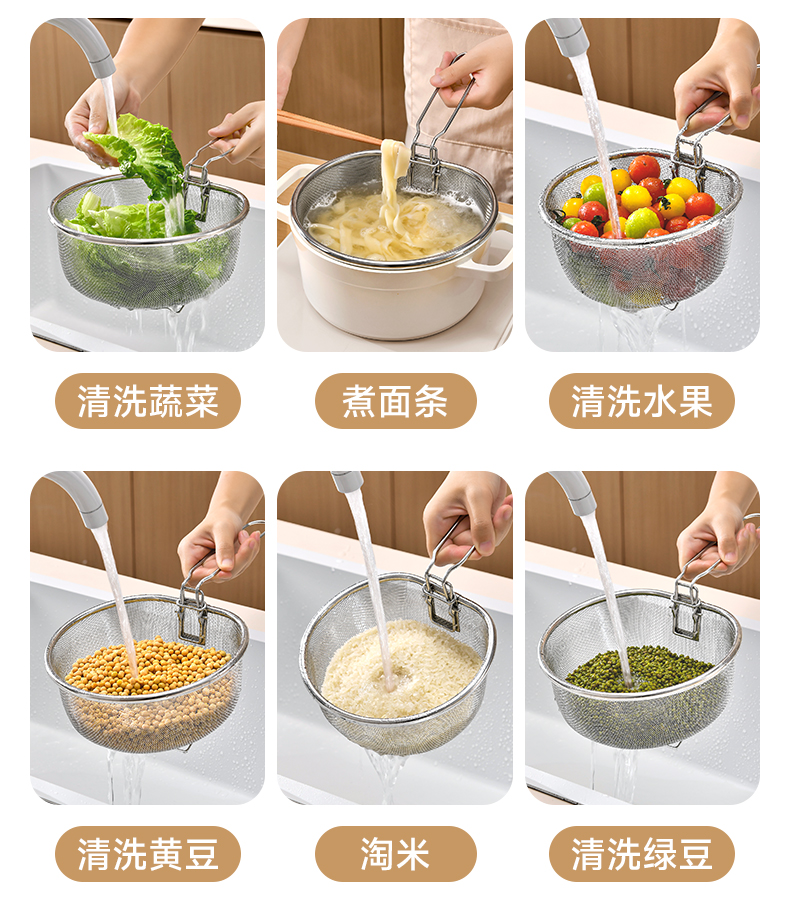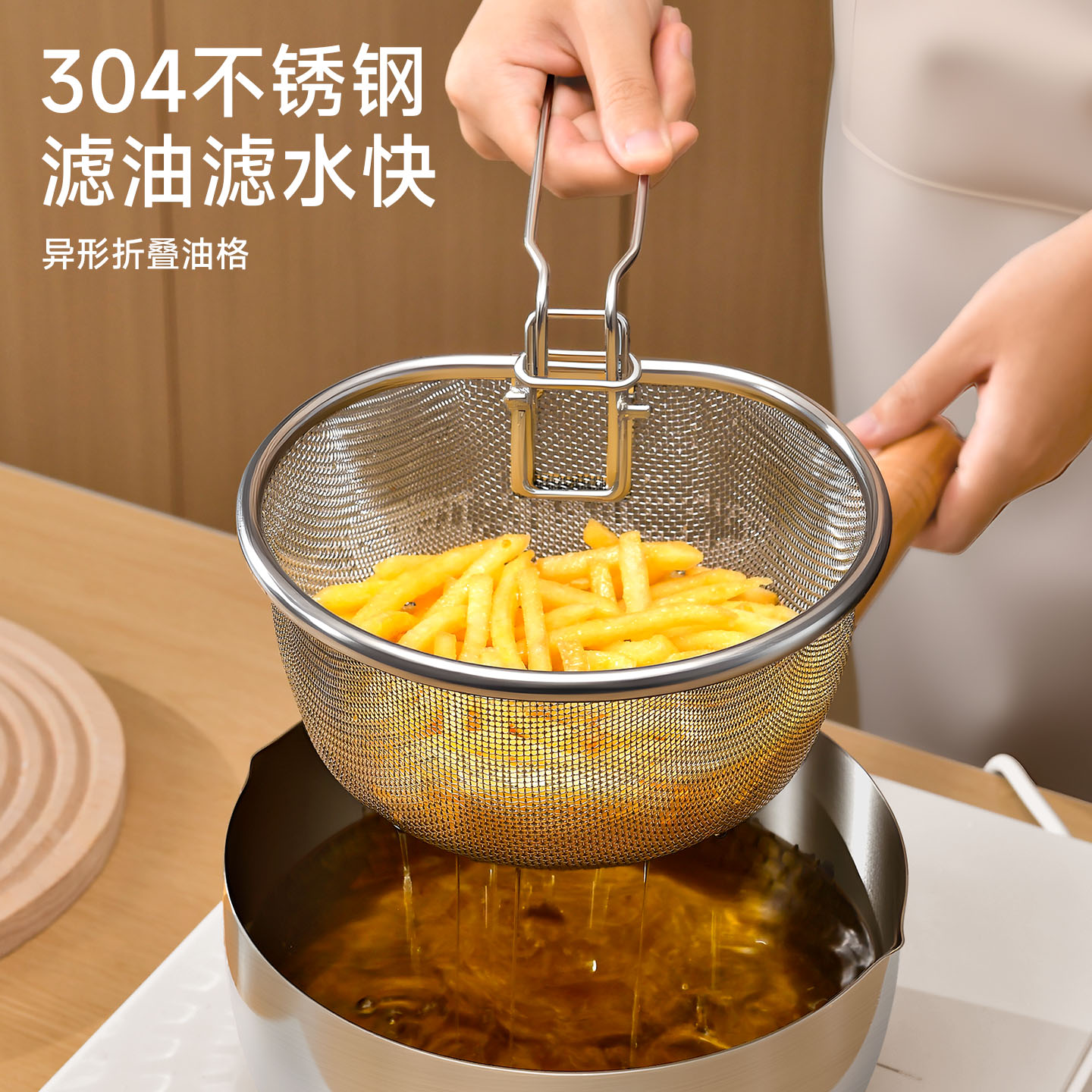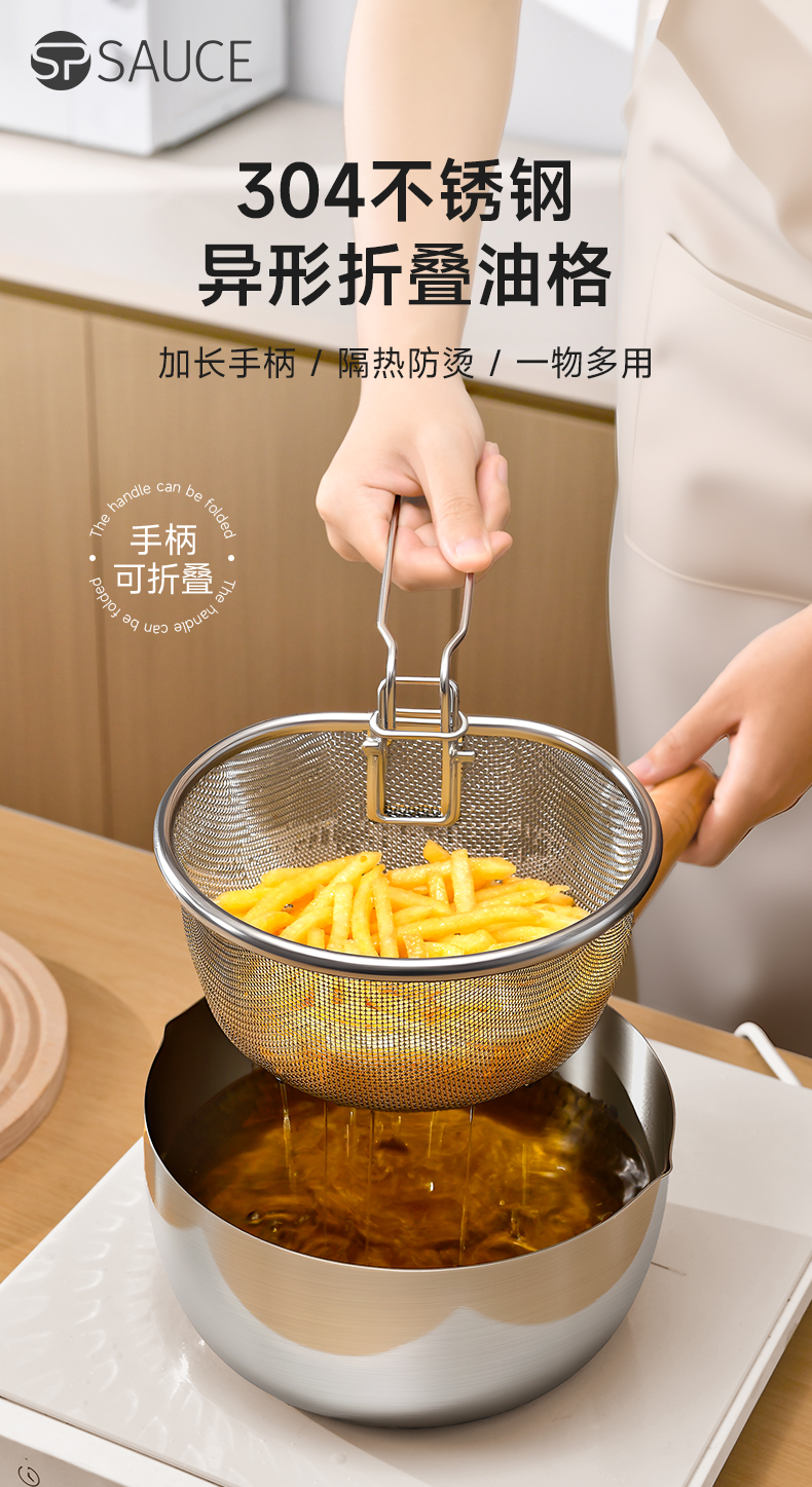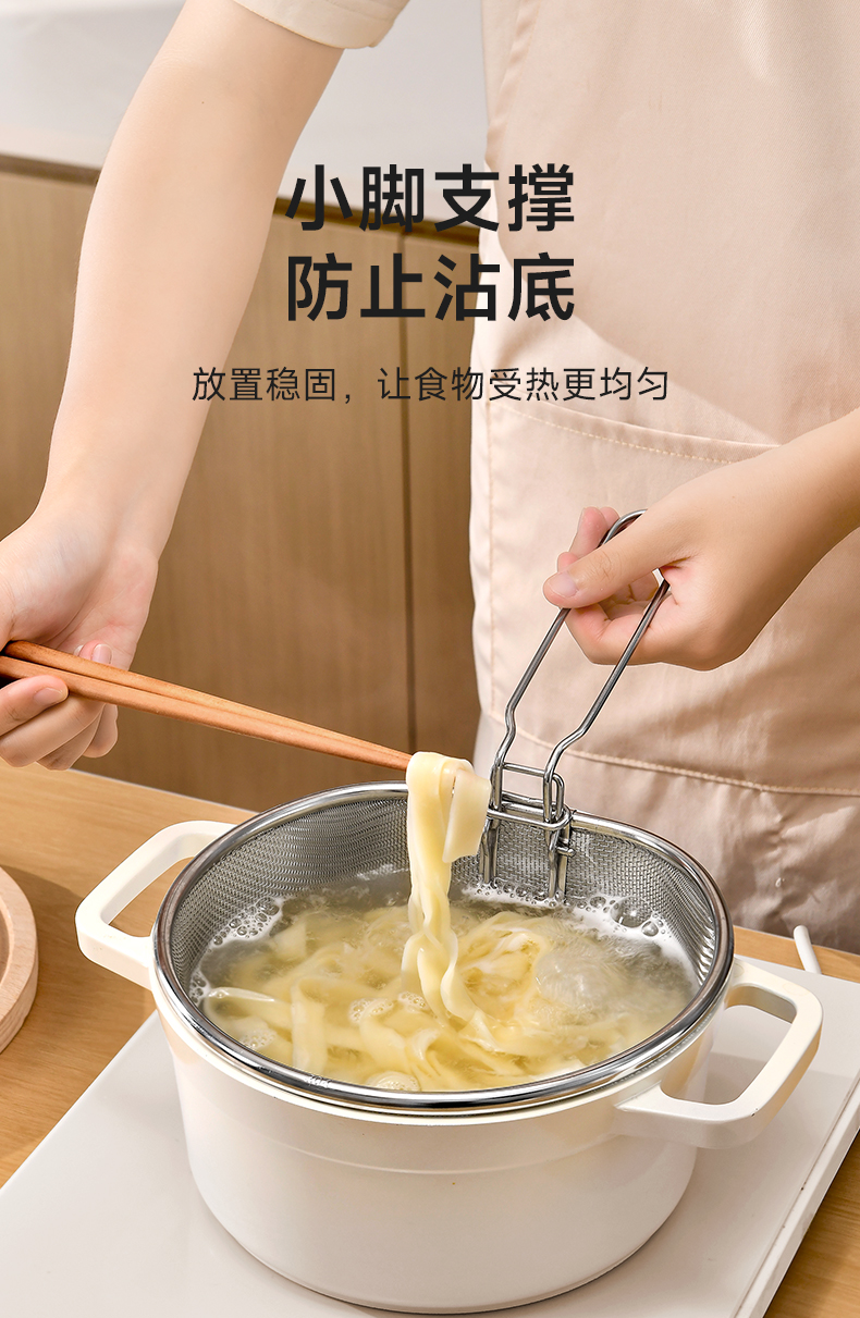异形折叠油格21cm 不锈钢可折叠油格家用火锅漏勺厨房漏网过滤网多功能捞面条勺油炸漏筛