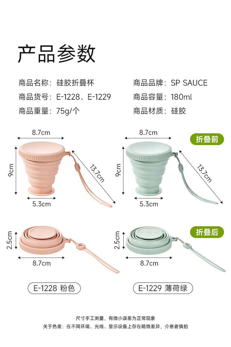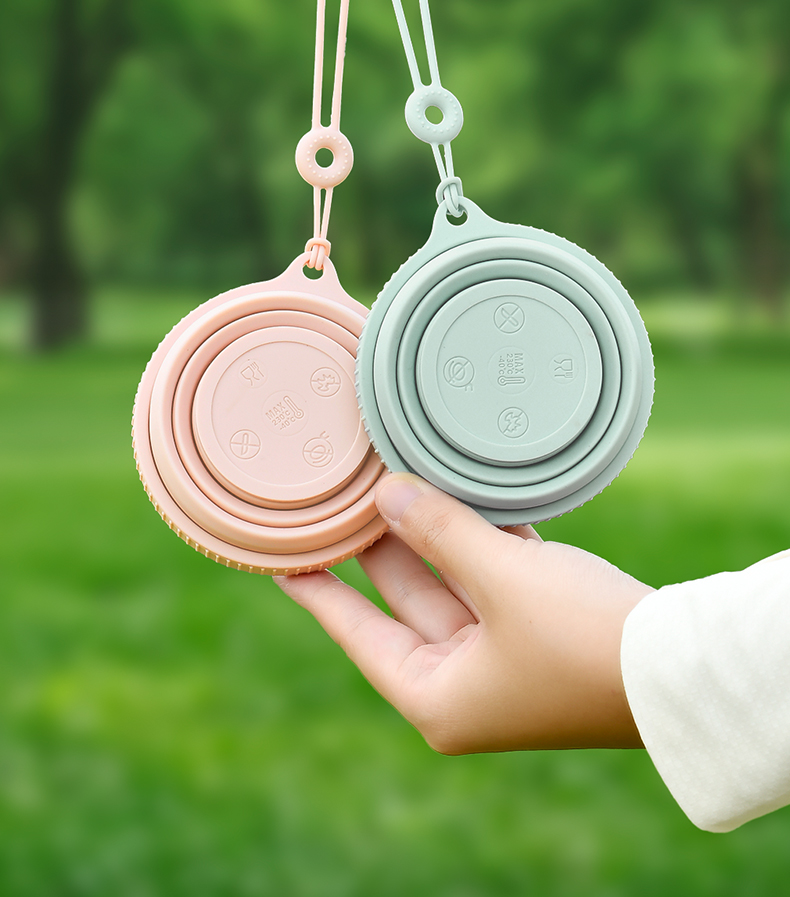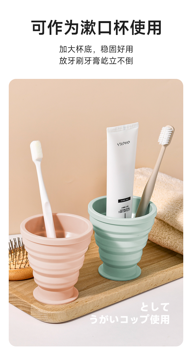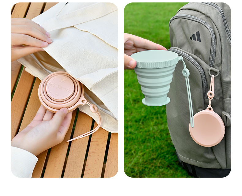 硅胶折叠杯 可折叠杯硅胶户外露营带盖压缩水杯便携可伸缩漱口杯