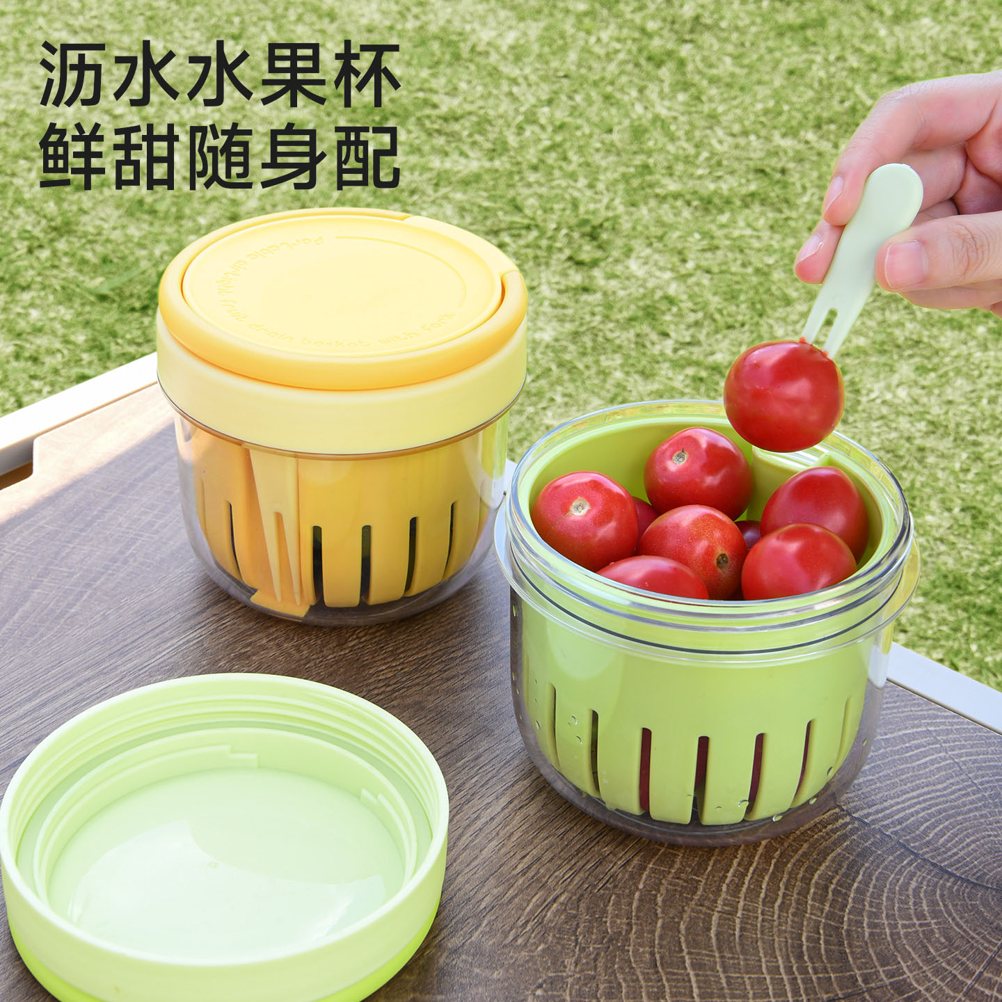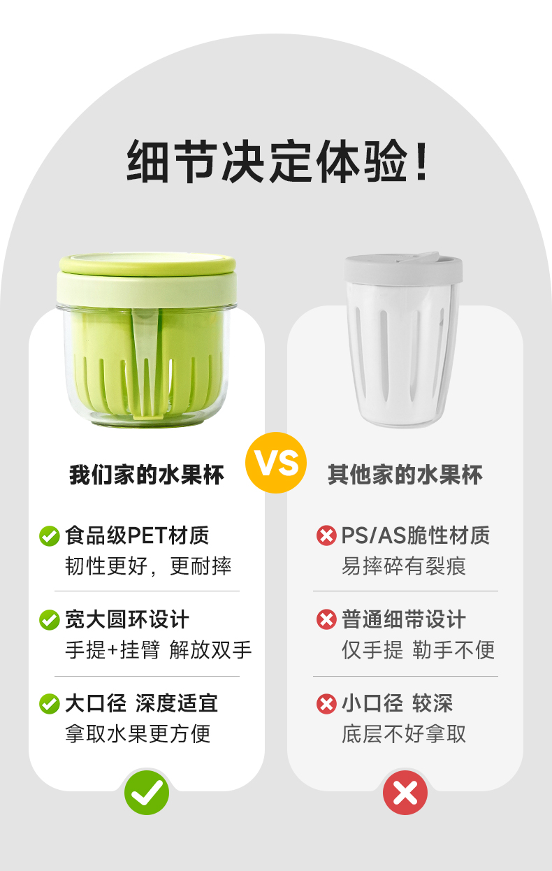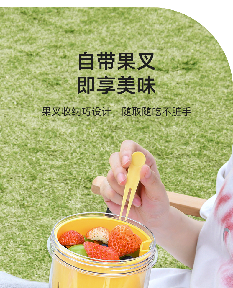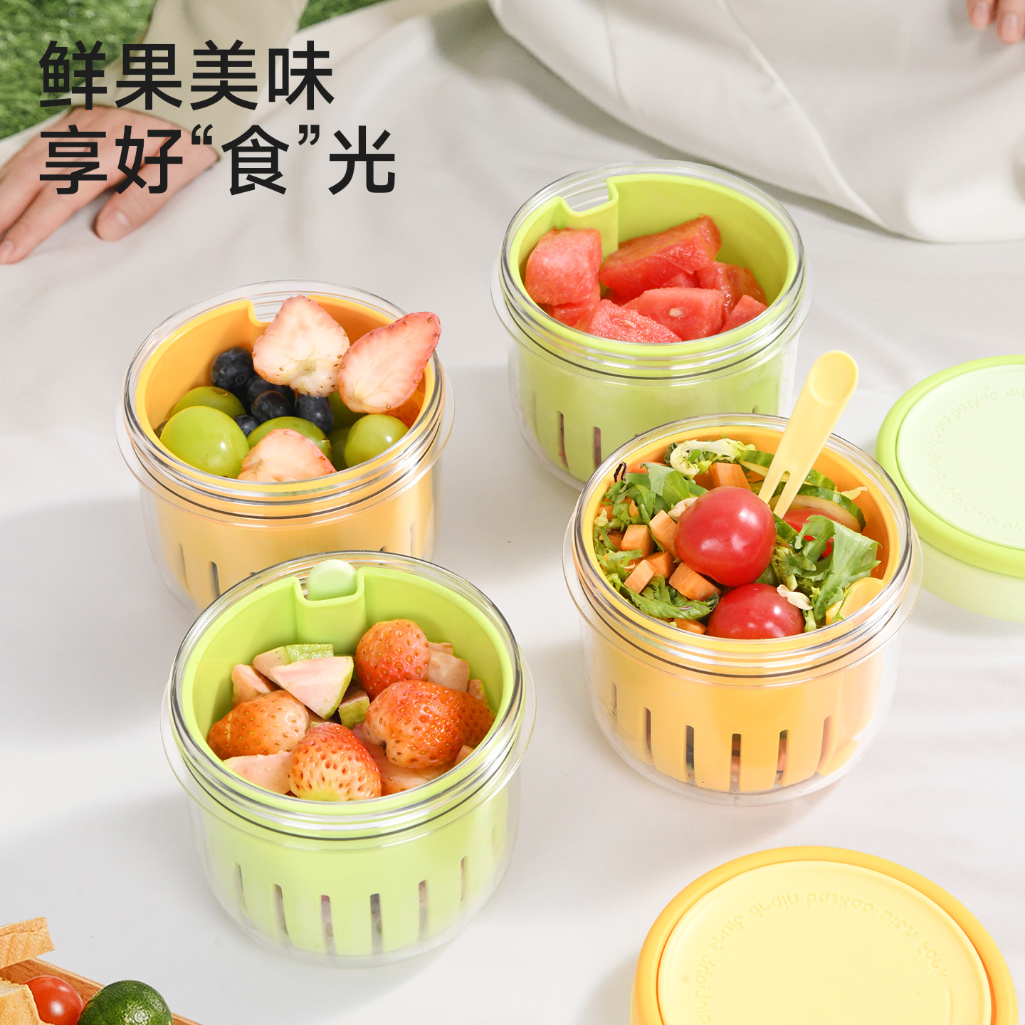 便携沥水水果杯 水果杯便携式外出带叉盒可沥水食品级高颜值防尘密封