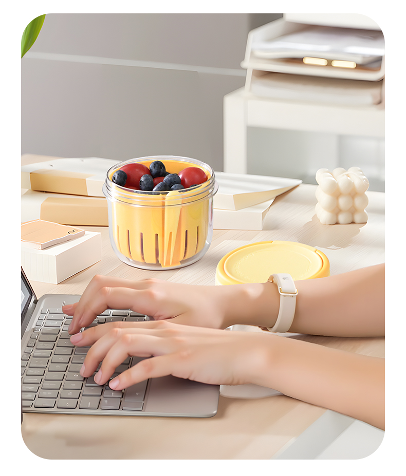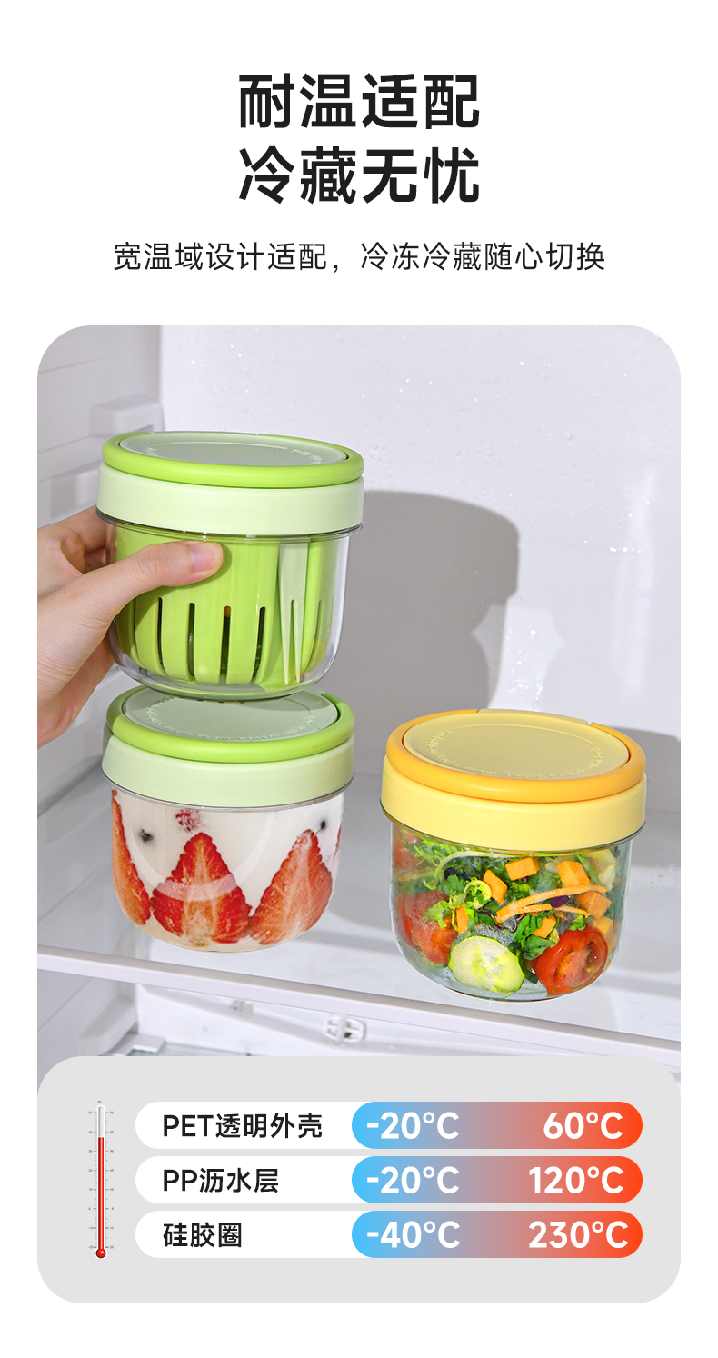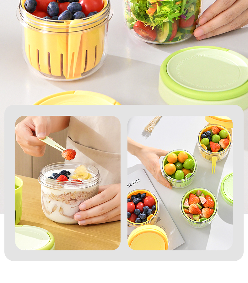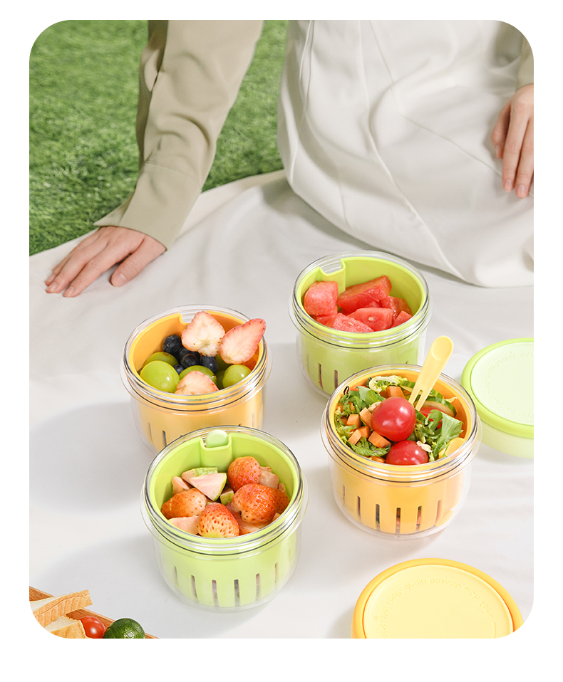 便携沥水水果杯 水果杯便携式外出带叉盒可沥水食品级高颜值防尘密封