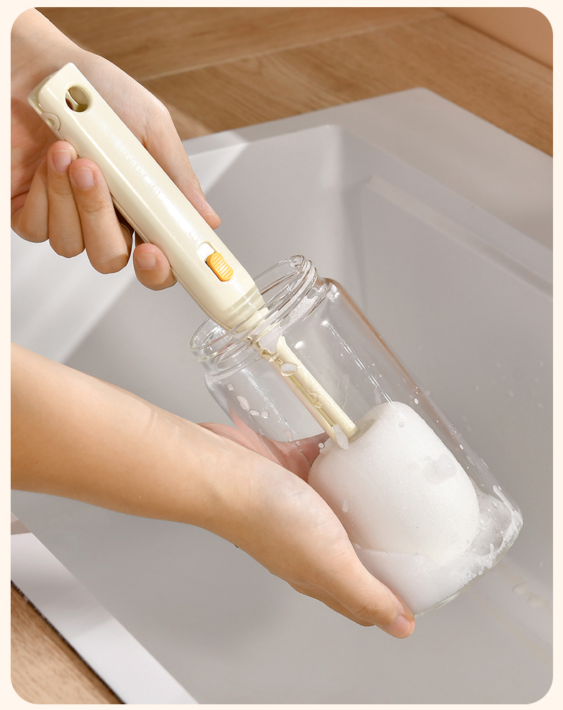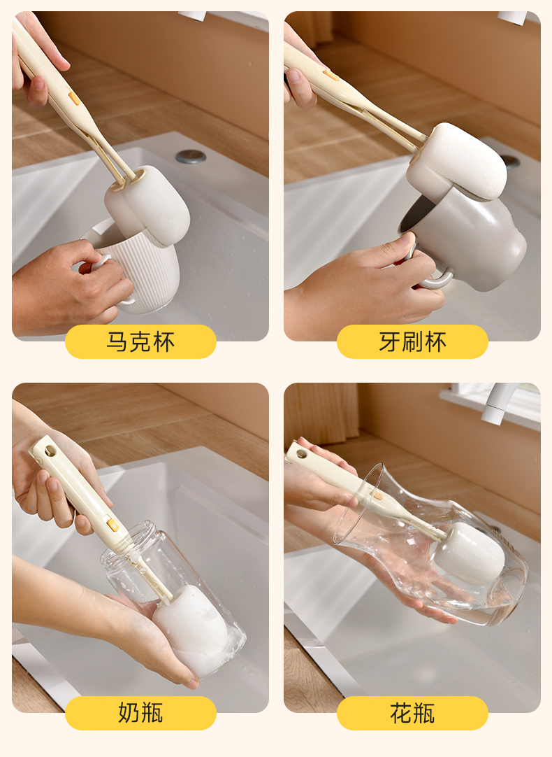 二合一杯刷 夹洗杯子神器U型大头海绵清洁刷洗奶瓶水杯无死角长柄刷