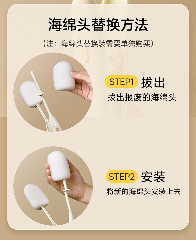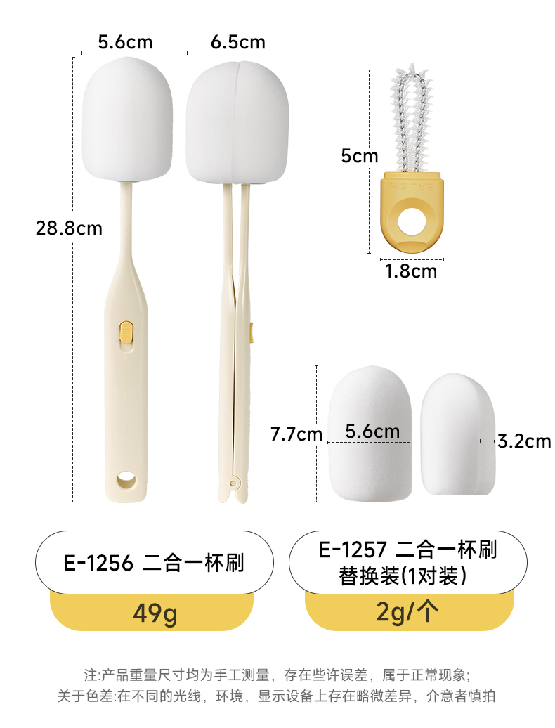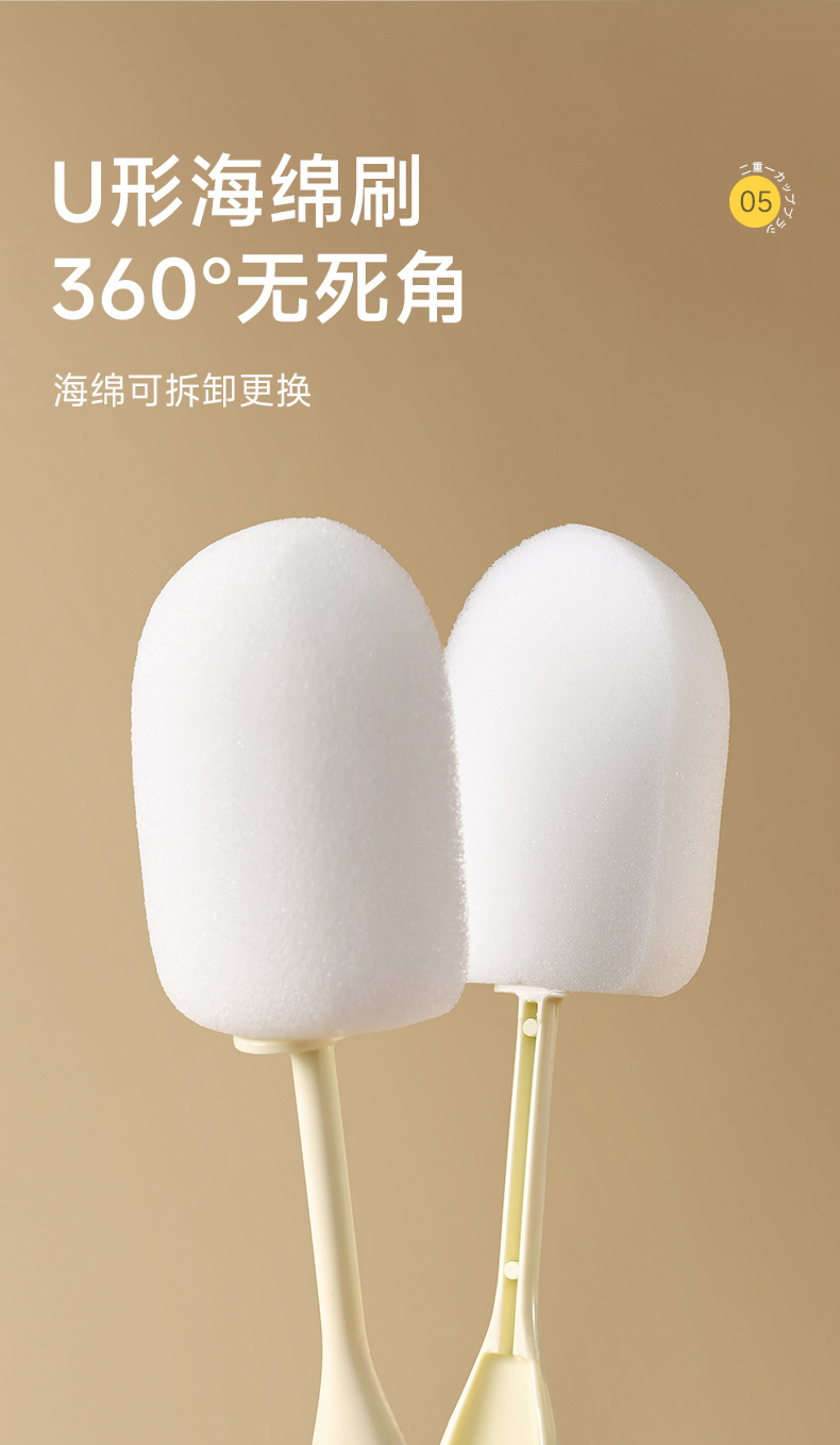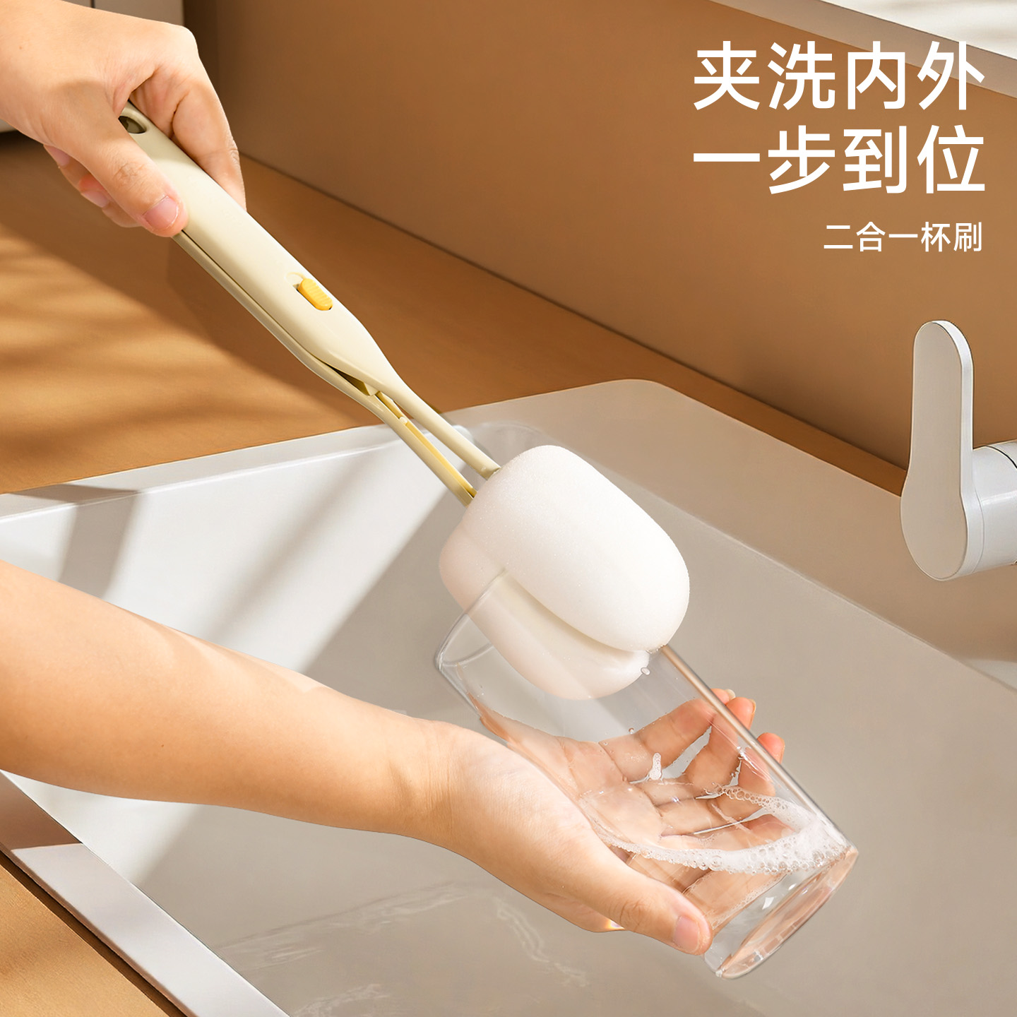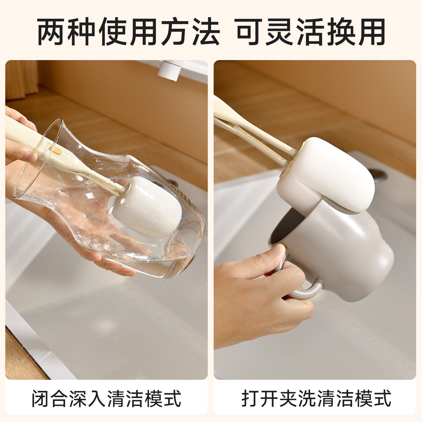 二合一杯刷替换装(一对装) 夹洗杯子神器U型大头海绵清洁刷洗奶瓶水杯无死角长柄刷