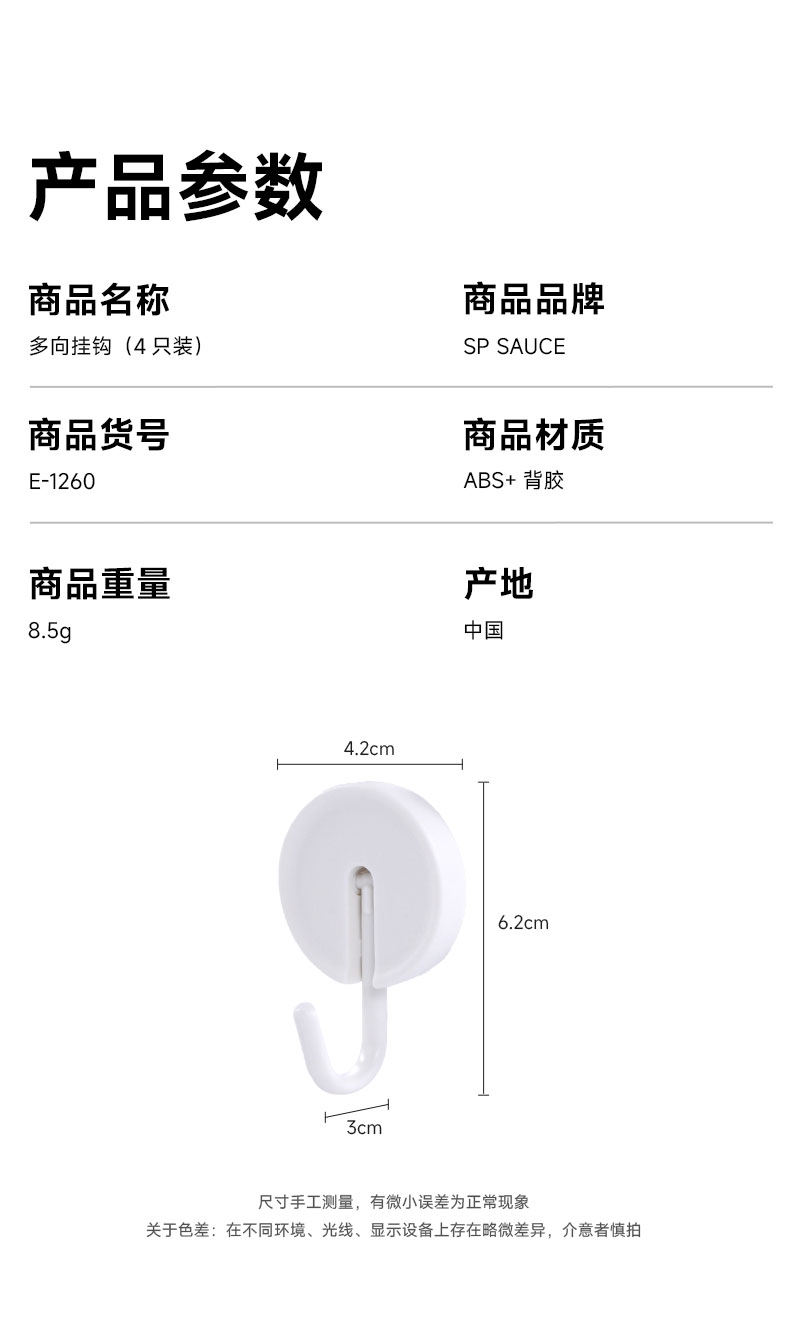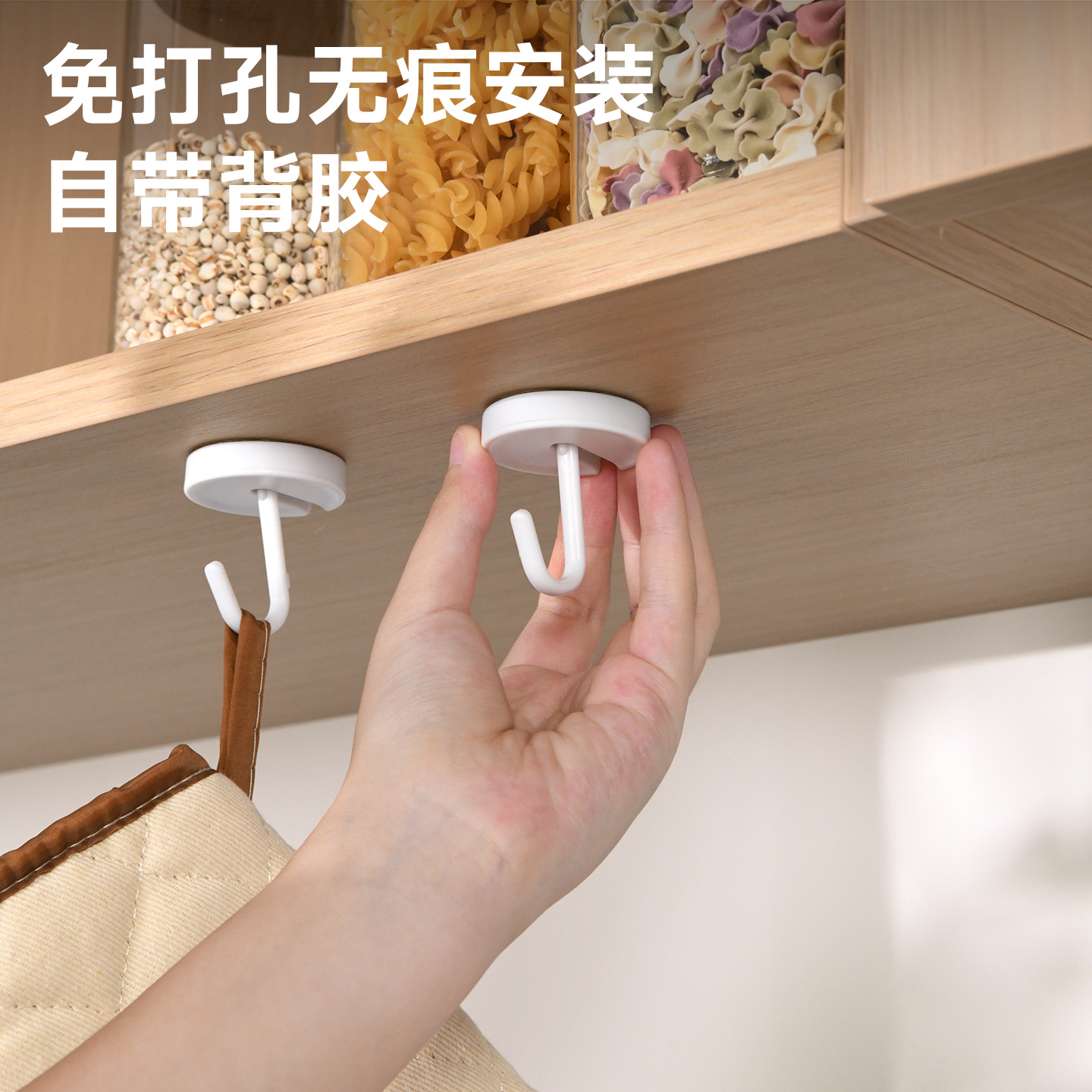 多向挂钩(4只装) 书包挂钩桌边学生宿舍课桌侧收纳钩子免打孔桌下包包钥匙粘钩挂架