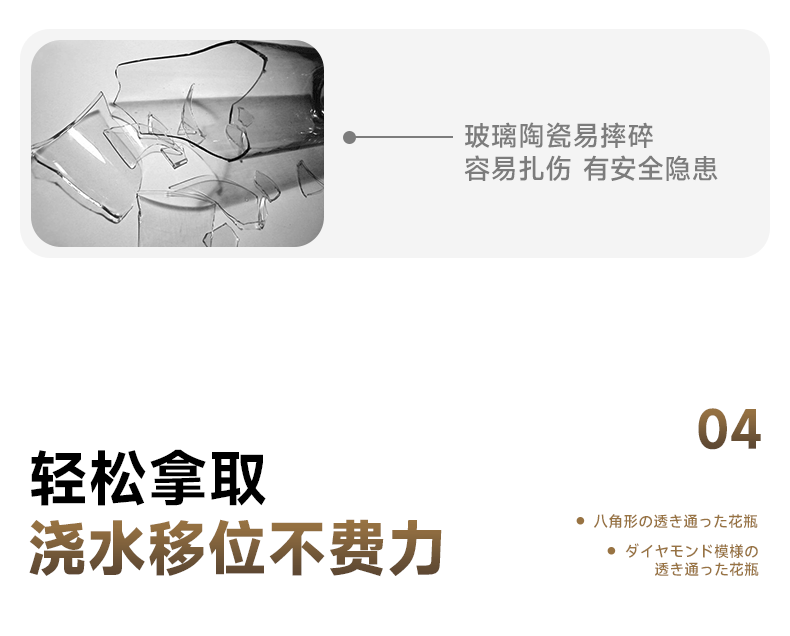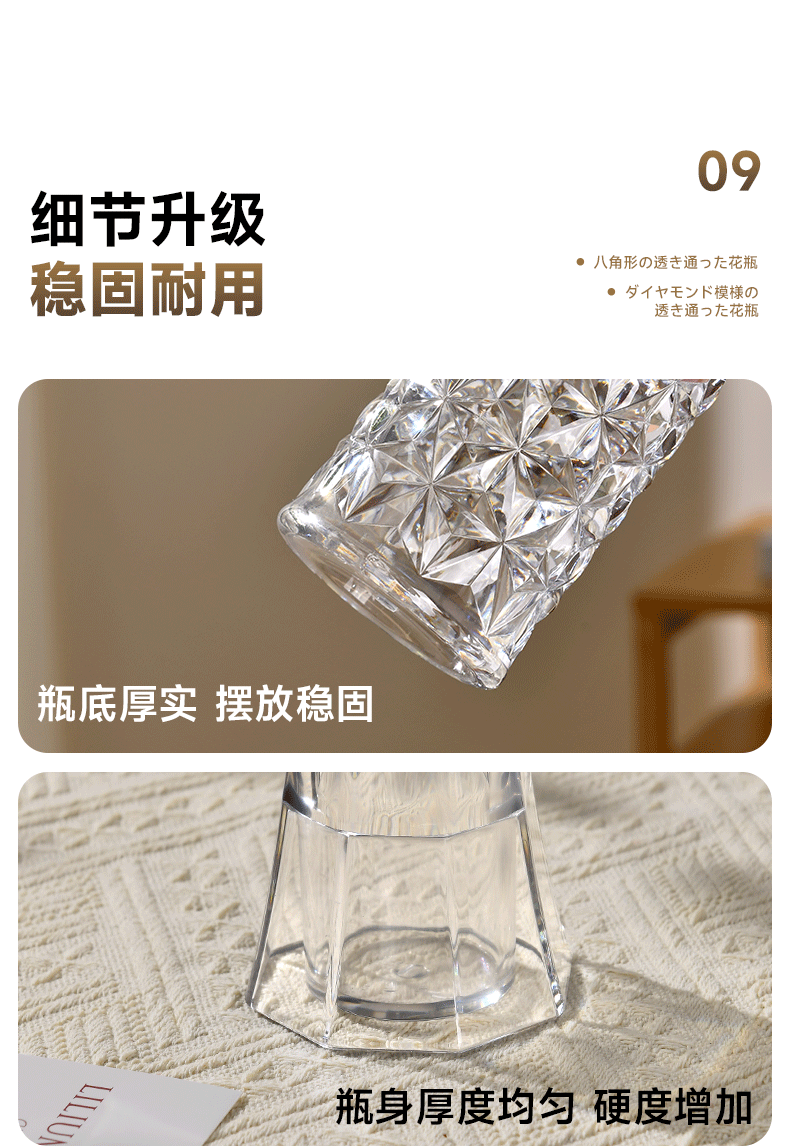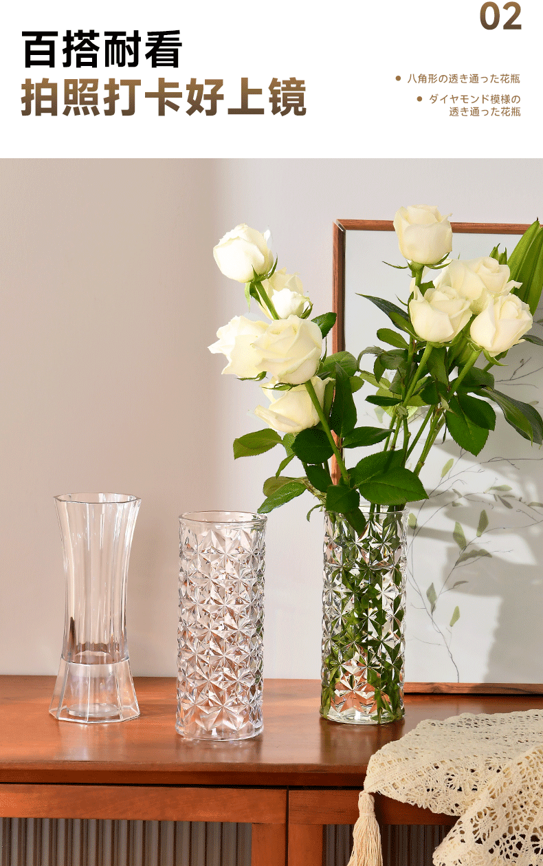 八角高透花瓶 塑料高透防摔花瓶水养水培插花富贵竹透明方形装饰客厅小卧室玄关