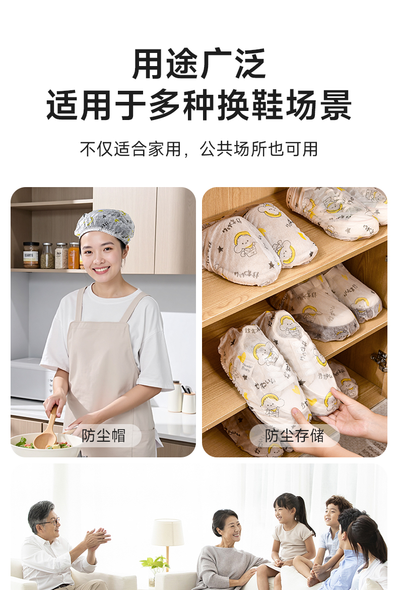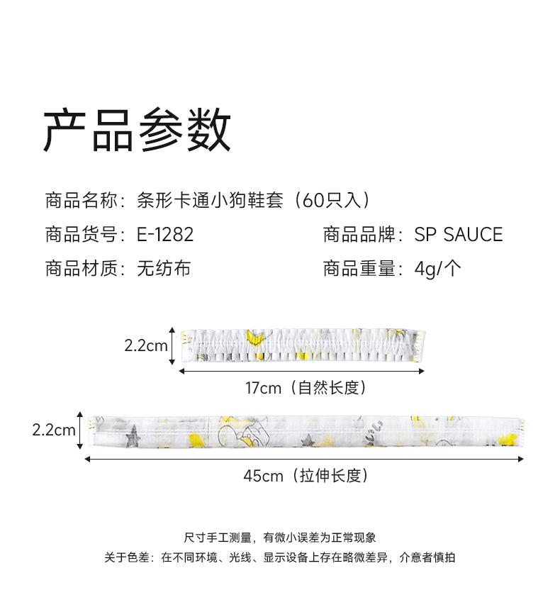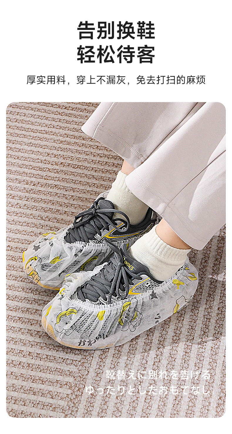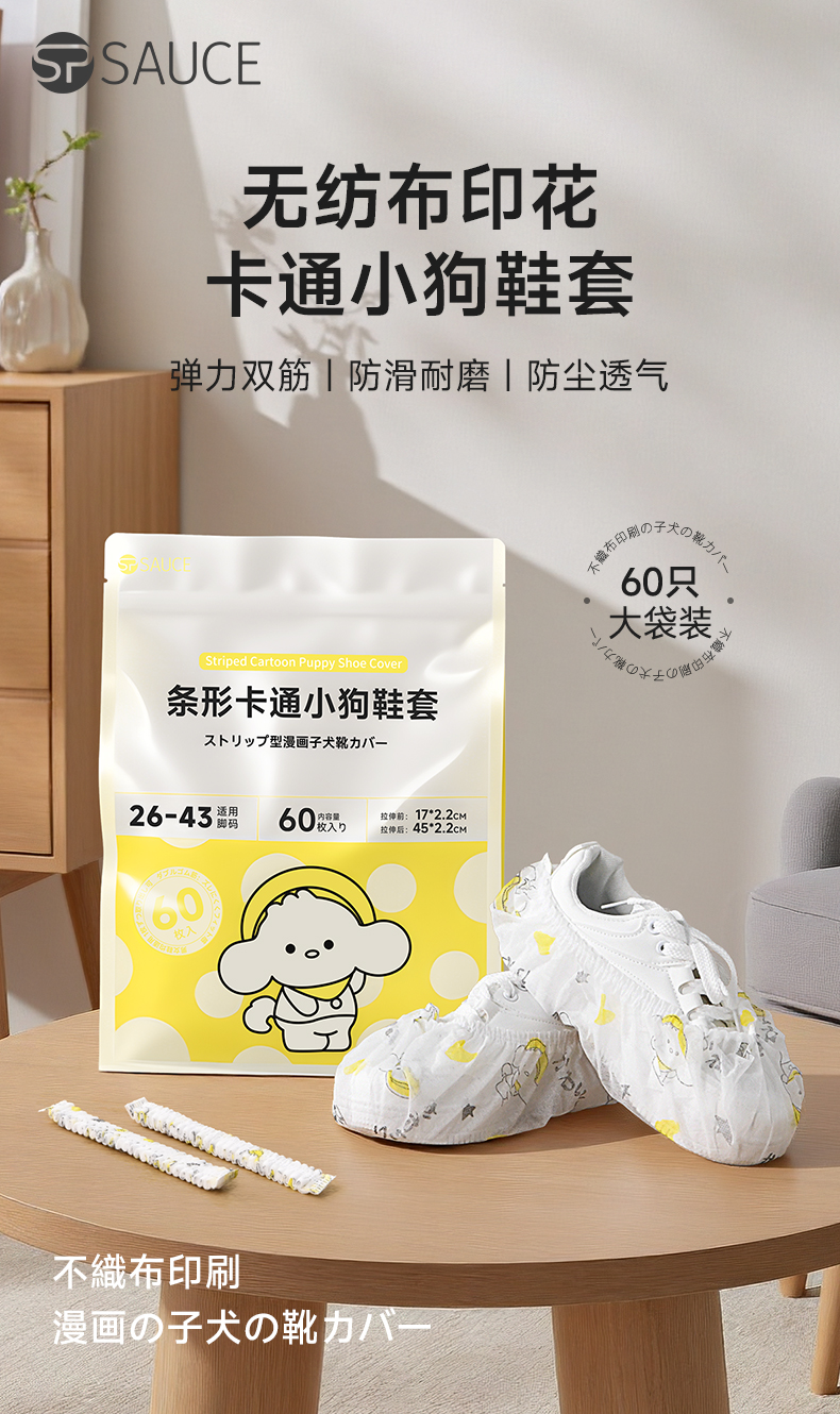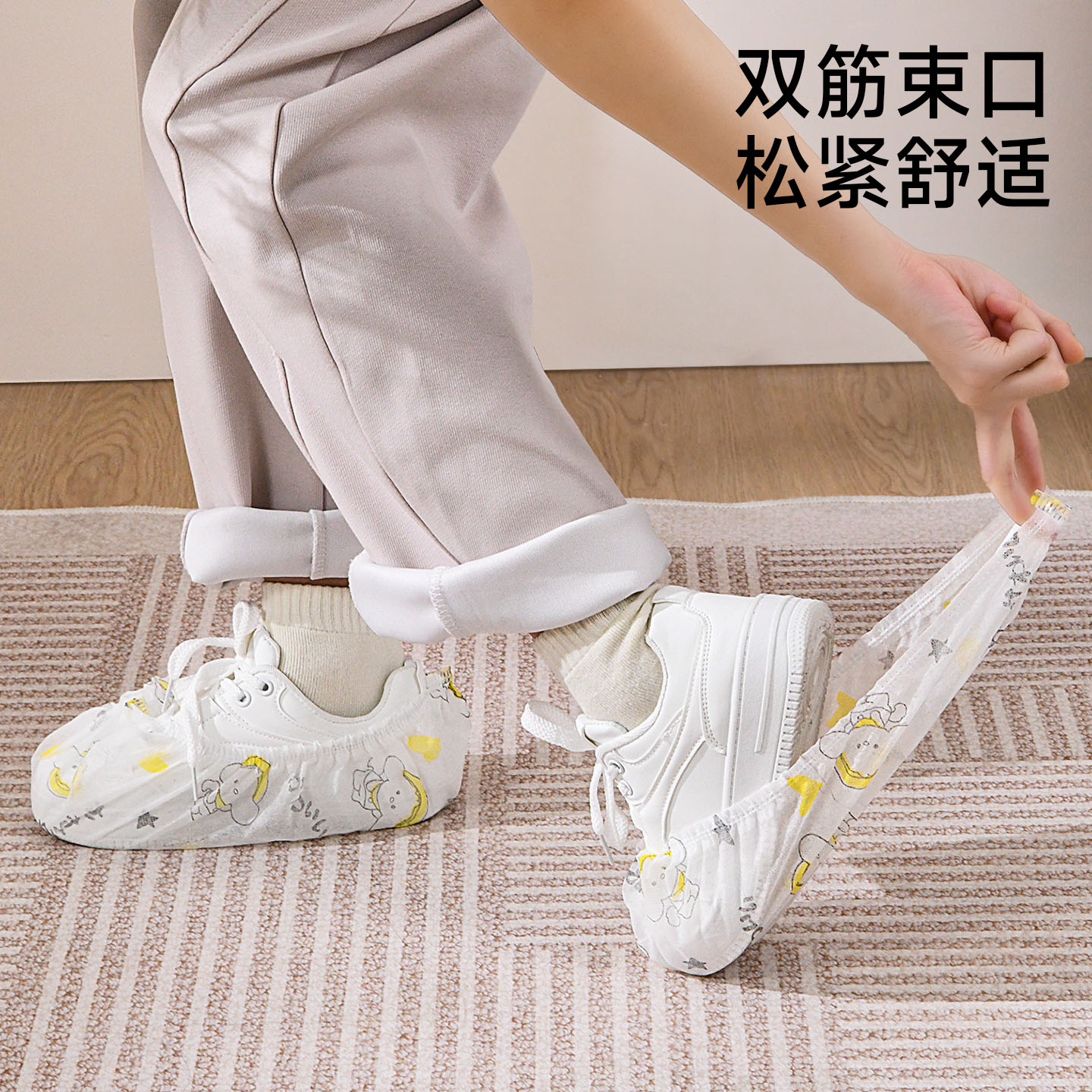 条形卡通小狗鞋套(60只入) 一次性鞋套60只无纺布加厚耐磨防滑反复家用学生成人爬爬垫脚鞋套
