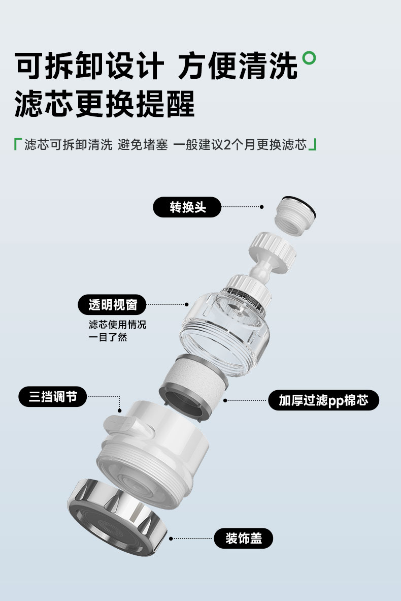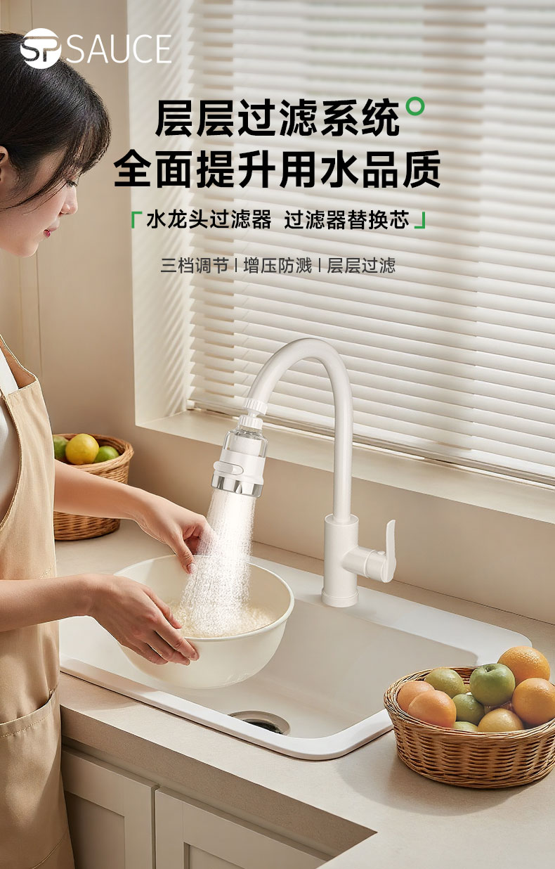 过滤器替换芯(4只装) 水龙头过滤器防溅花洒延伸器厨房通用喷头自来水滤水器