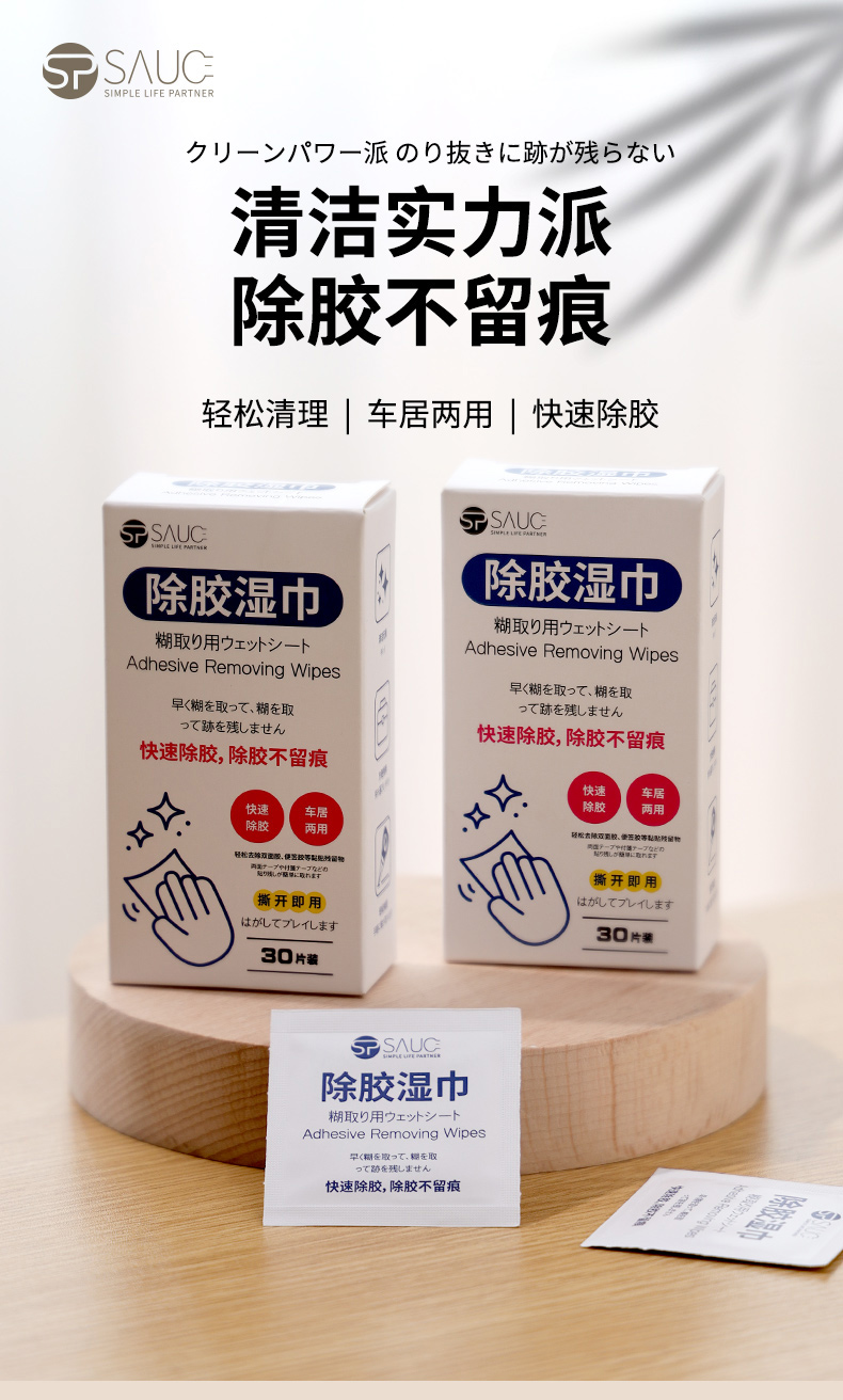 除胶湿巾(30片装) 除胶湿巾双面去除残胶去胶神器一次性清洁剂家用万能擦玻璃小包便携湿纸巾