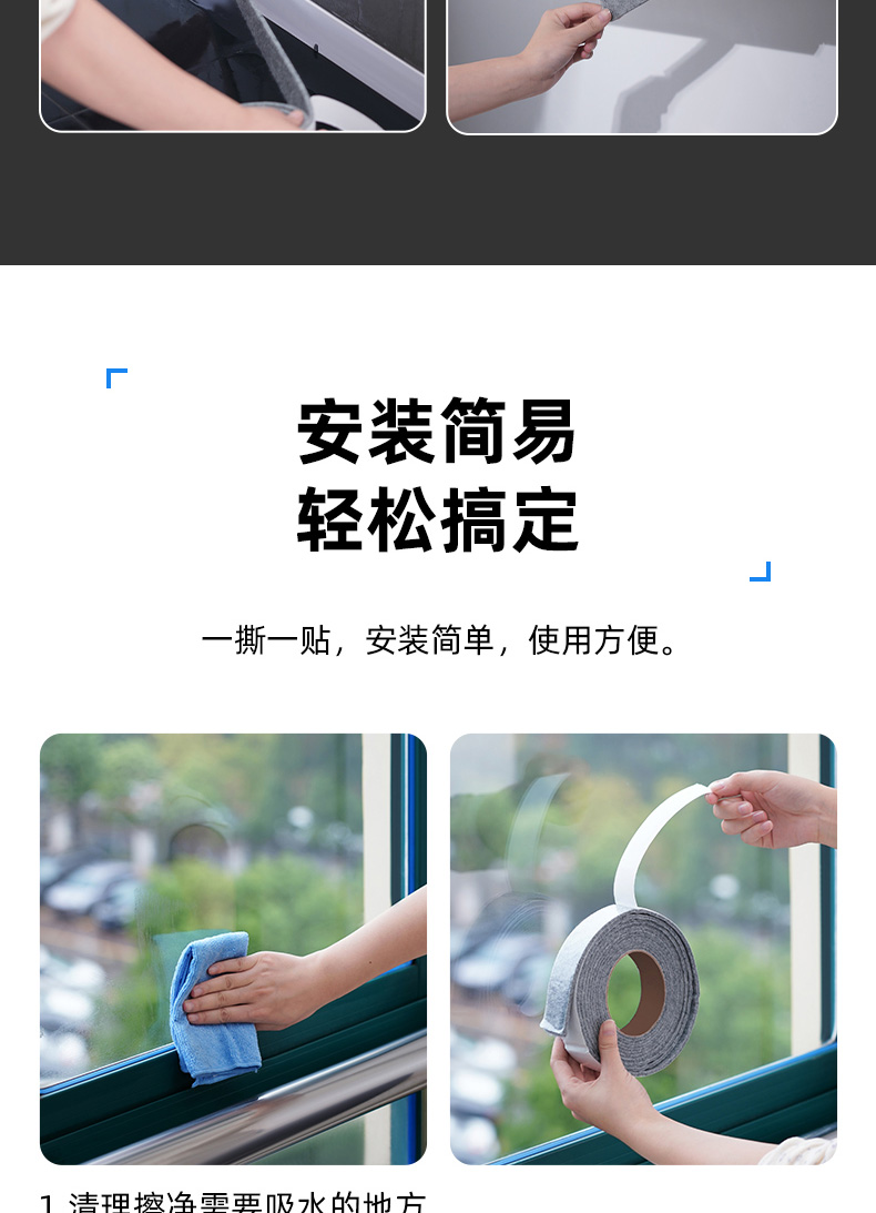 窗户玻璃吸水贴(7cm*50CM) 家用窗户玻璃吸水贴加厚防冷凝水吸水条防水海绵窗台淌水结露神器