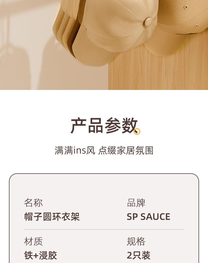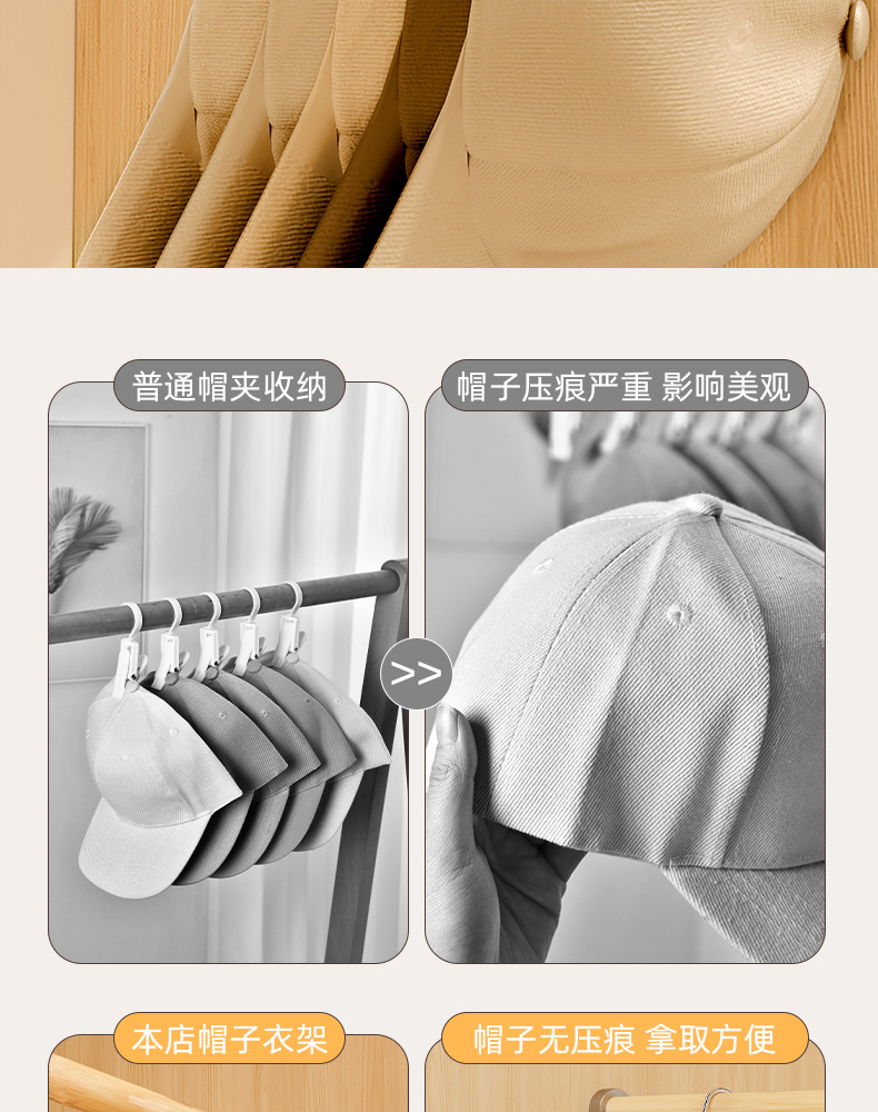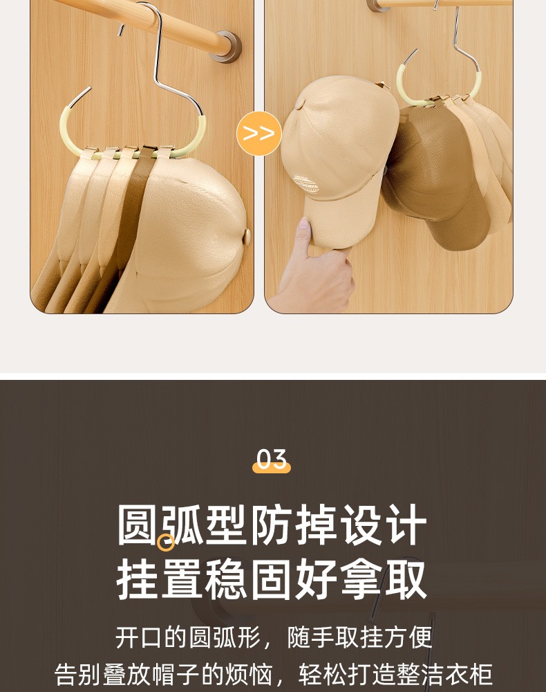 帽子圆环衣架(2只装) 帽子收纳家用鸭舌棒球帽展示架宿舍柜内吊带衣架包包挂钩挂帽神器
