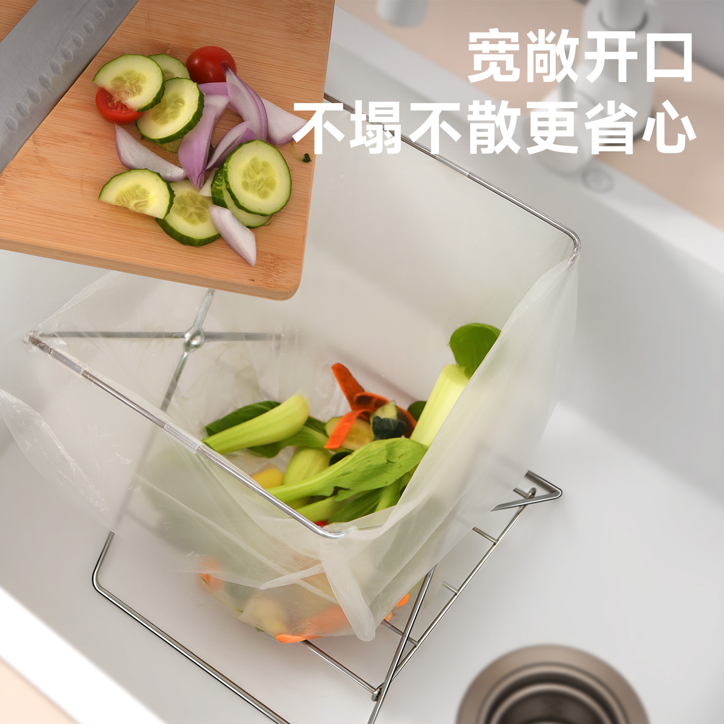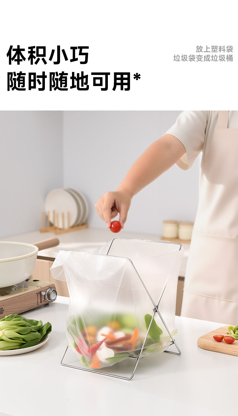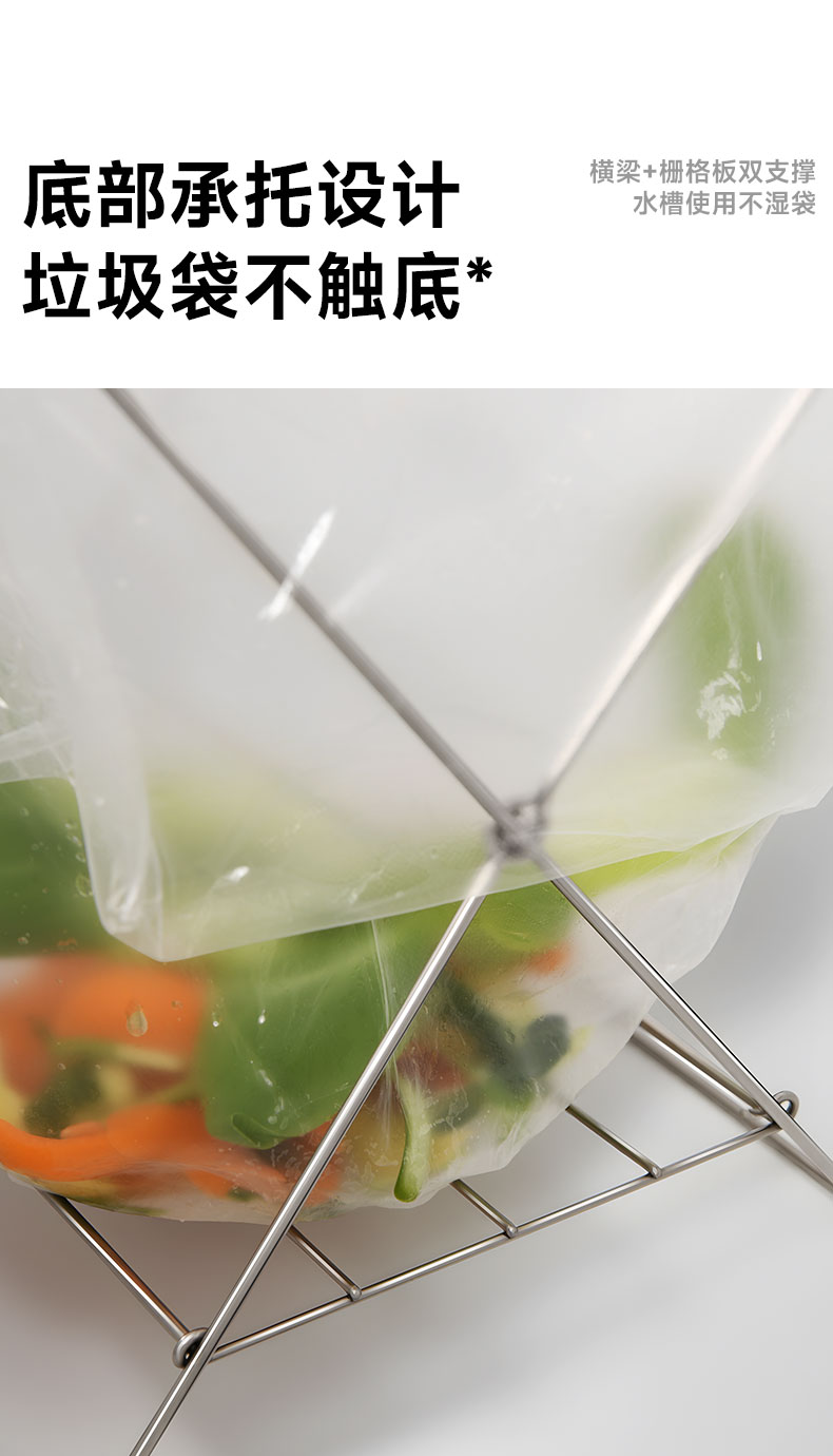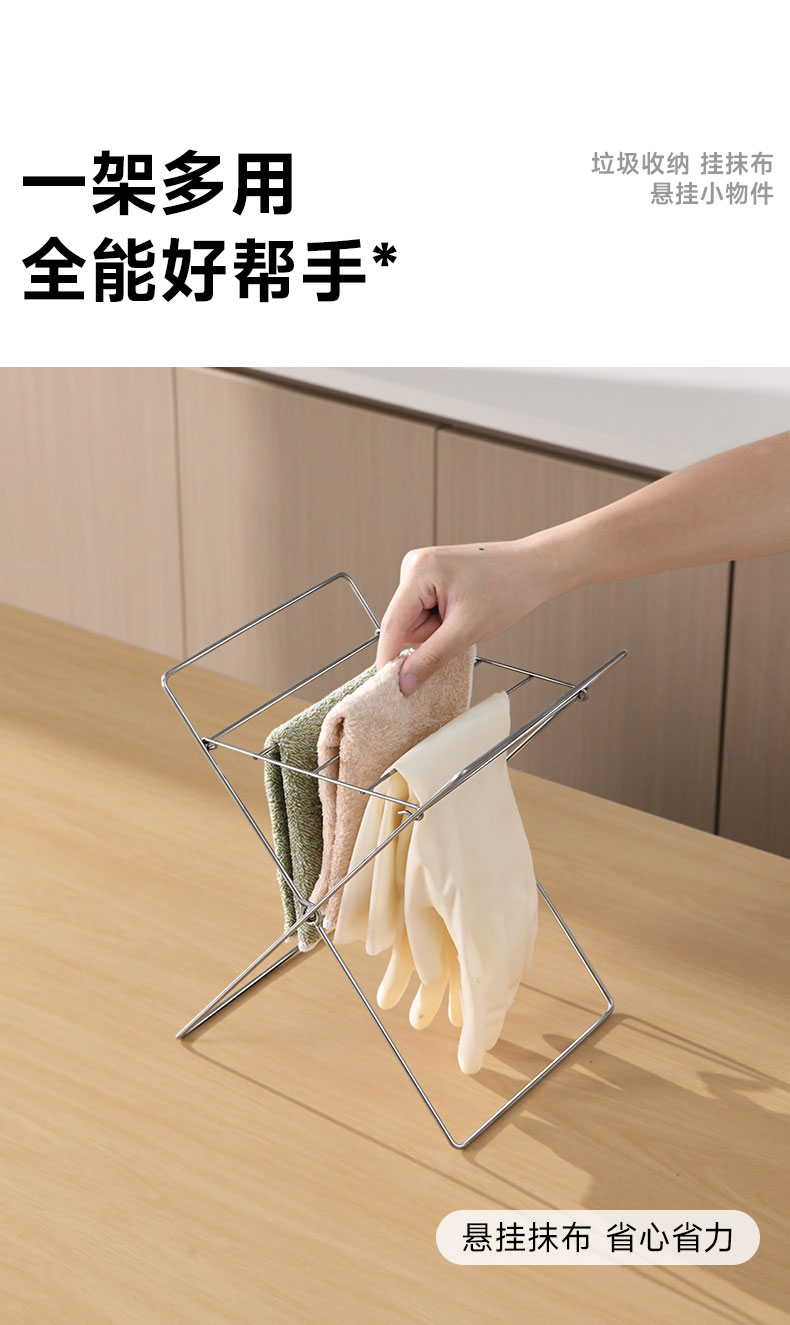 不锈钢折叠垃圾架 不锈钢折叠垃圾架厨房台面水槽垃圾分类塑料袋支架抹布架