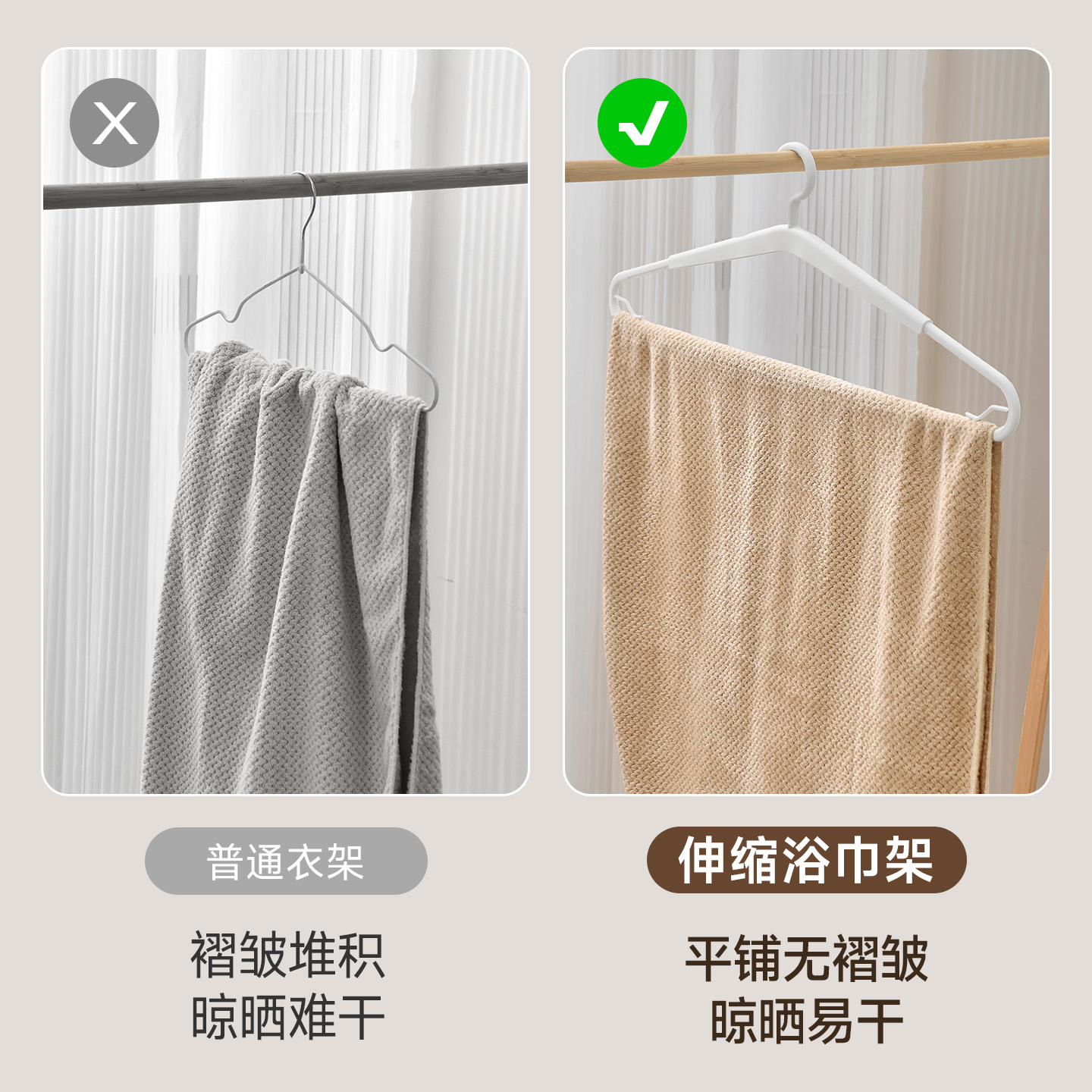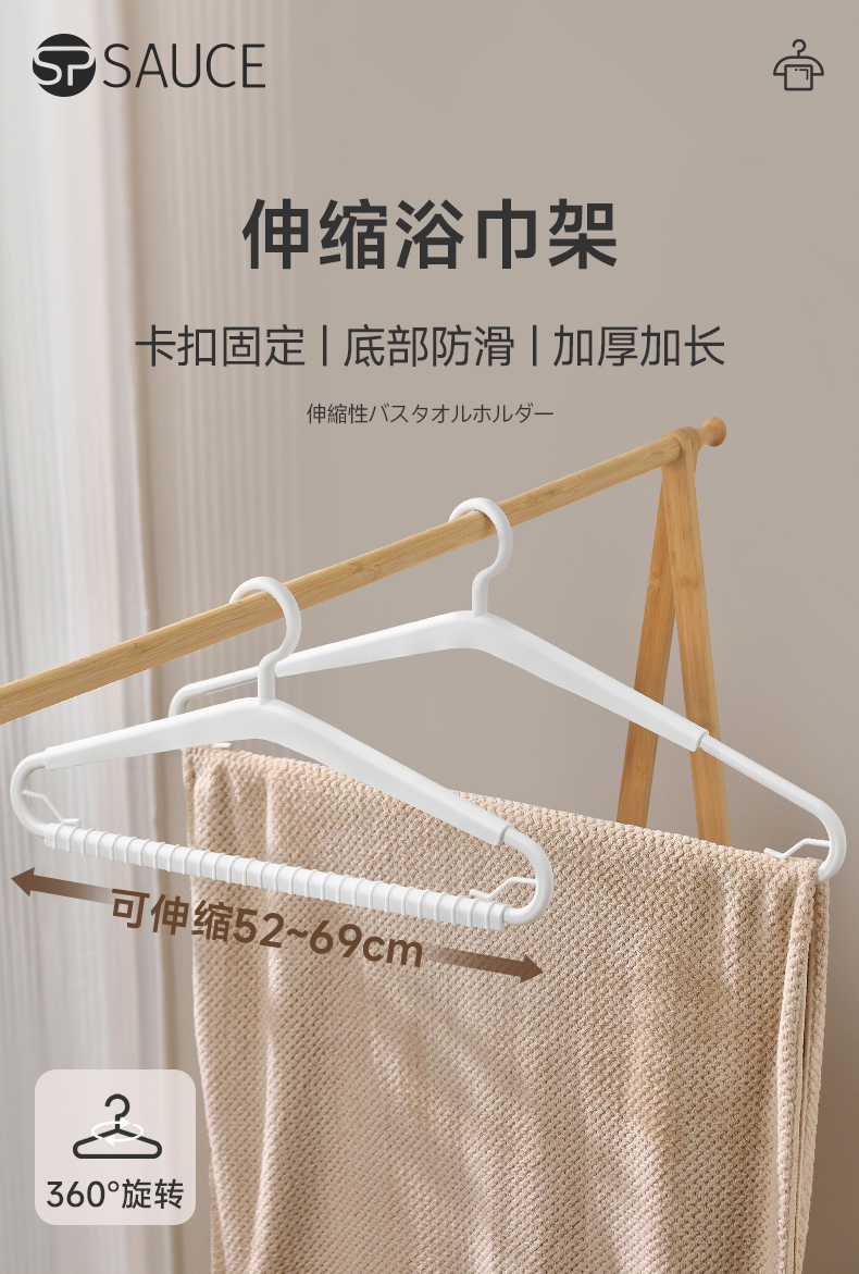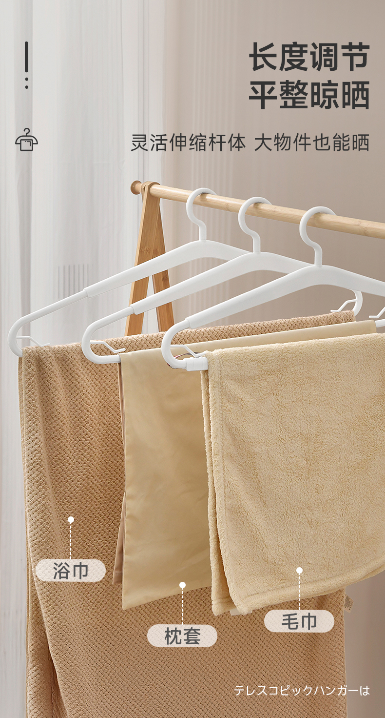 伸缩浴巾架 日本可伸缩晾被子浴巾专用无痕防滑大衣架家用毛巾床单被晾晒神器