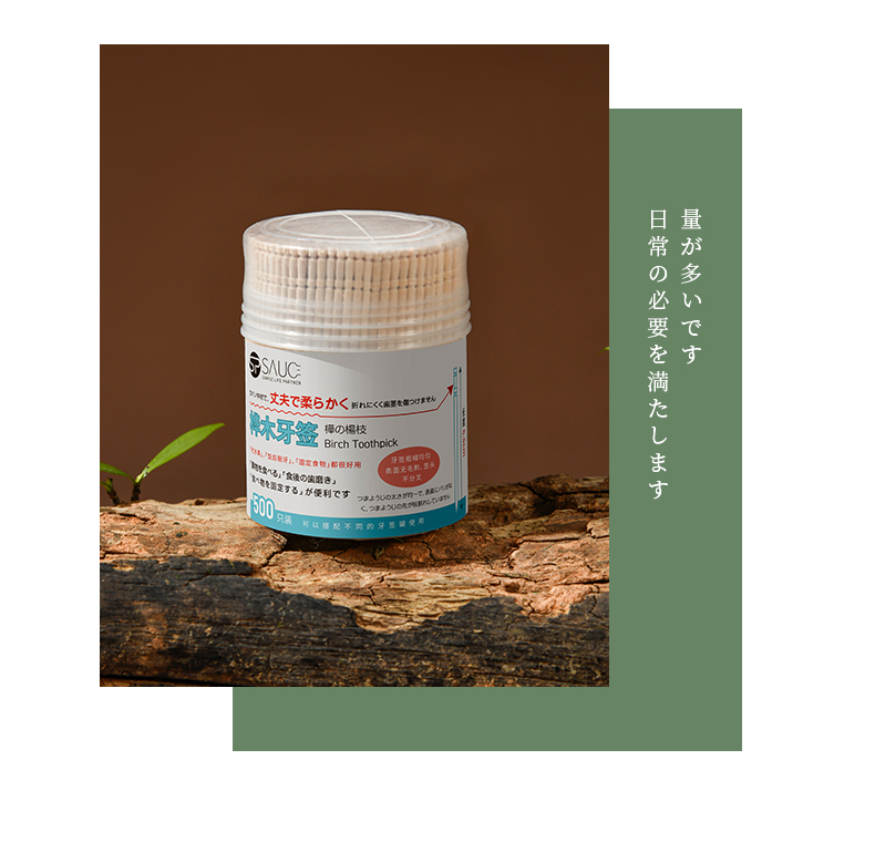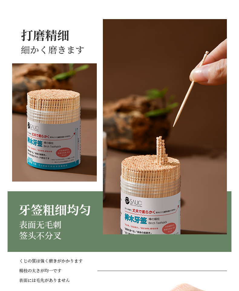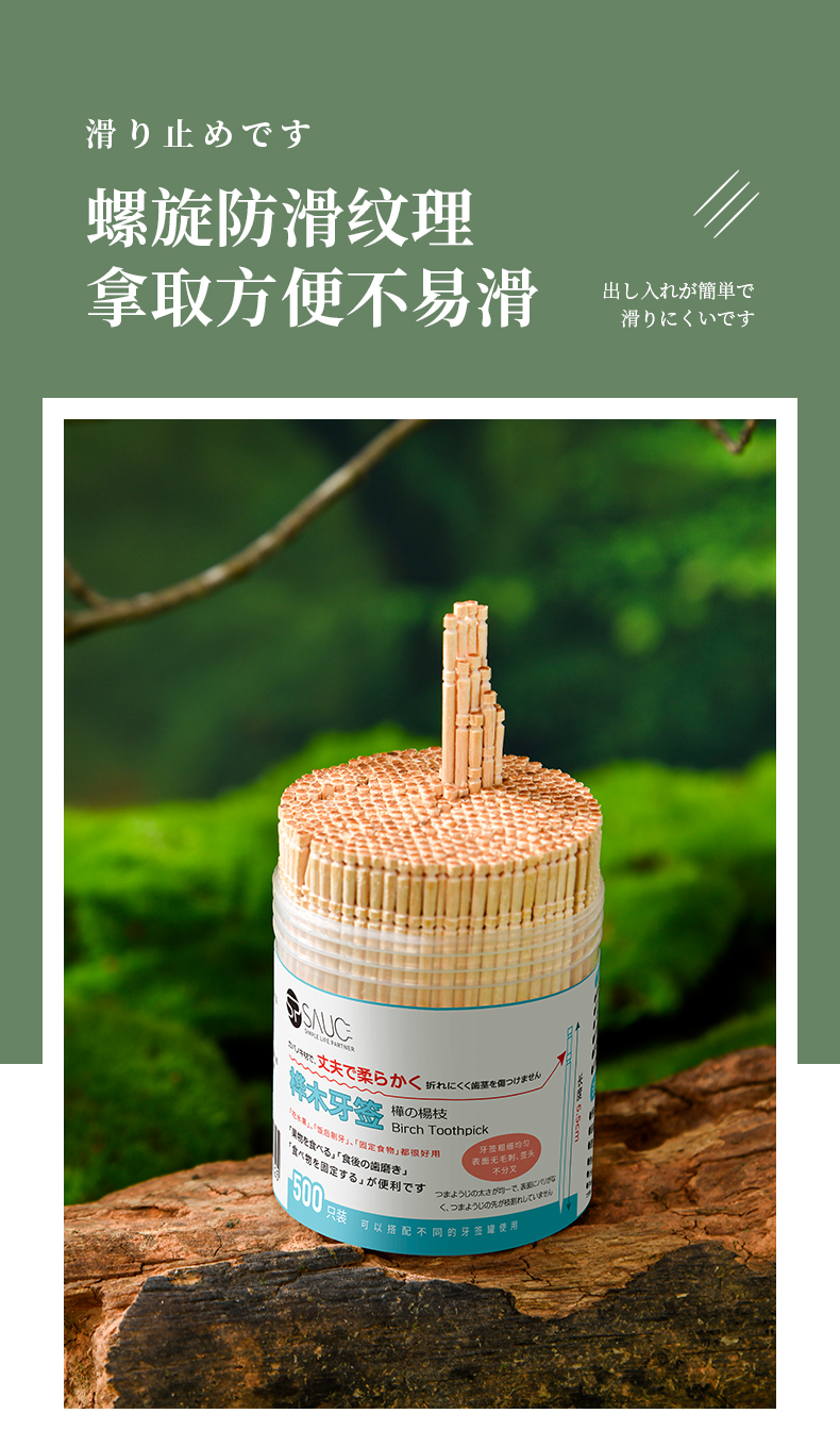 桦木牙签(500支) 一次性桦木牙签单头尖细实木剔牙棒加粗水果签带牙签桶