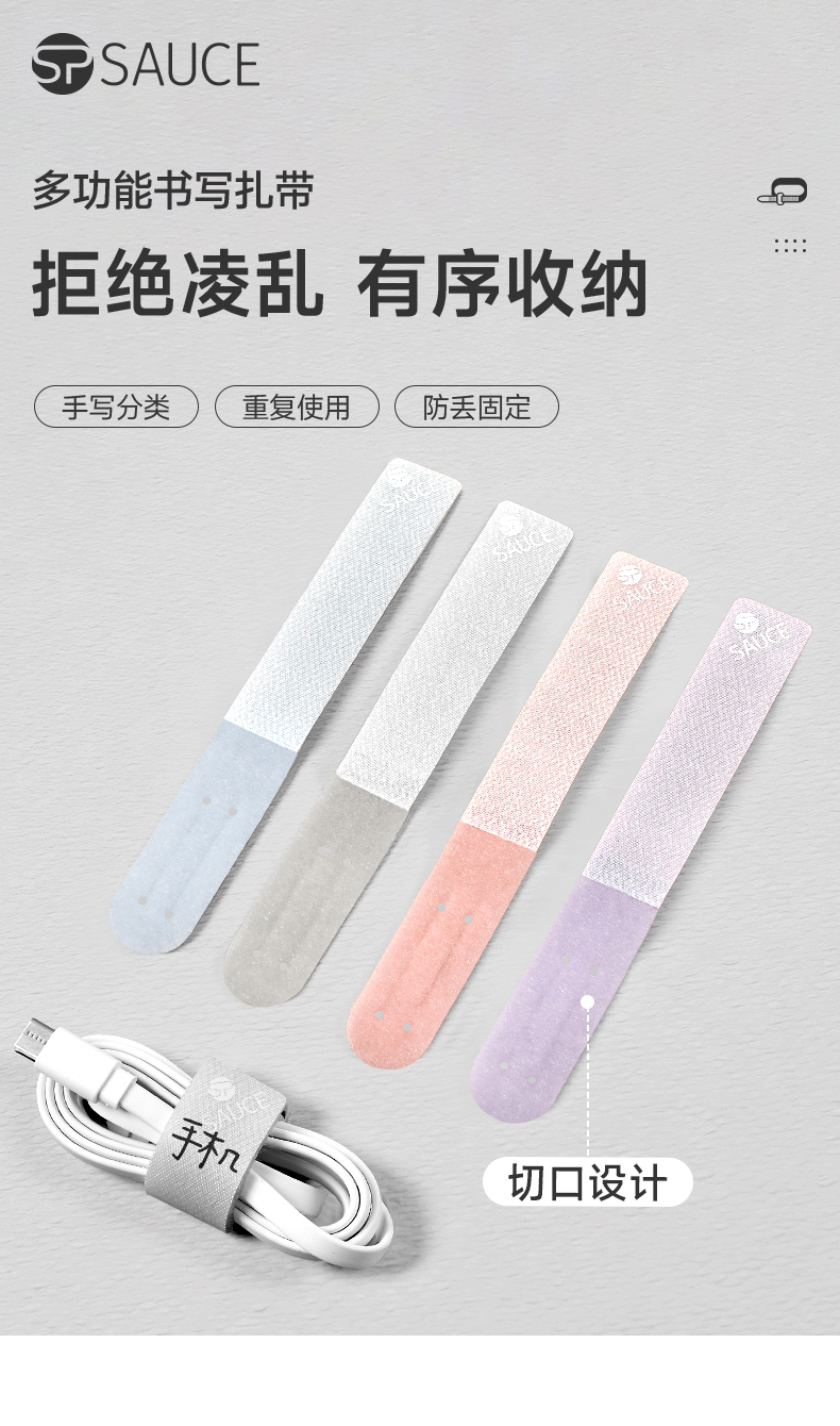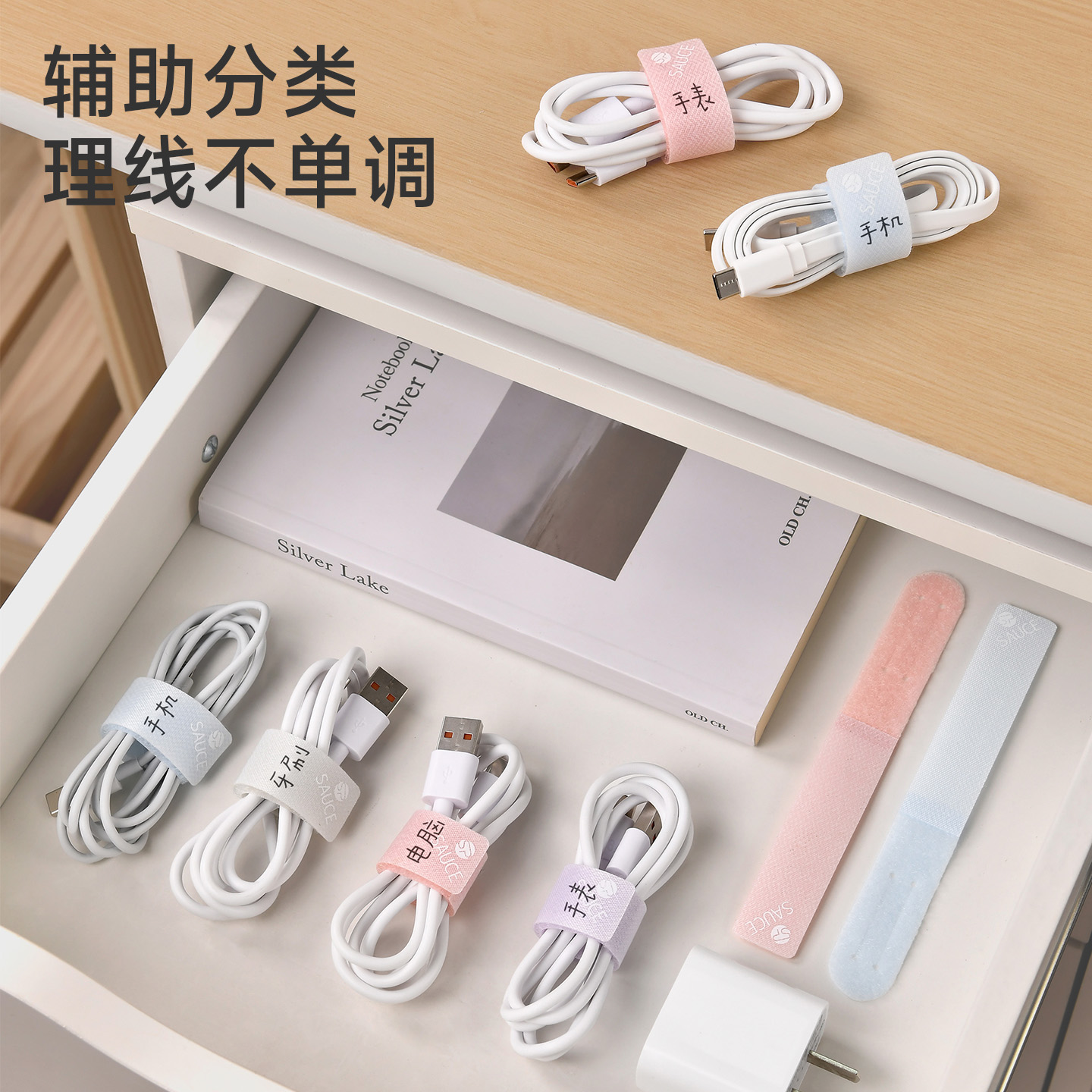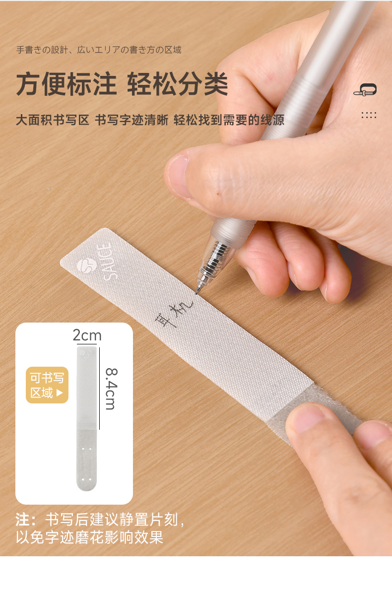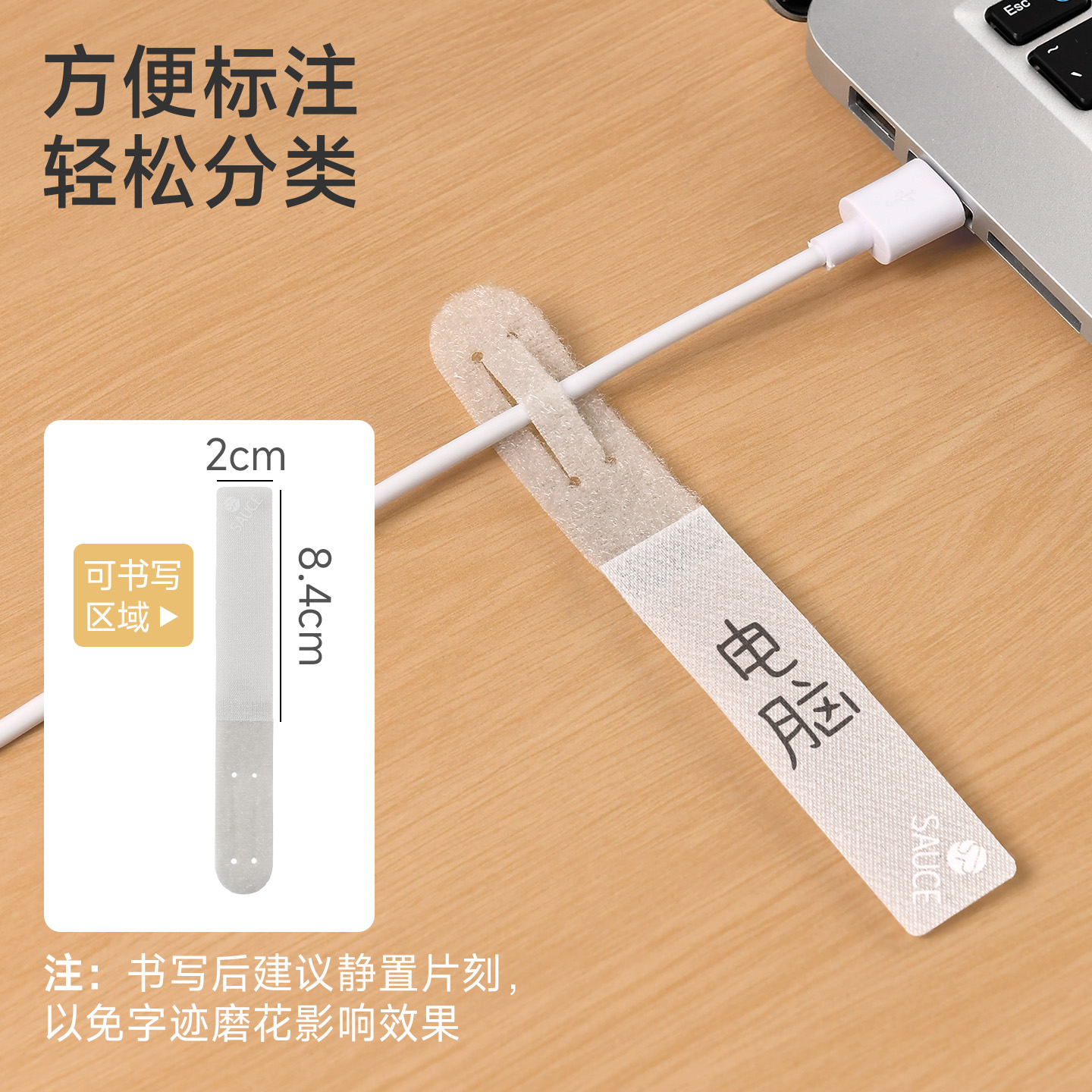 多功能书写扎带(8条入) 可写字数据线标签贴分类标识理线带网线充电线缆记号自粘魔术贴