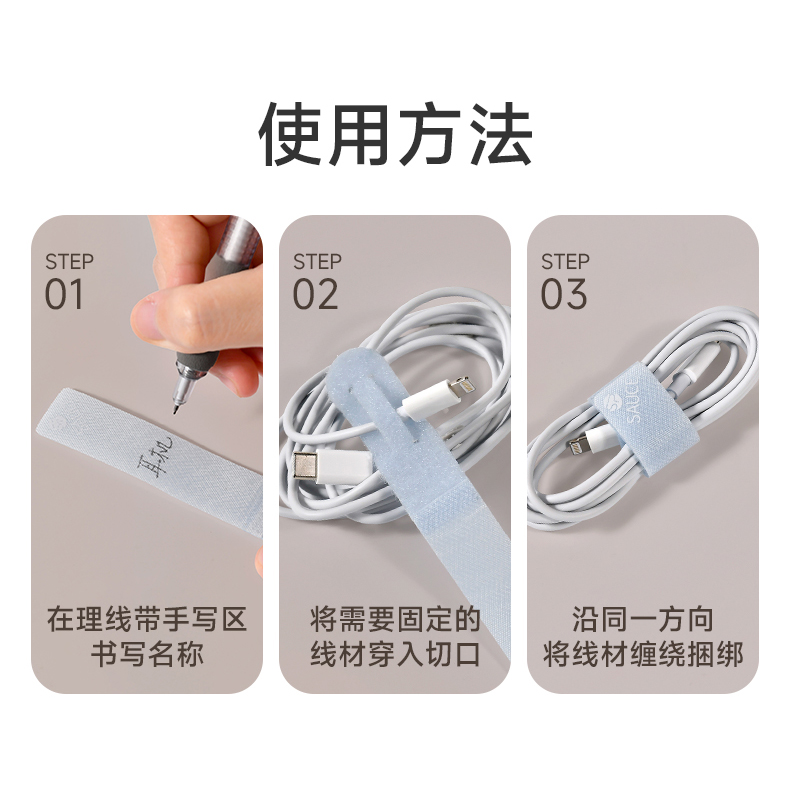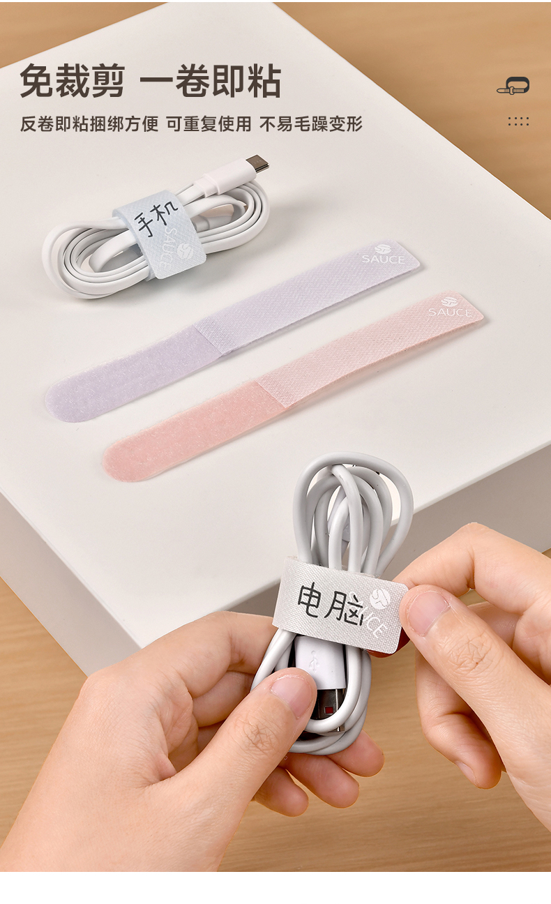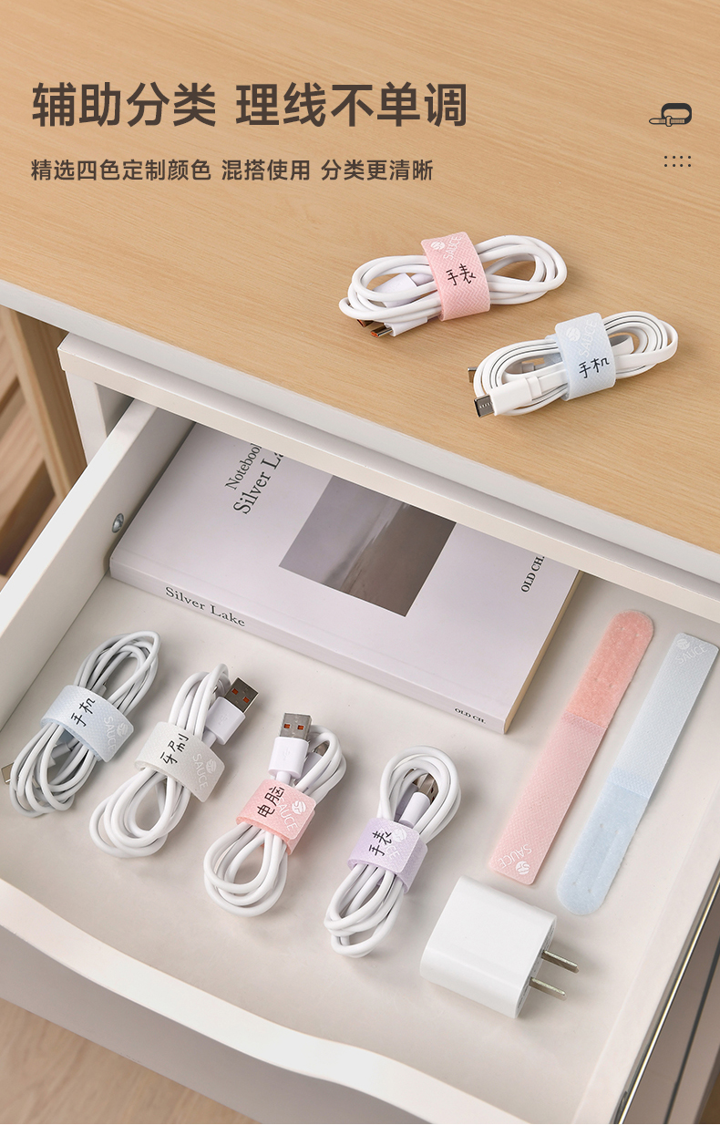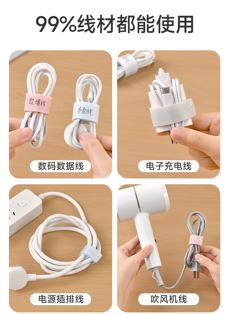 多功能书写扎带(8条入) 可写字数据线标签贴分类标识理线带网线充电线缆记号自粘魔术贴