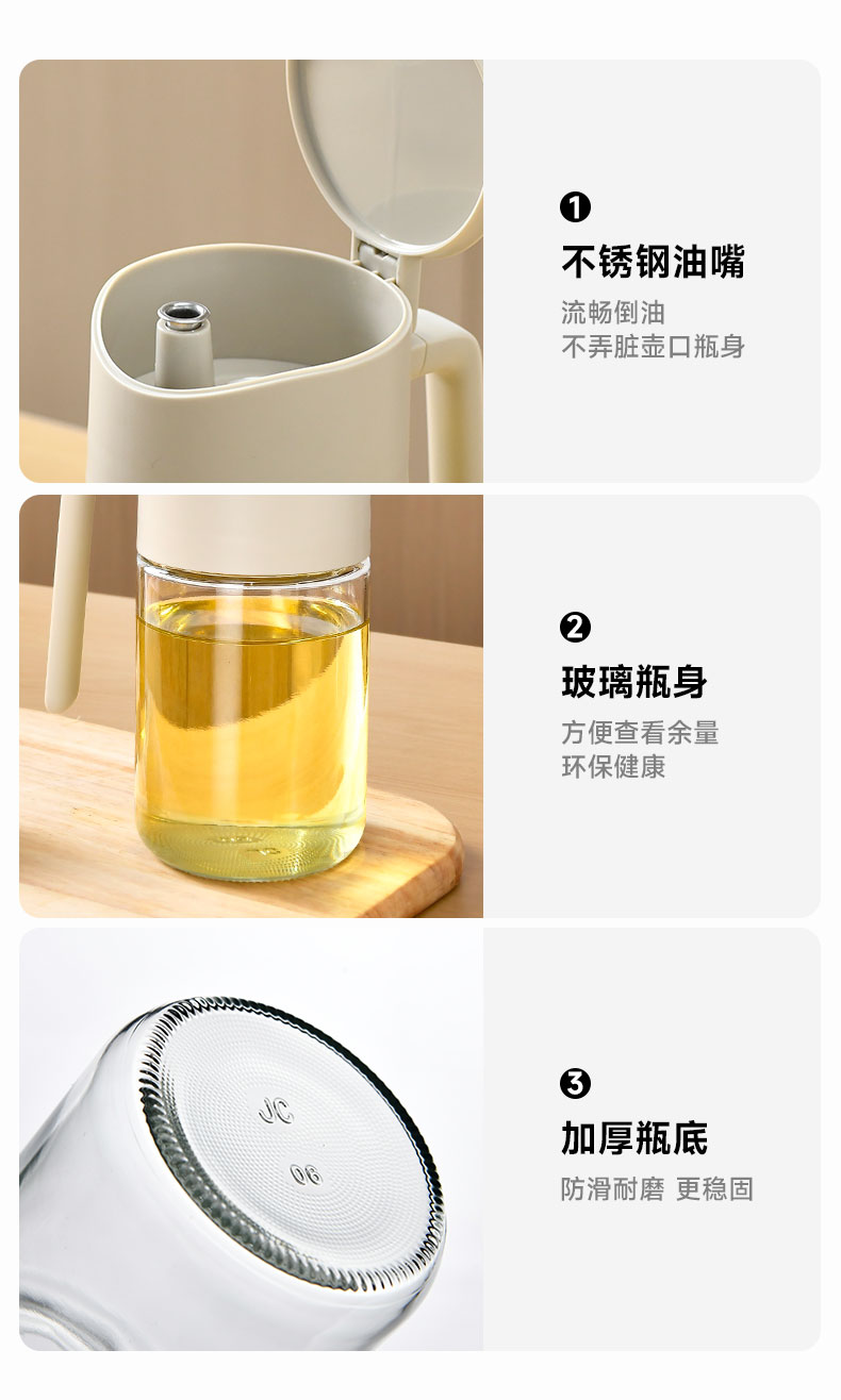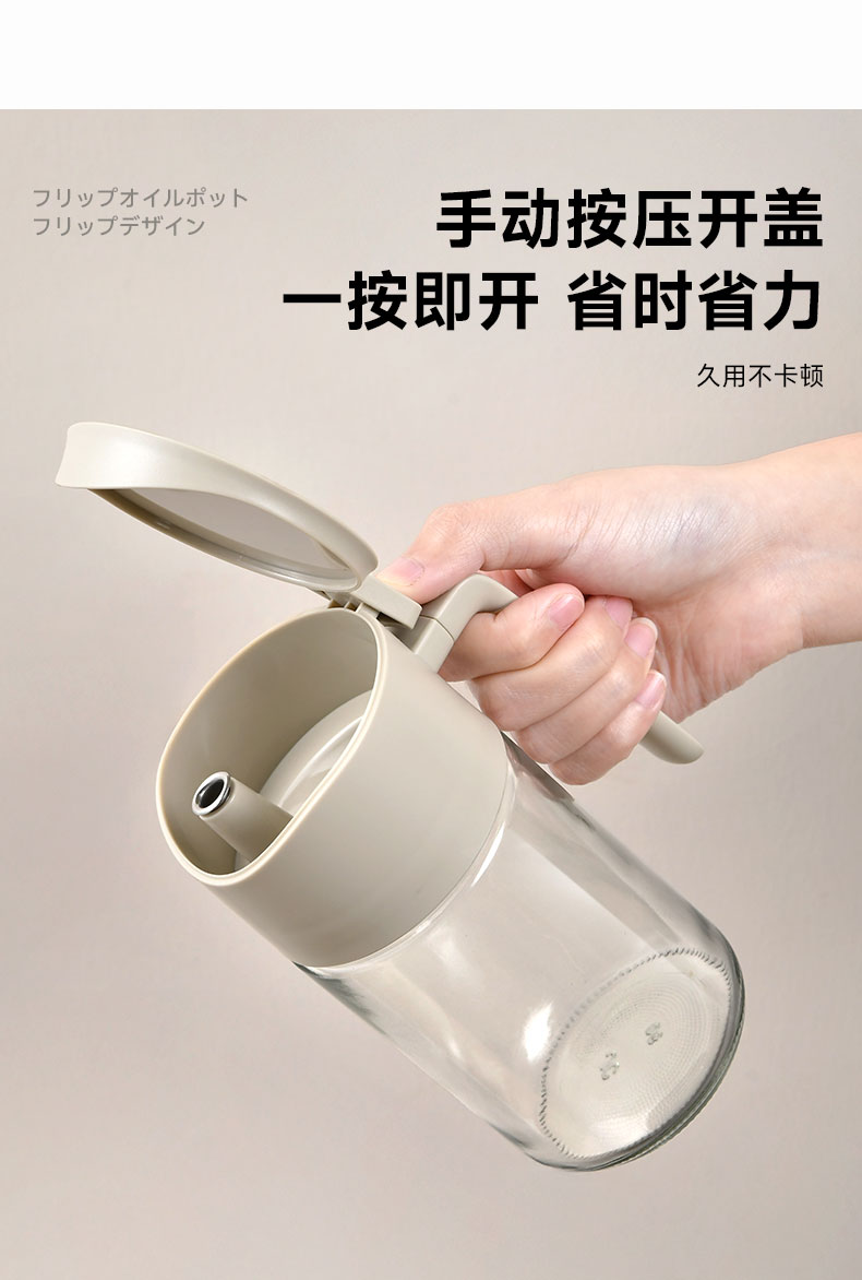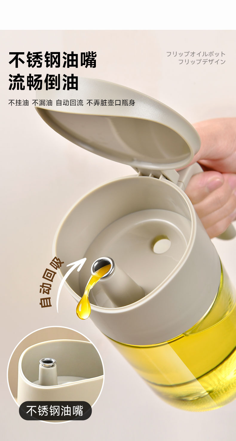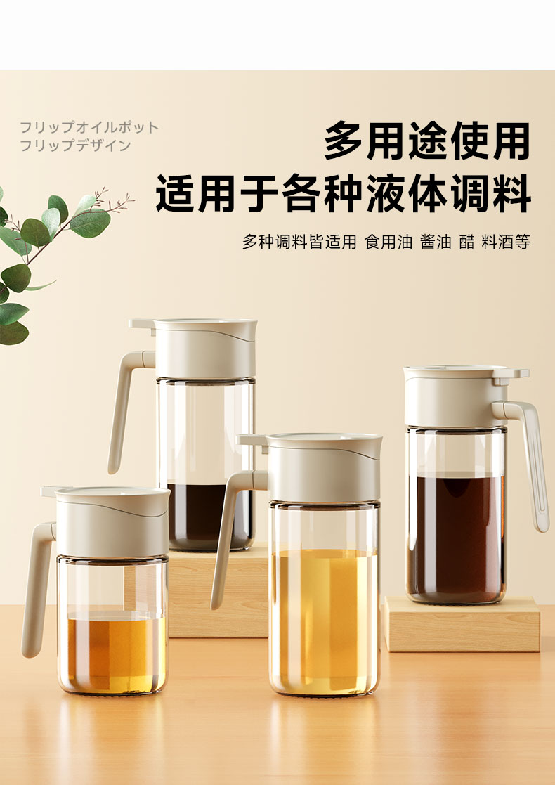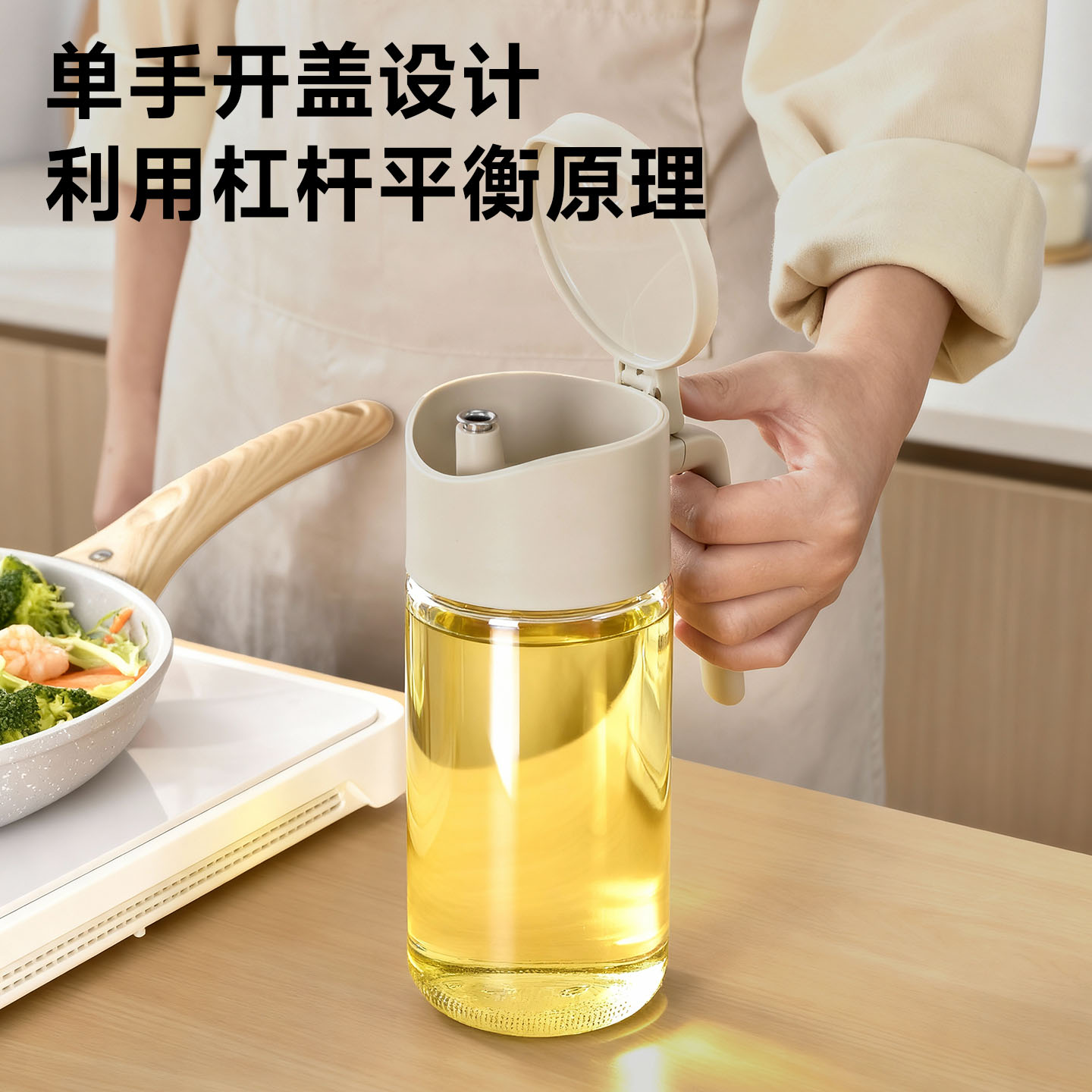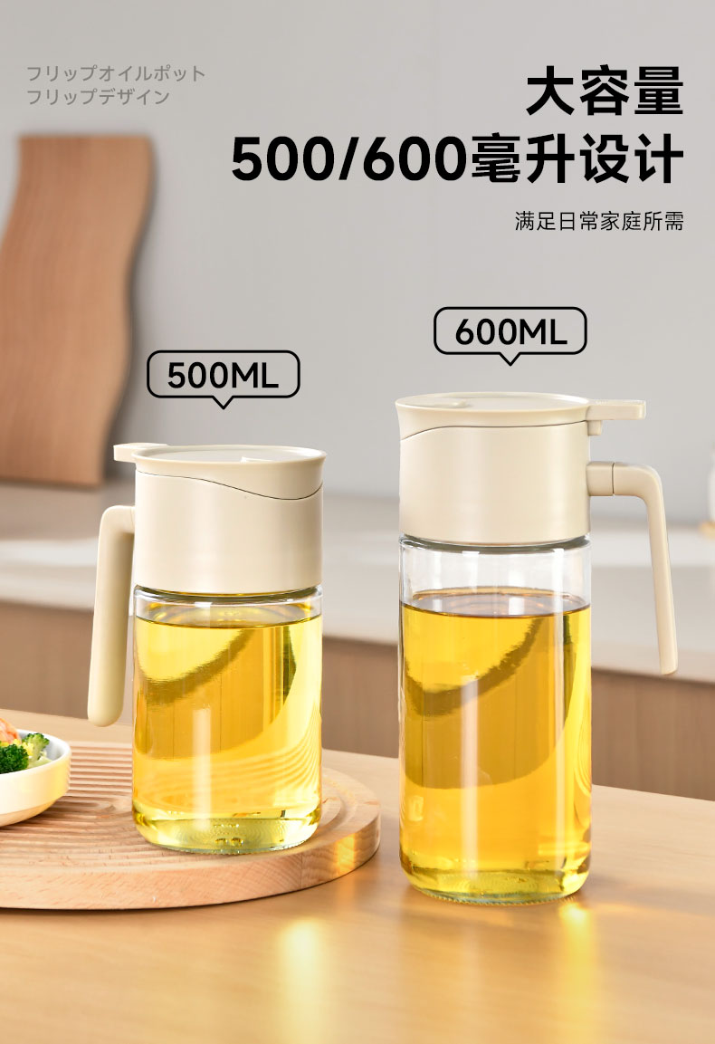 翻盖油壶 500ML 油壶厨房家用油罐新款油壶油瓶玻璃油壶不挂油家用厨房大容量油壶