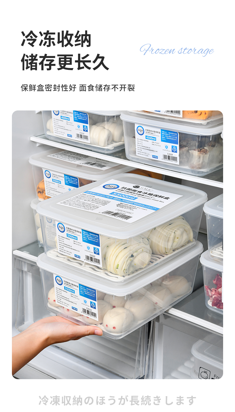 抗菌面食冰箱保鲜盒 4.5L 抗菌包子馒头冷冻专用收纳盒大容量冰箱饺子食品级密封保鲜盒