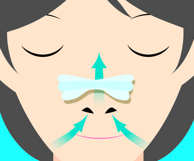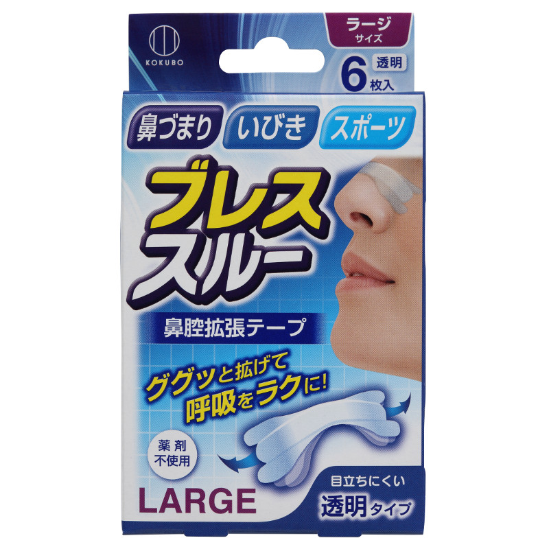 是支持睡觉期间鼻子呼吸的商品。 睡眠中的鼻子呼吸很重要,不过,鼻子堵塞变得难呼吸,不知不觉成为口呼吸堵住了喉咙。 鼻腔扩张胶带「呼吸通道」把有弹性的塑料棒附着的带子贴在鼻子上,鼻骨下附近,使鼻腔张开,使呼吸变得轻松。不使用药物,可以应对鼻塞和打鼾。还有运动时贴的话可以帮助呼吸。 |