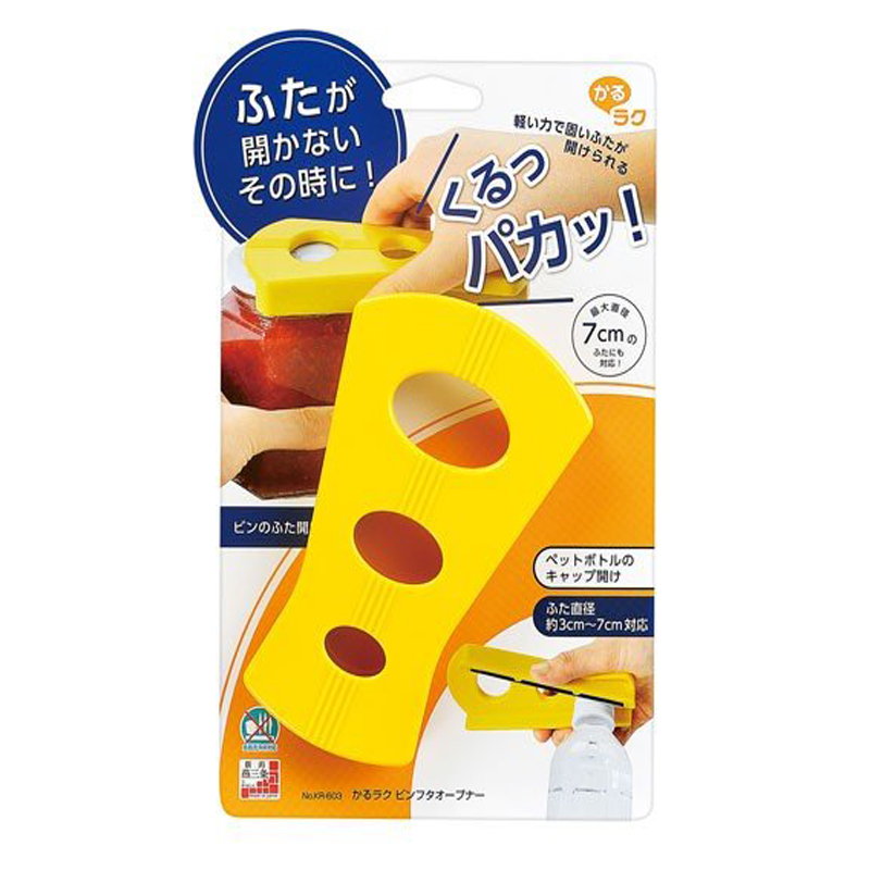 在盖子打不开的时候! 轻轻一用力就能打开难拧的盖子 支持最大直径7cm的瓶盖,也可打开塑料瓶瓶盖 从孩子到老人,解决生活“不可能”的“轻松”系列 |
