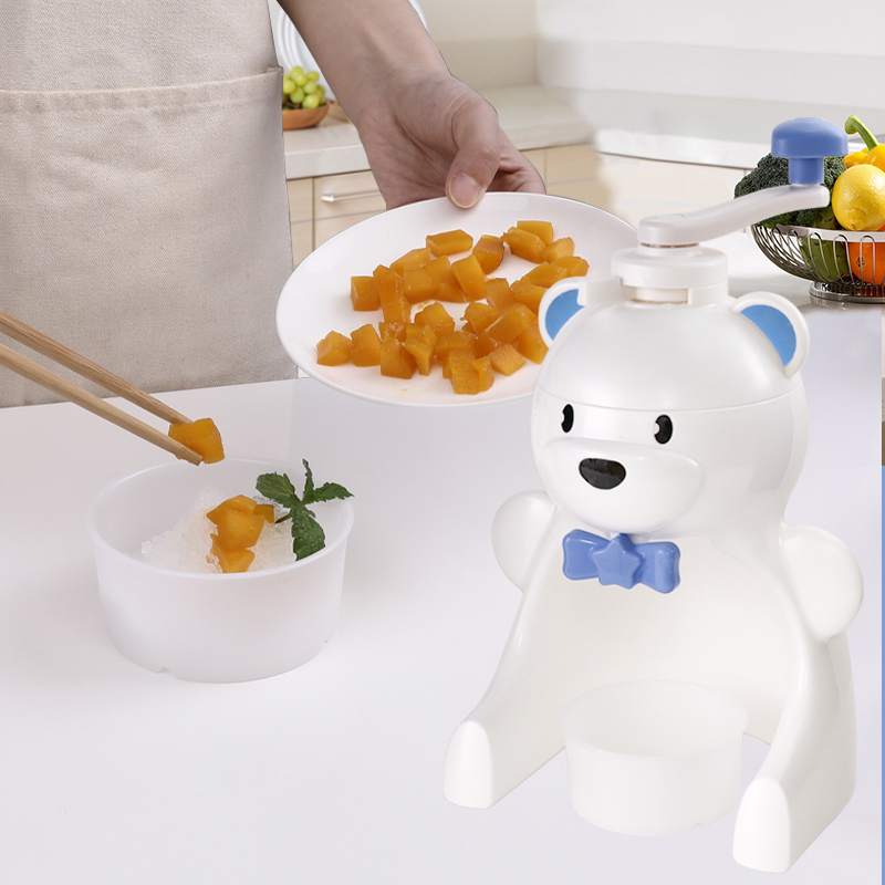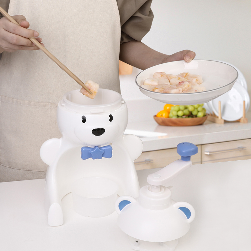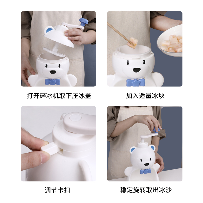 主体、杆、盖:聚苯乙烯(耐热温度70度,耐寒温度-20度) 中容器:聚乙烯(耐热温度70度,耐寒温度-20度) 冰托板、轴:聚缩醛(耐热温度100度,耐寒温度-20度) 旋钮、刀具安装容器:聚丙烯(耐热温度100度,耐寒温度-20度) 手柄、刀具安装板:ABS树脂(耐热温度70度,耐寒温度-20度) 制冰杯:聚乙烯(耐热温度70度,耐寒温度-20度) 刀片・钉:不锈钢 |