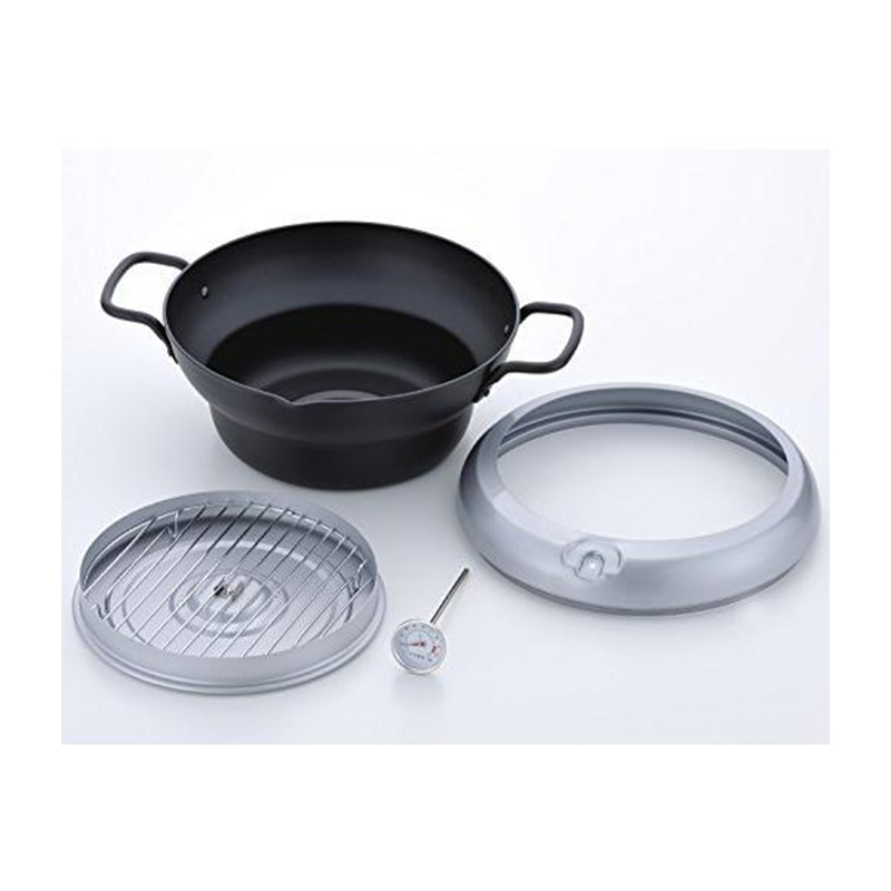 ● 盖子背面可以排油,平放的天妇罗可以巧妙地制作。 ● 零件可拆卸,易于维护。● 带有显示油温的温度计。 ● 产品内容容量 =约 3.2l(深度约 9.4cm)、兼容 100 / 200V 电磁炉 |